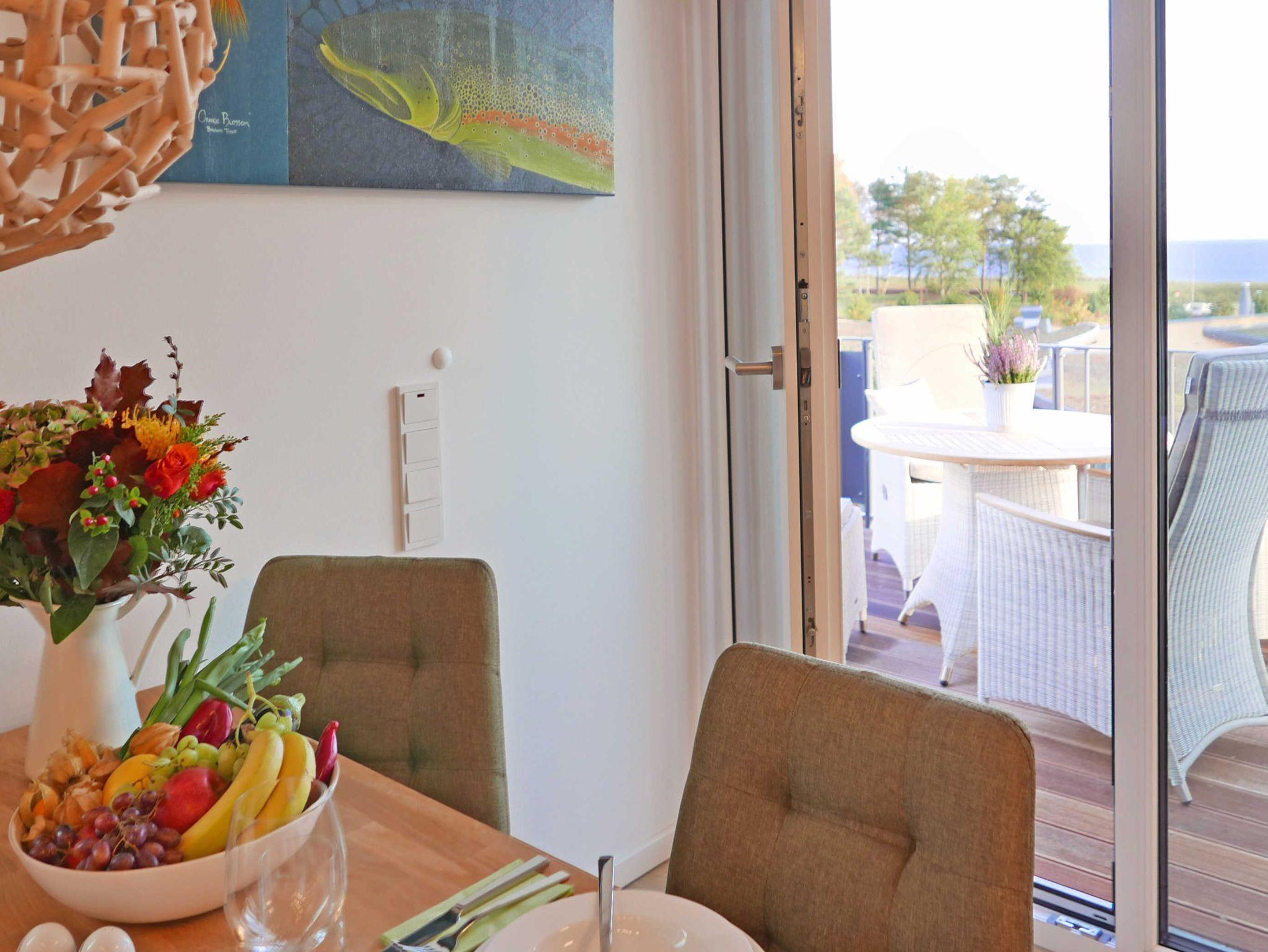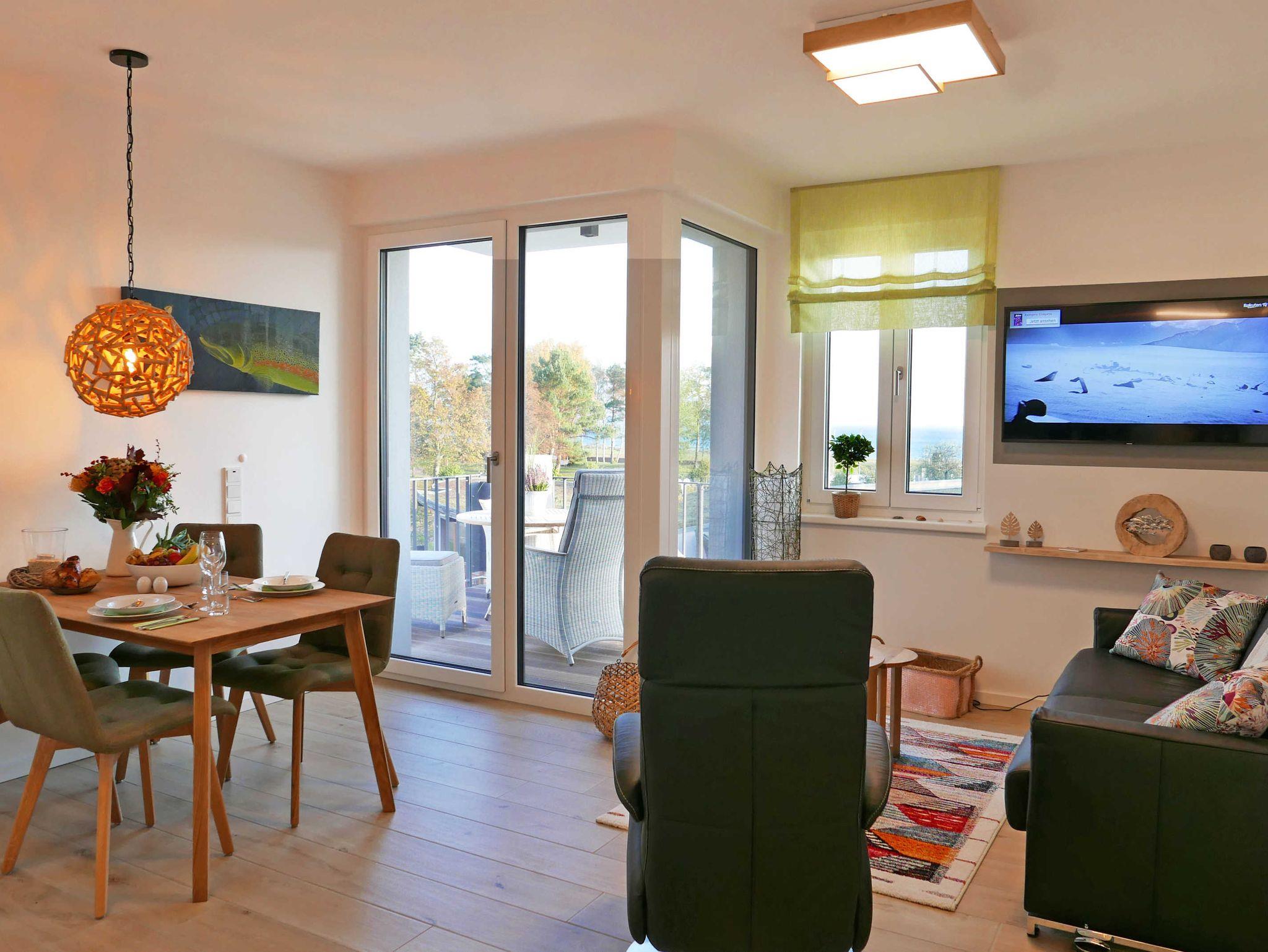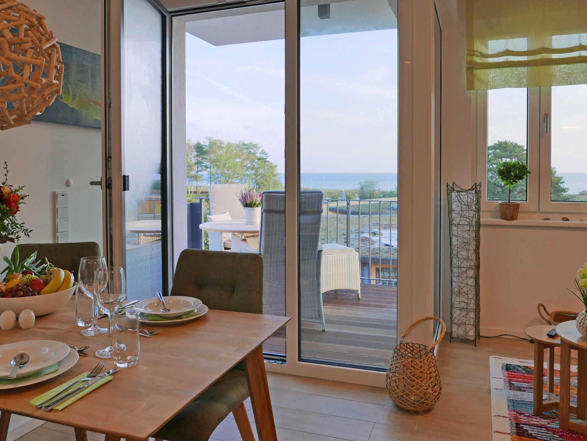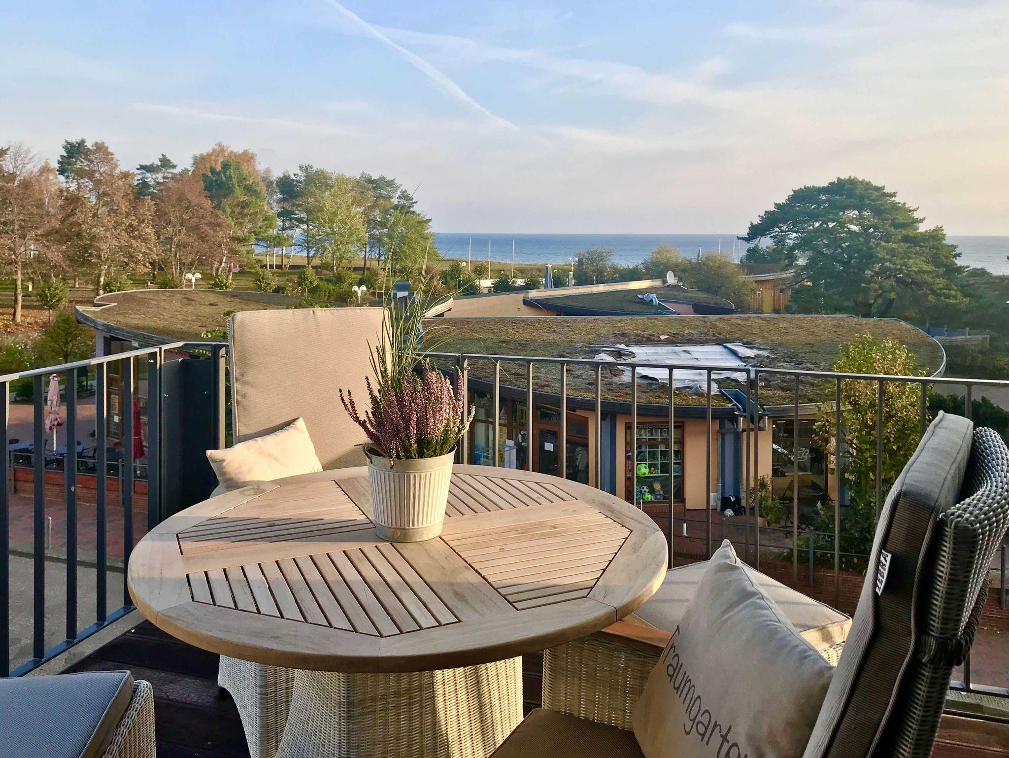 Ein Panoramameerblick begrüßt sie beim Betreten dieser exklusiv eingerichteten Ferienwohnung. Sie liegt in der 2. Etage im Haus Strandläufer im Villen-Ensemble Baabe. ein ganz besonderer Luxus ist die eigene Sauna in der Wohnung.