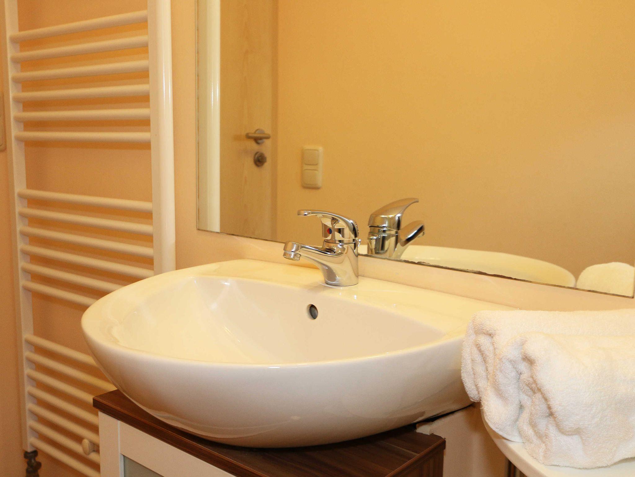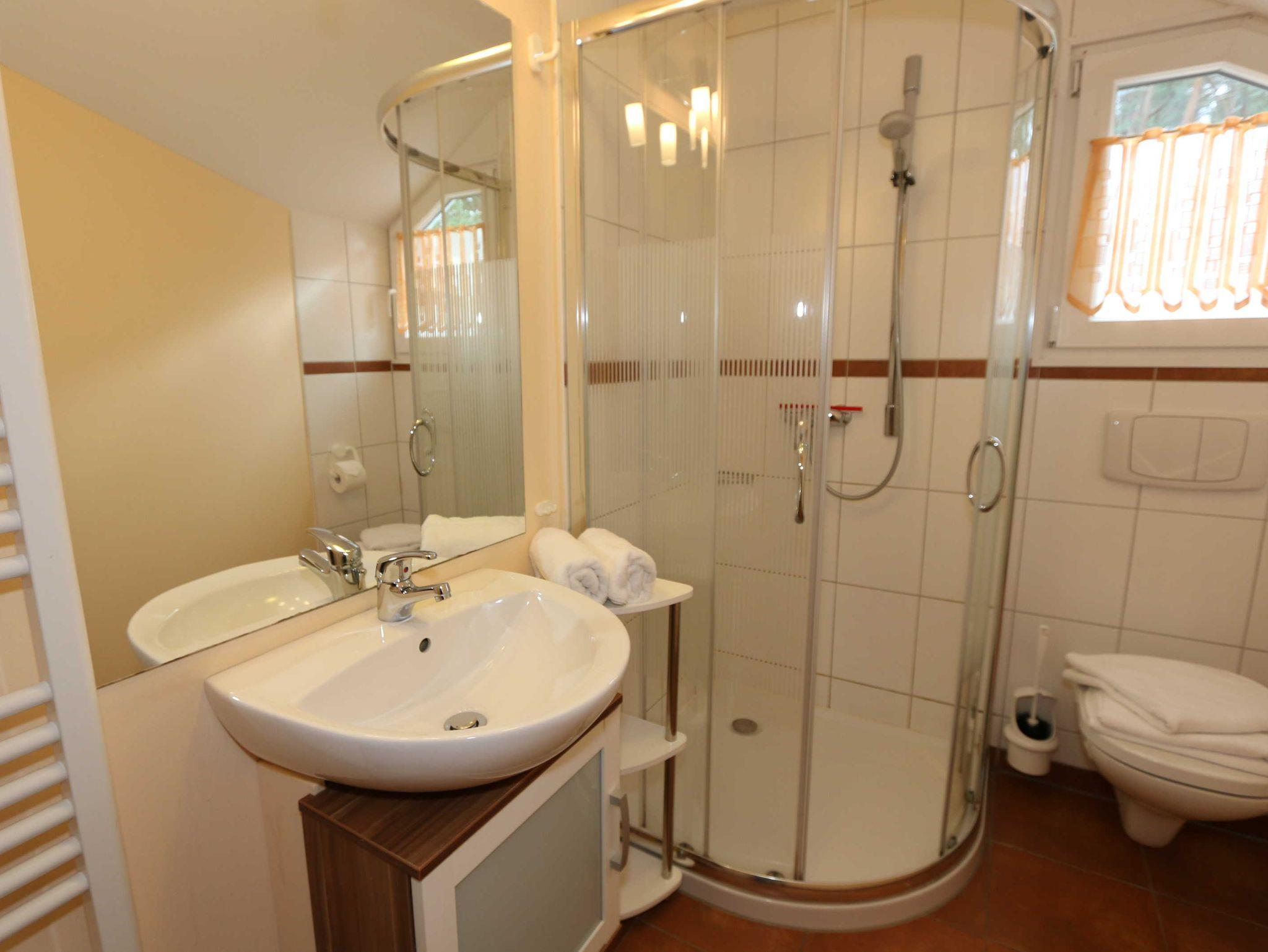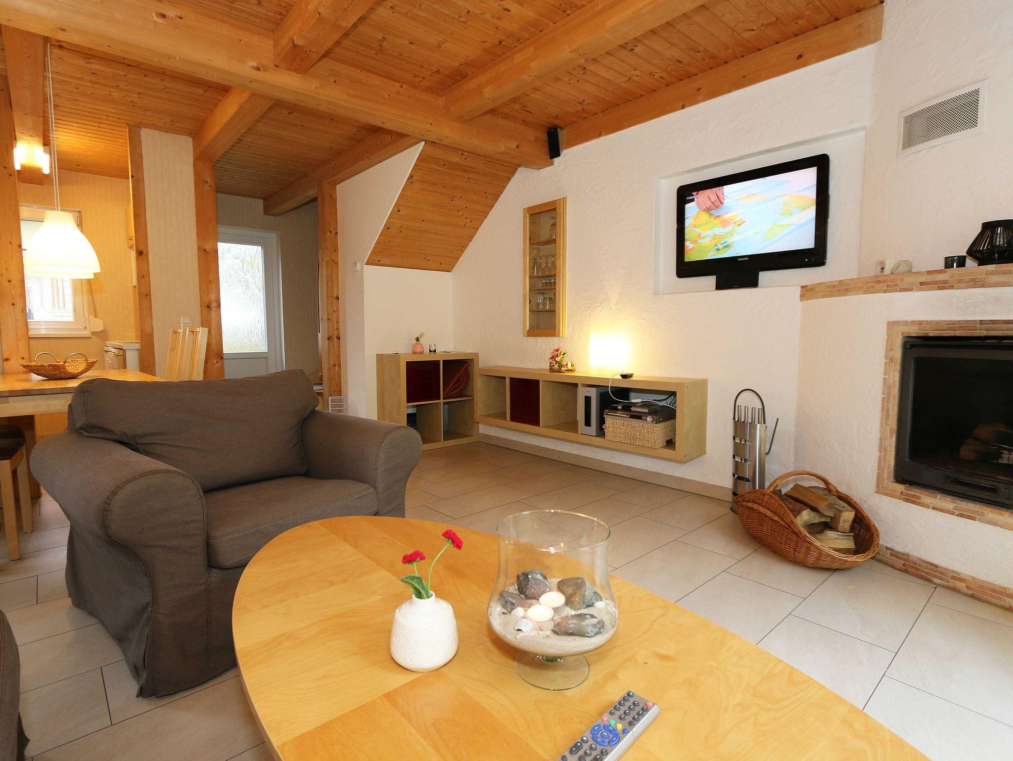 Die Doppelhaushälfte (Nichtraucher) mit Ihren 55 m² Wohnfläche bietet ausreichend Platz für 4 Erw. + 1 Kleinkind bis 3 Jahre im Kinderreisebett. Die bodentiefen Fenster im Wohn-/Essbereich lassen viel Tageslicht herein und geben Ihnen den direkten Zugang zur überdachten und bestuhlten Terrasse (Süd-Ost). Abgerundet wird diese durch einen Grill. Der gemütlich, im Schwedenstil, eingerichtete Wohnbereich ist mit einer Couchecke, Couchtisch, LCD-TV mit HD-Qualität und Satellitenempfang, DVD-Player mit Radio und ein Sideboard aus Naturholz ausgestattet. Für die kühleren Tage bieten Ihnen der Kamin (Kaminholz inklusive) sowie die Fußbodenheizung eine angenehme Wärme. Ihre Unterhaltungstechnik wird durch einen kostenfreien WLAN-Zugang abgerundet. Die angrenzende Küchenzeile mit Backofen, Ceranfeld, Dunstabzug, Kühlschrank + Eisfach, Spülmaschine, Mikrowelle, Kaffeemaschine, Toaster, Wasserkocher und kleinen Küchenhelfern lässt keine Wünsche offen. Ihre Mahlzeiten nehmen Sie am dazugehörigen Esstisch mit 4 Stühlen ein. Im Obergeschoss befinden sich beide Schlafzimmer die jeweils mit 2 Boxspringbetten (je mit 0,80 m x 2,00 m), Nachtischablagen, Safe und einem Kleiderschrank ausgestattet sind. Von beiden Schlafzimmern gelangen Sie auf den Balkon. Zusätzlich können Sie ein Kinderreisebett in eines der Schlafzimmer aufstellen. Das Tageslichtbad, was sich auf der gleichen Höhe befindet, wurde mit einer ebenerdigen Dusche, WC, Waschplatz, Handtuchtrockner und Fön ausgestattet. Für unsere kleinen Gäste steht Ihnen 1x Kinderhochstuhl und 1x Kinderreisebett (inkl. Matratze, ohne Bett Inlett) inklusive zur Verfügung. 2 kleine Haustiere sind gegen eine Gebühr gern gesehene Gäste. Eine kleine Waschküche steht Ihnen inklusive zur Verfügung. Die Erstausstattung eines Wäschepaketes (komplette Bettwäsche, 1 Duschhandtuch, 2 kleine Handtücher) können Sie bis 14 Tage vor Anreise gegen einen Aufpreis dazu buchen oder durch eigene ergänzen. Ab 2 gebuchten Paketen erhalten Sie einmalig 1 Geschirrhandtuch und 1 Duschvorleger hinzu.