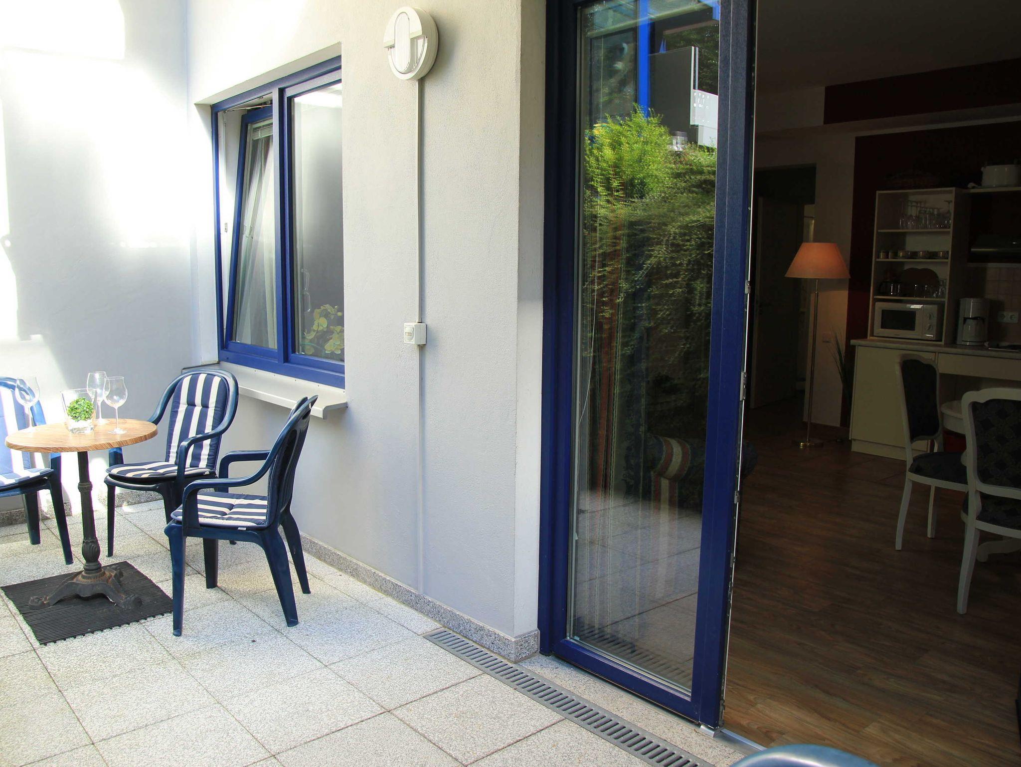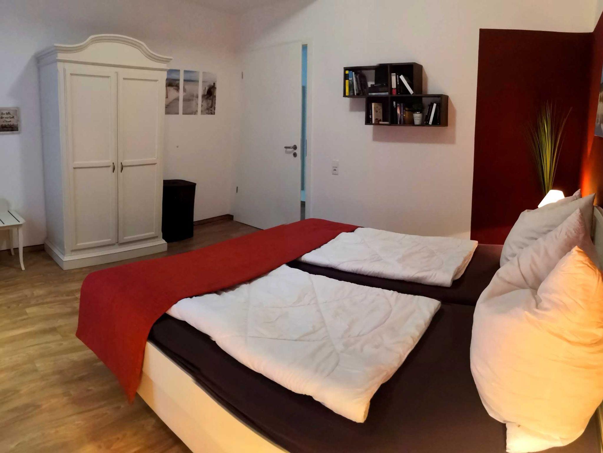 Das Appartement liegt auf der ruhigen Rückseite der Villa Wauzi und verspricht entspannte und erholsame Nächte. Es enthält kostenfreies Wlan und Flat-TV. Ein KFZ-Stellplatz im Hof ist inklusive, eine abschließbare Unterstellmöglichkeit für Fahrräder im Haus vorhanden. Das Appartement verfügt über eine Gegensprechanlage. Ihre Wertsachen verschließen Sie sicher im Zimmersafe.
