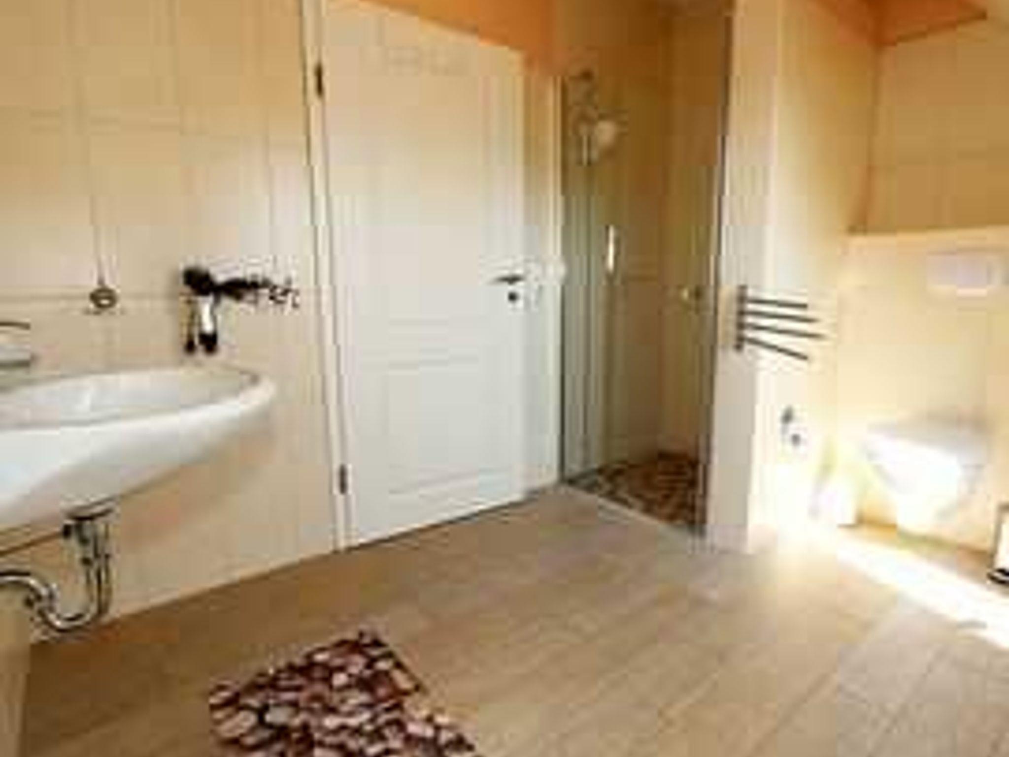 Die bodenebene und barrierefreie Dusche und der Fön bilden den Charakter des Bades. Die Erstausstattung eines Wäschepaketes (komplette Bettwäsche, 1 Duschhandtuch, 2 kleine Handtücher, einmalig eine Geschirrhandtuch und ein Duschvorleger) können Sie gegen eine Gebühr dazu buchen.