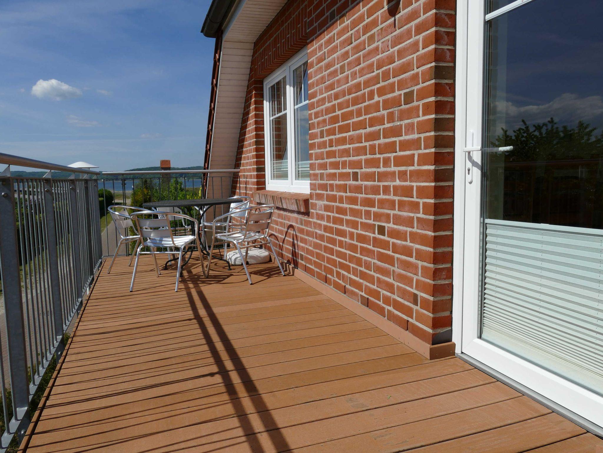 Die ca. 70 qm große Nichtraucherwohnung erstreckt sich über den gesamten oberen Bereich des Hauses und ist über den Balkon (ca. 6,00 m x 2,00 m) durch die Außentreppe zu erreichen. Bereits auf dem Balkon eröffnet sich Ihnen ein traumhaft unverbauter Blick auf den Selliner See (ca. 100 m entfernt), das Bollwerk (Hafen) von Baabe sowie auf die Landzunge von Alt Reddevitz zeigen elegant ihre Vielfalt.