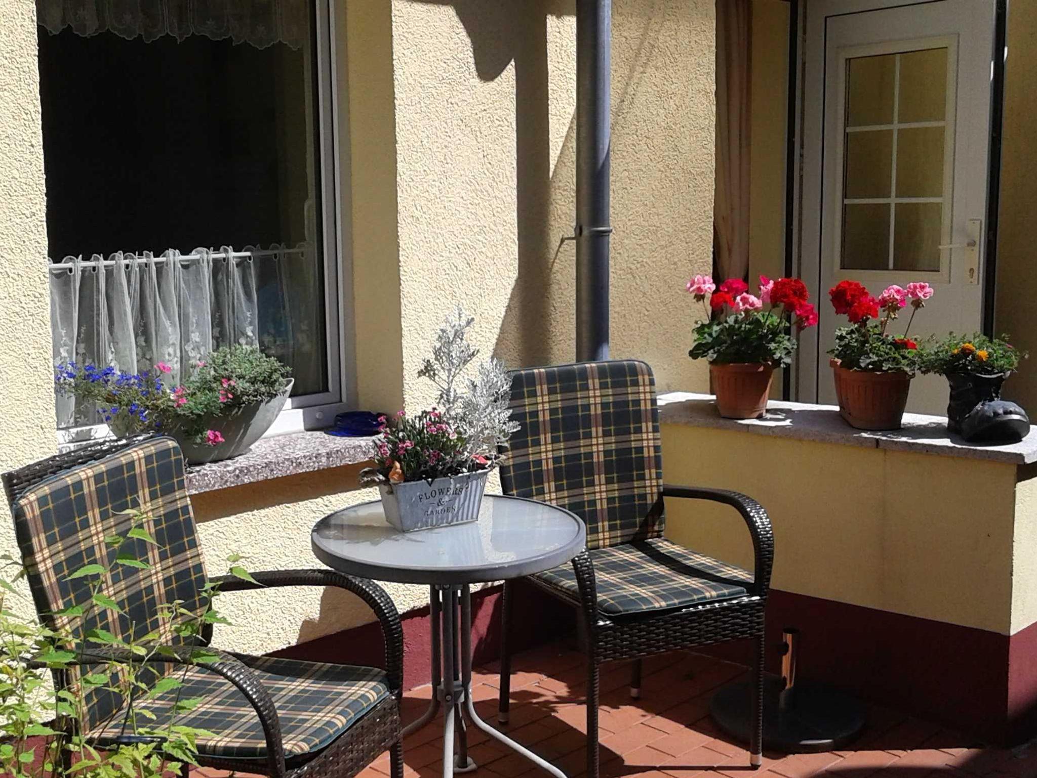 kleine Terrasse mit Sitzecke direkt vor`m Appartement
