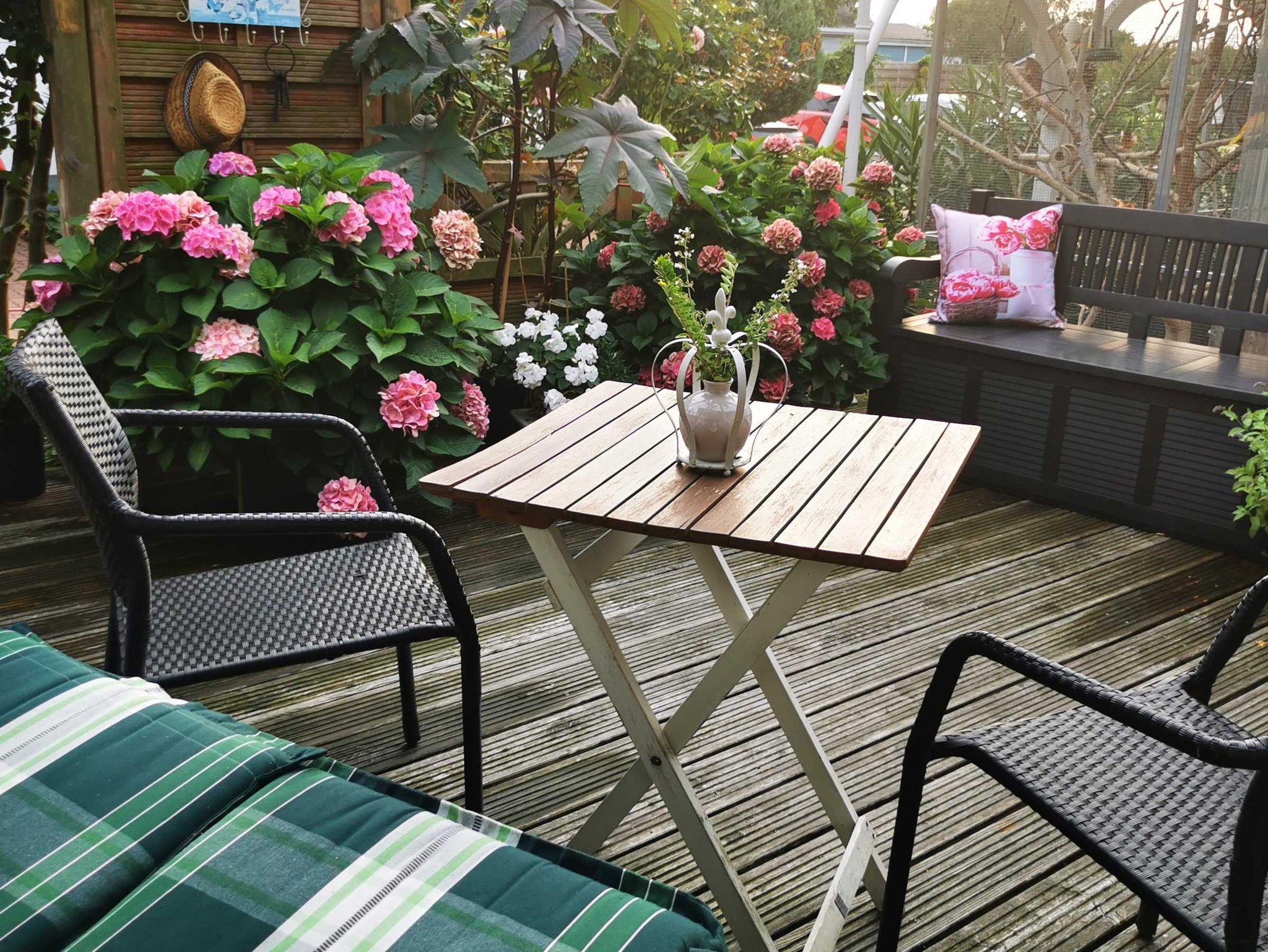 Zu jeder Ferienwohnung gehört eine Terrasse mit Gartenmöbeln. Hier können Sie auch gern am Morgen Frühstücken. Bei Ihrer Anreise liegen frische Handtücher bereit und sind die Betten bereits für Sie mit Bettwäsche bezogen. Weitere Angaben finden Sie bei der Detailbeschreibung der Ferienwohnungen. Jede Ferienwohnung hat einen eigenen Parkplatz auf dem eingezäunten Grundstück. Bis zur Bus-Haltestelle des öffentlichen Nahverkehrs sind es ca. 200 Meter. Bis zum Bäcker sind es nur 2 Min. und in ca. 60 m Entfernung hält die Bäderbahn, die auch zum Strand fährt.