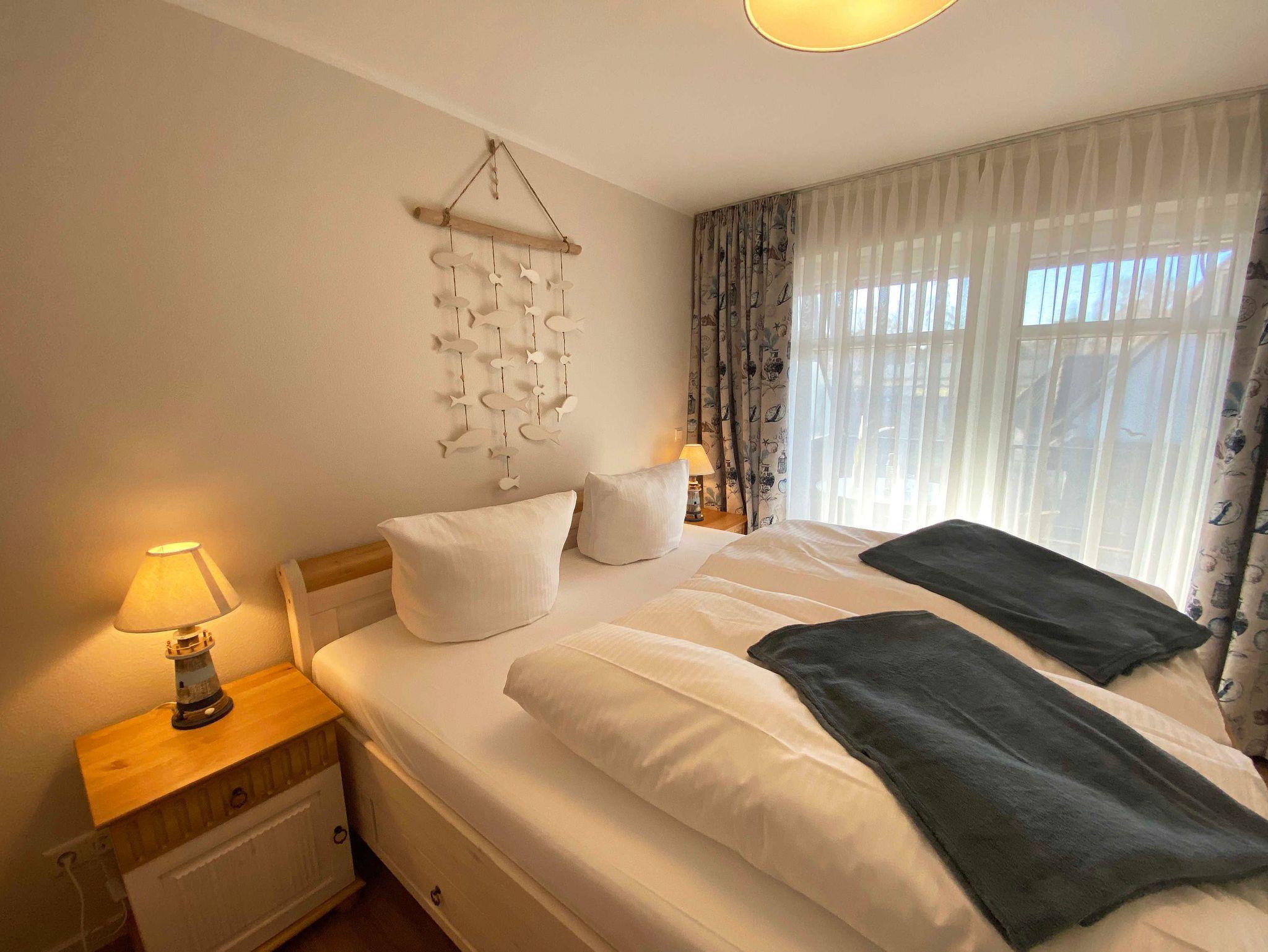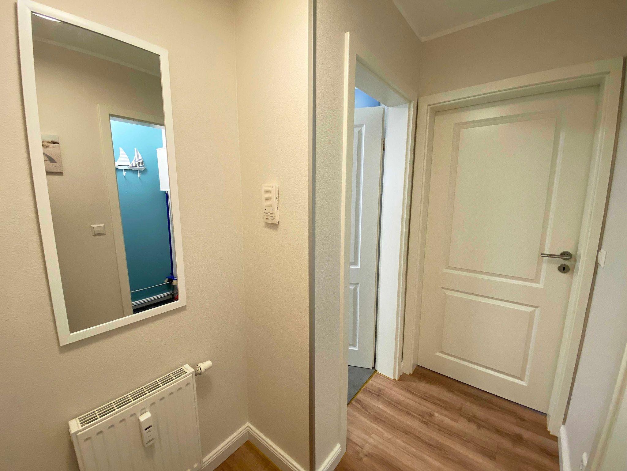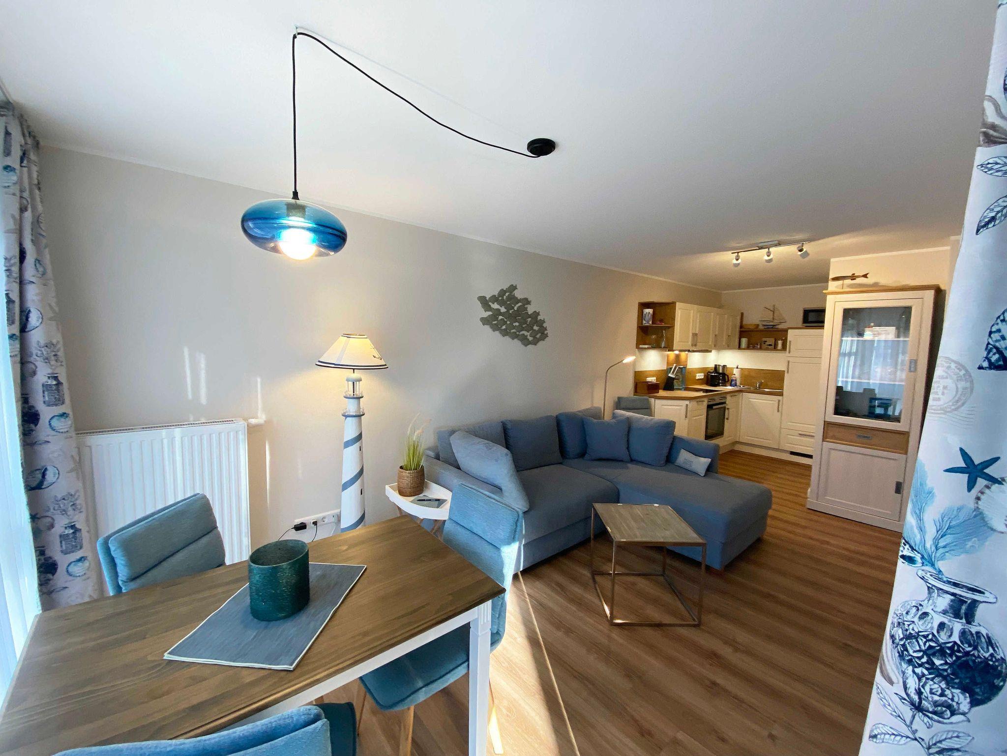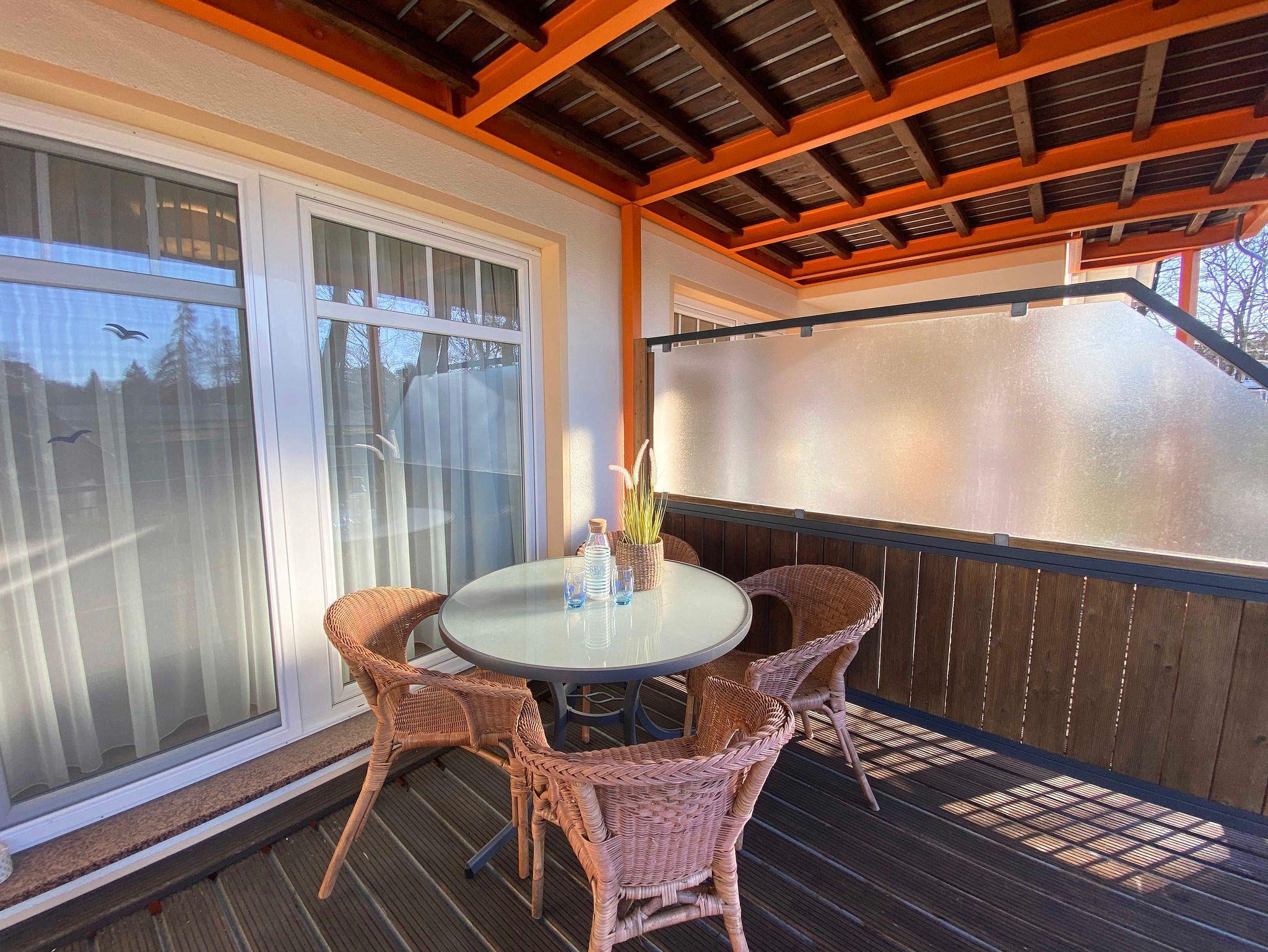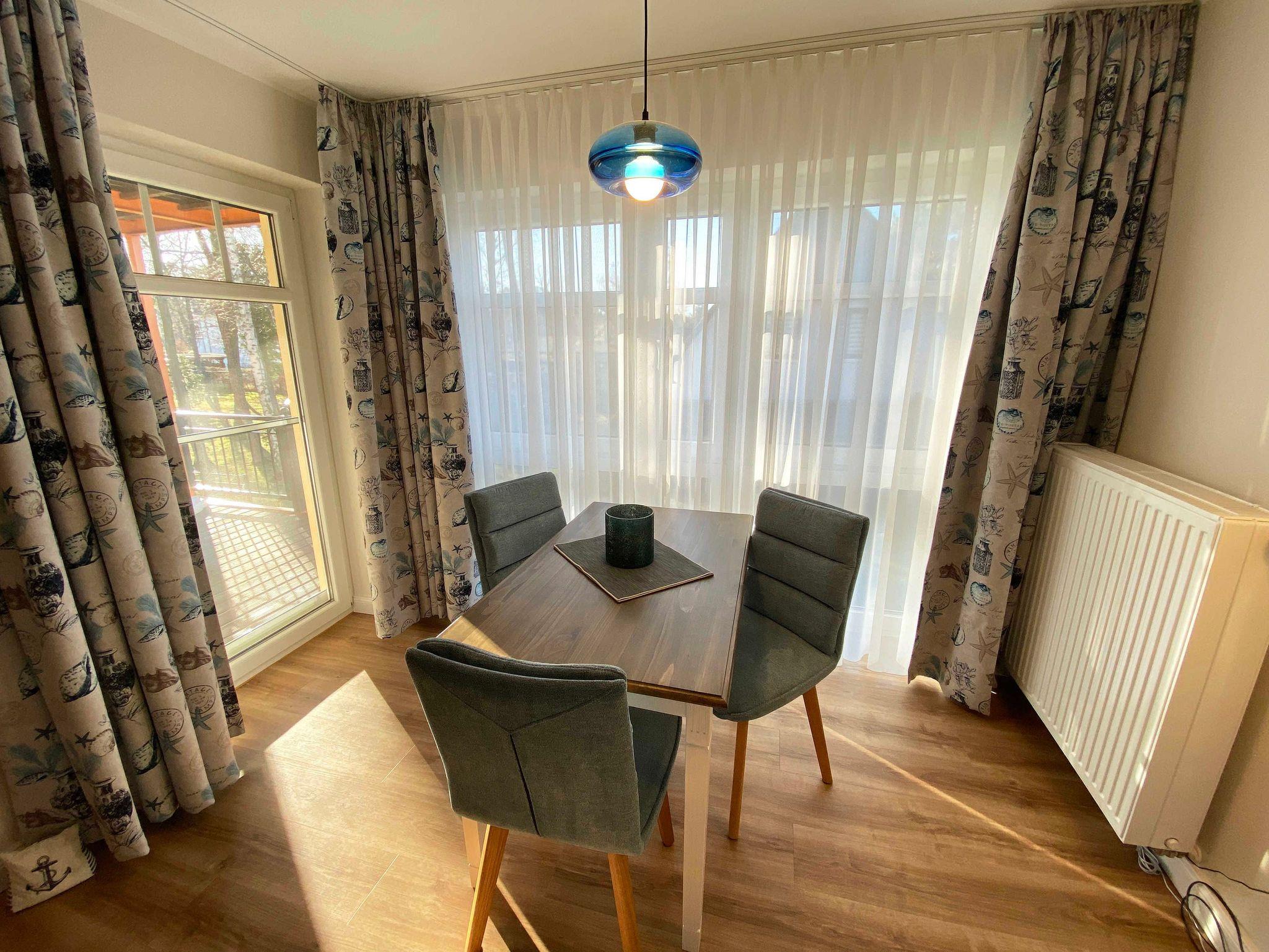 Die ca. 45 qm große Nichtraucherwohnung befindet sich im 1. Obergeschoss im Haus Bella Casa im Herzen von Baabe. Die Ferienwohnung bietet Ihnen Platz für max. 3 Erwachsene. Wenn sie die Wohnung betreten, begrüßt Sie ein kleiner Flur mit separater Garderobe. Der Wohn- Essbereich mit offener Küchenzeile ist mit einer gemütlichen Couch, welche sich mit wenigen Handgriffen in ein Bett verwandelt werden kann (Liegefläche 1,60m x 2,00m), mit einem Couchtisch, einer Leselampe, einem Lowboard mit Smart-TV und einem DAB-Radio mit USB-Anschluss und Bluetooth Anschluss ausgestattet. Eine kleine Sammlung an Büchern, Gesellschaftsspielen und ein Internetzugang (WLAN) runden den Bereich ab. Im angrenzenden Essbereich vor einem bodentiefen Fenster befindet sich ein Esstisch. Die offene Eck-Küchenzeile ist mit einem Kühlschrank mit Gefrierfach, einem Geschirrspüler, einem 4 Zonen Ceranfeld mit Backofen, einer Mikrowelle, einer Kaffeemaschine und zusätzlich einer Nespresso Kapsel-Maschine, einem Toaster, einem Wasserkocher sowie mit diversen Küchenutensilien ausgestattet und bietet Ihnen alles, was Sie zum Kochen benötigen. Vom Wohnbereich gelangen Sie direkt auf den bestuhlten (Süd/West) Balkon mit Sonnenschirm, wo Sie einen wunderbaren Ostseetag gemütlich ausklingen lassen können. Vom Wohnzimmer gelangen sie ins Schlafzimmer. Dieses hat auch einen direkten Zugang zum Balkon und ist mit bodentiefen Fenstern versehen. Hier finden Sie ein Doppelbett (1,80m x 2,00m), Nachttischablagen mit Lampen und einen Kleiderschrank. Für einen ruhigen Schlaf sorgen in der gesamten Wohnung Verdunklungsvorhänge und Insektenschutzgitter. Das moderne und neu renovierte Bad verfügt über eine offene Glasdusche mit niedrigem Einstieg, einen Waschplatz, ein WC, einem Kosmetikspiegel, einem Fön sowie einem Handtuchtrockner und Fußbodenheizung. Haustiere sind nicht erlaubt. Reinigungsutensilien wie einen Staubsauger, Wisch Set, Kehr Set, Wäscheständer sowie ein Bügeleisen und Bügelbrett ist vorhanden. Ein PKW-Stellplatz (Nr.07) befindet sich hinter dem Haus. Für Ihre mitgebrachten Fahrräder befindet sich im Garten eine Unterstellmöglichkeit. Die Erstausstattung eines Wäschepaketes (komplette Bettwäsche, 1 Duschhandtuch, 2 kleine Handtücher) können Sie bis 14 Tage vor der Anreise gegen einen Aufpreis dazu buchen oder durch eigene ergänzen. Ab 2 gebuchten Paketen erhalten Sie einmalig 1 Geschirrtuch und einen Duschvorleger dazu.
