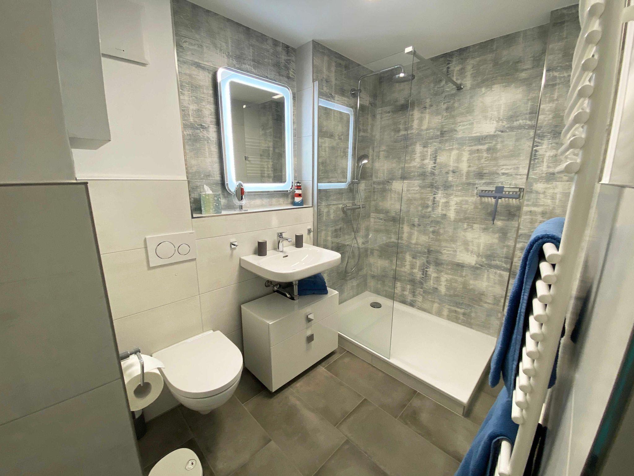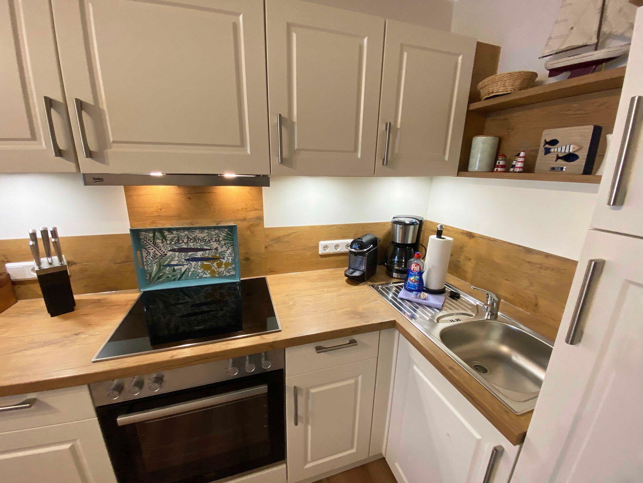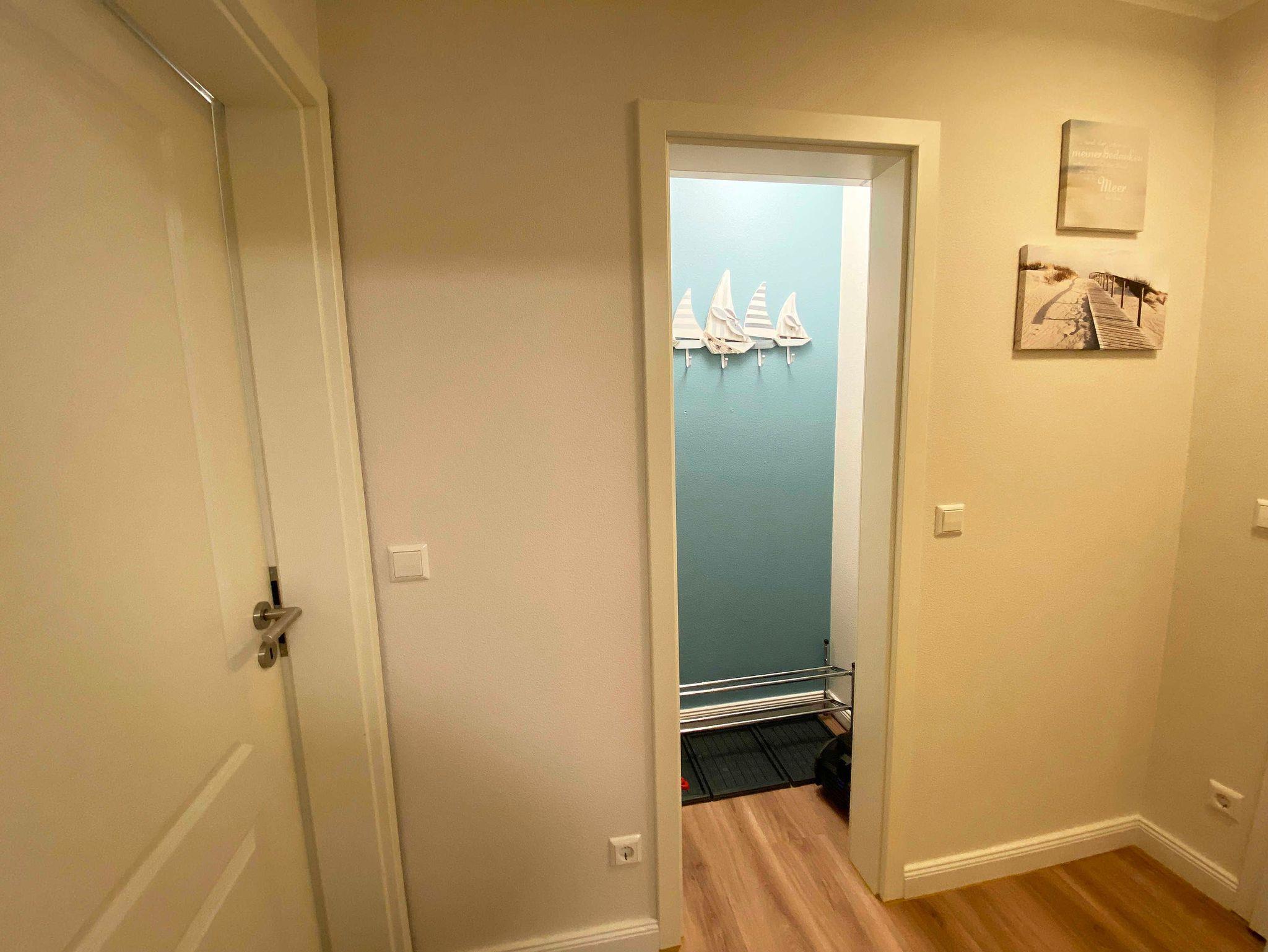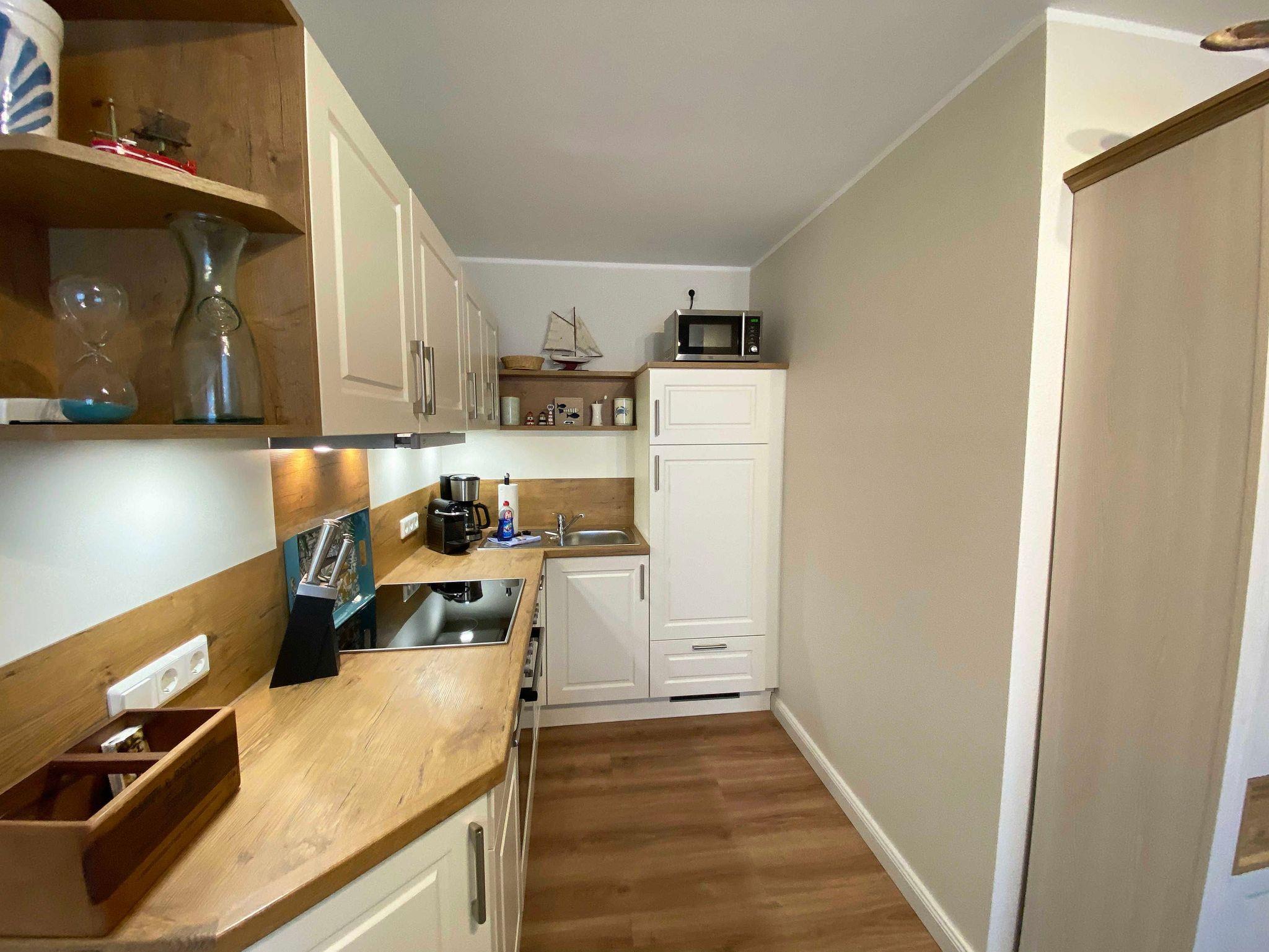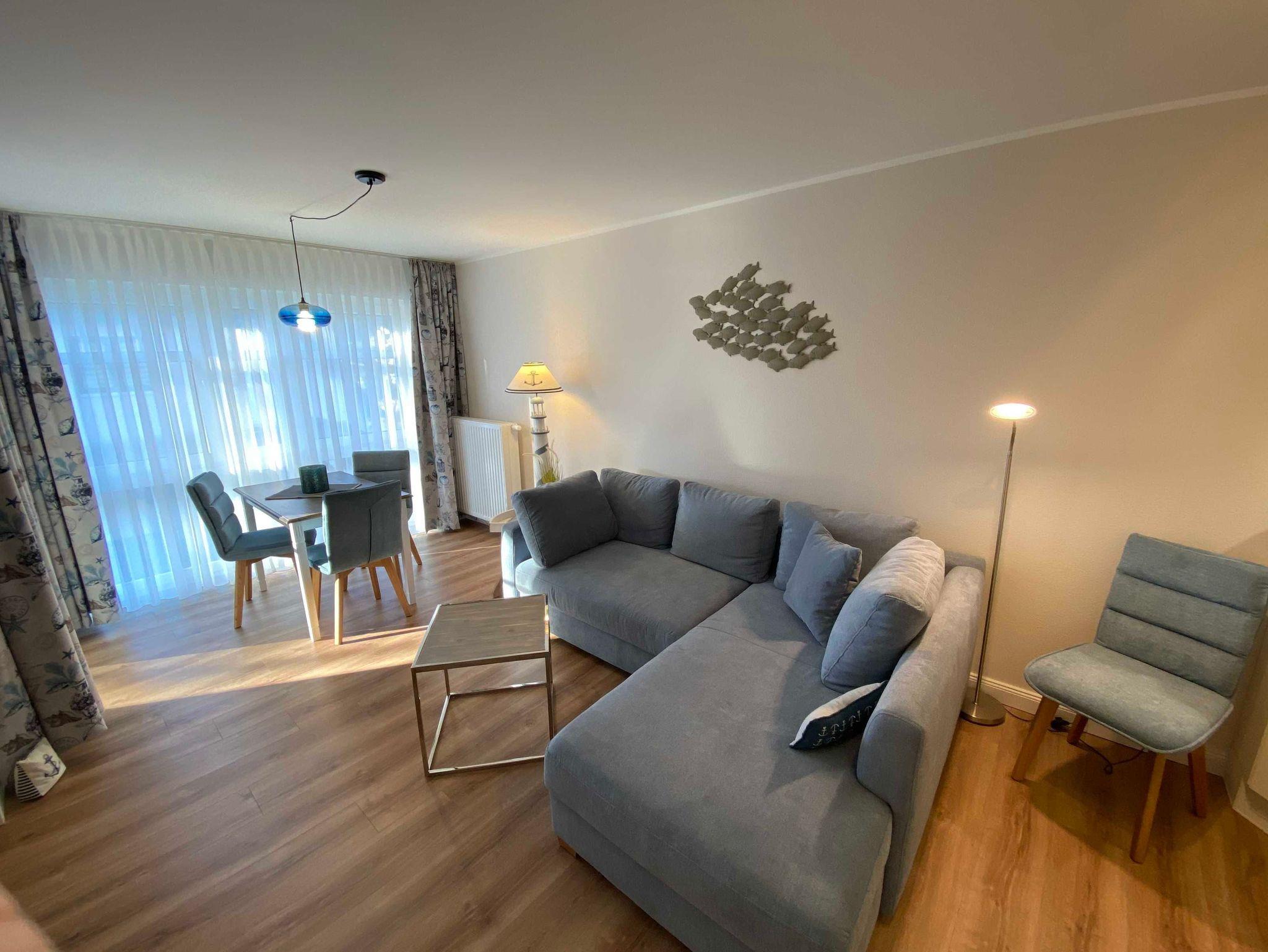 Die ca. 45 qm große Nichtraucherwohnung befindet sich im 1. Obergeschoss im Haus Bella Casa im Herzen von Baabe. Die Ferienwohnung bietet Ihnen Platz für max. 3 Erwachsene. Wenn sie die Wohnung betreten, begrüßt Sie ein kleiner Flur mit separater Garderobe. Der Wohn- Essbereich mit offener Küchenzeile ist mit einer gemütlichen Couch, welche sich mit wenigen Handgriffen in ein Bett verwandelt werden kann (Liegefläche 1,60m x 2,00m), mit einem Couchtisch, einer Leselampe, einem Lowboard mit Smart-TV und einem DAB-Radio mit USB-Anschluss und Bluetooth Anschluss ausgestattet. Eine kleine Sammlung an Büchern, Gesellschaftsspielen und ein Internetzugang (WLAN) runden den Bereich ab. Im angrenzenden Essbereich vor einem bodentiefen Fenster befindet sich ein Esstisch. Die offene Eck-Küchenzeile ist mit einem Kühlschrank mit Gefrierfach, einem Geschirrspüler, einem 4 Zonen Ceranfeld mit Backofen, einer Mikrowelle, einer Kaffeemaschine und zusätzlich einer Nespresso Kapsel-Maschine, einem Toaster, einem Wasserkocher sowie mit diversen Küchenutensilien ausgestattet und bietet Ihnen alles, was Sie zum Kochen benötigen. Vom Wohnbereich gelangen Sie direkt auf den bestuhlten (Süd/West) Balkon mit Sonnenschirm, wo Sie einen wunderbaren Ostseetag gemütlich ausklingen lassen können. Vom Wohnzimmer gelangen sie ins Schlafzimmer. Dieses hat auch einen direkten Zugang zum Balkon und ist mit bodentiefen Fenstern versehen. Hier finden Sie ein Doppelbett (1,80m x 2,00m), Nachttischablagen mit Lampen und einen Kleiderschrank. Für einen ruhigen Schlaf sorgen in der gesamten Wohnung Verdunklungsvorhänge und Insektenschutzgitter. Das moderne und neu renovierte Bad verfügt über eine offene Glasdusche mit niedrigem Einstieg, einen Waschplatz, ein WC, einem Kosmetikspiegel, einem Fön sowie einem Handtuchtrockner und Fußbodenheizung. Haustiere sind nicht erlaubt. Reinigungsutensilien wie einen Staubsauger, Wisch Set, Kehr Set, Wäscheständer sowie ein Bügeleisen und Bügelbrett ist vorhanden. Ein PKW-Stellplatz (Nr.07) befindet sich hinter dem Haus. Für Ihre mitgebrachten Fahrräder befindet sich im Garten eine Unterstellmöglichkeit. Die Erstausstattung eines Wäschepaketes (komplette Bettwäsche, 1 Duschhandtuch, 2 kleine Handtücher) können Sie bis 14 Tage vor der Anreise gegen einen Aufpreis dazu buchen oder durch eigene ergänzen. Ab 2 gebuchten Paketen erhalten Sie einmalig 1 Geschirrtuch und einen Duschvorleger dazu.