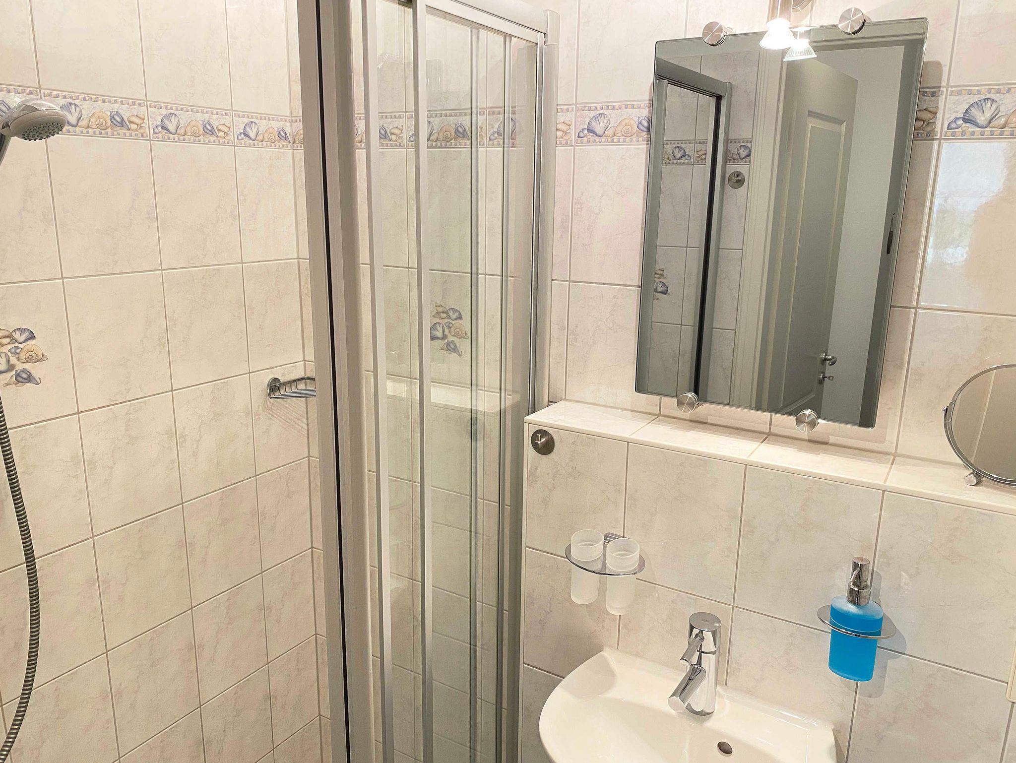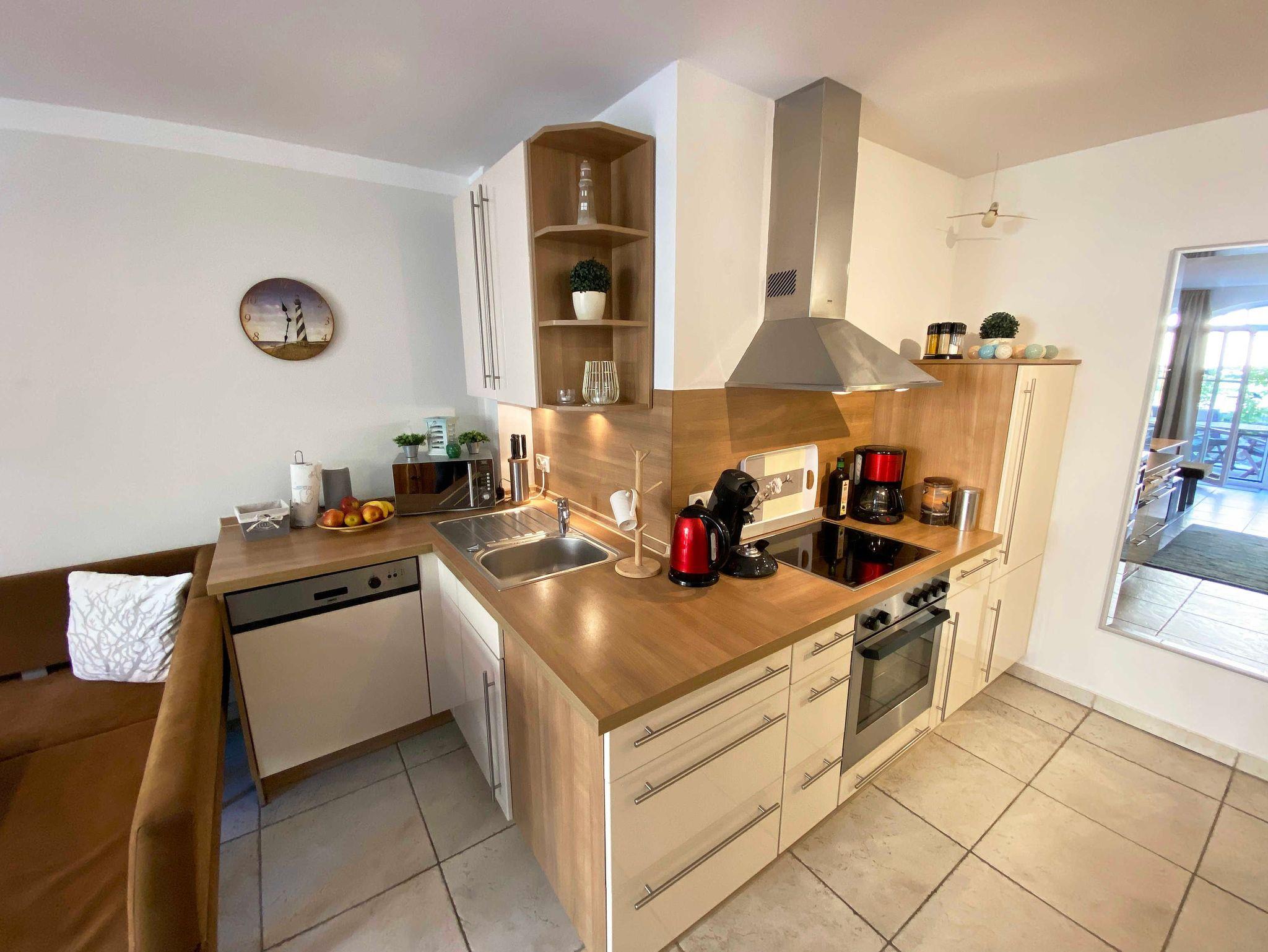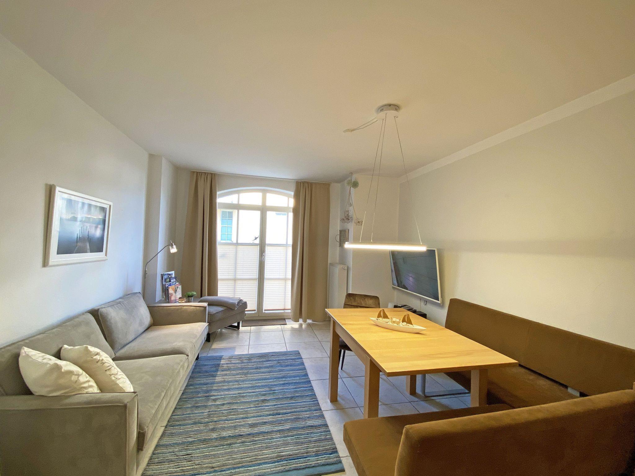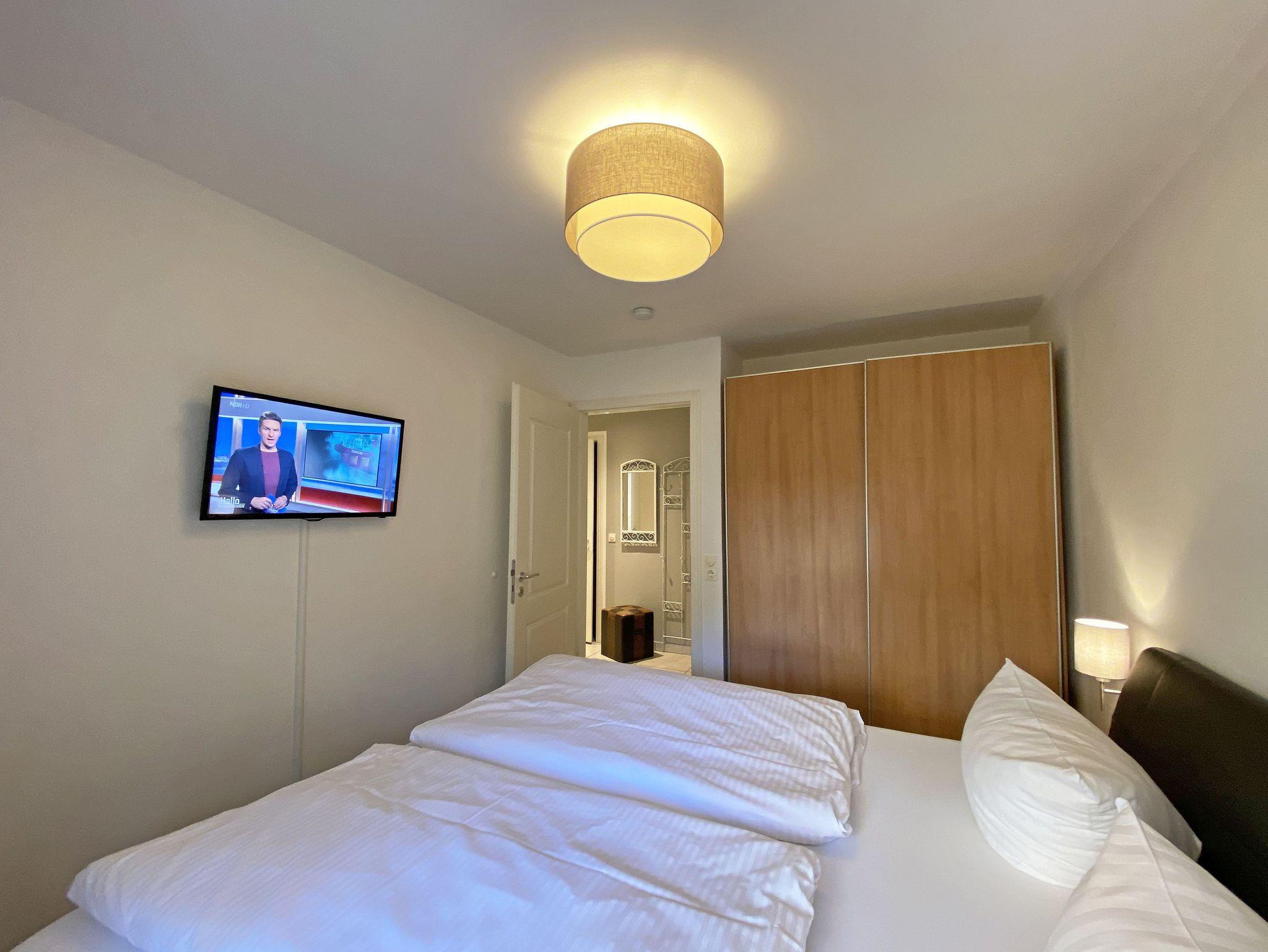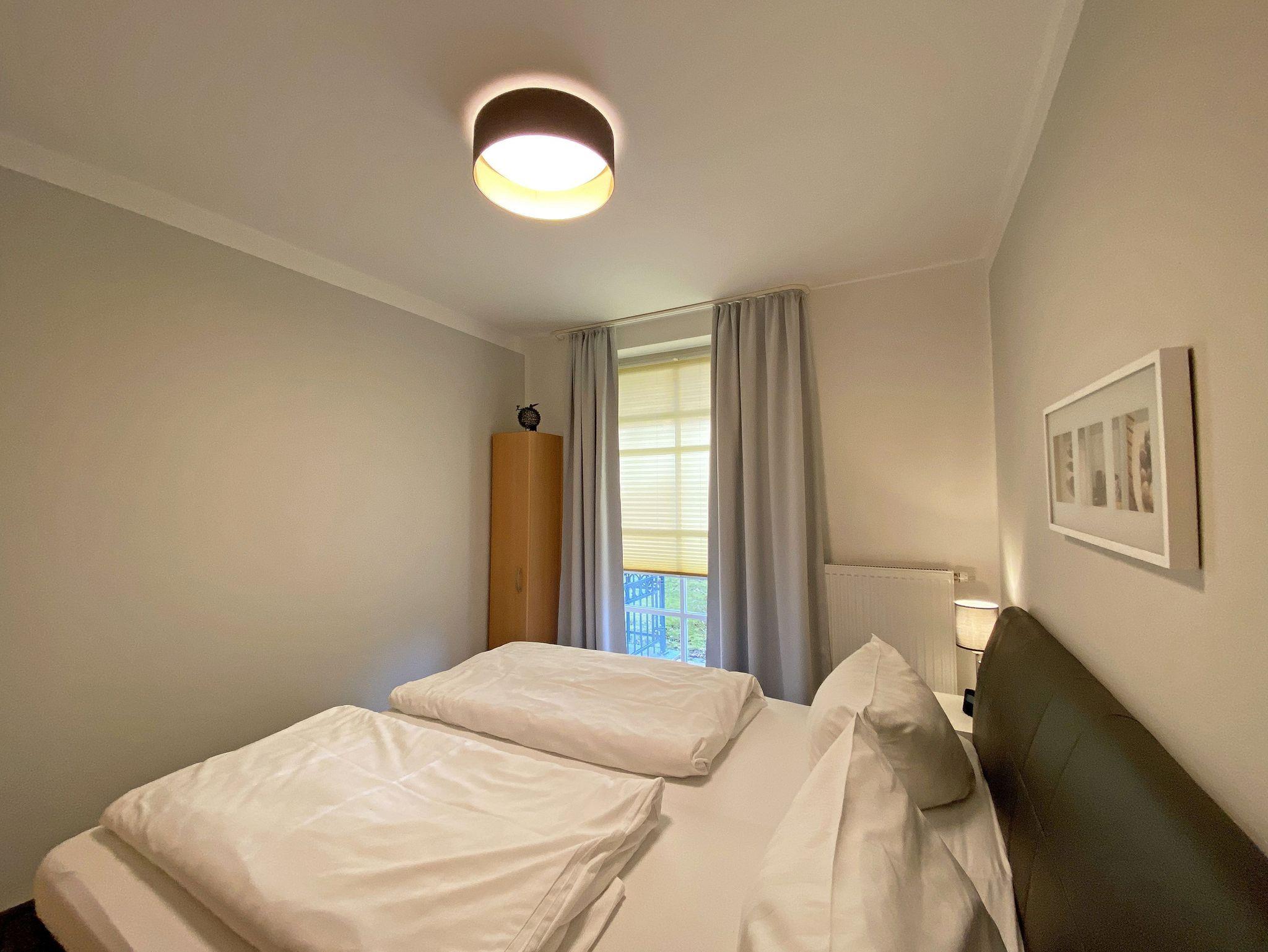 Die helle eingerichtete Nichtraucherferienwohnung Whg 04 Dünentraum befindet sich mit ihren ca. 59 m² im Erdgeschoss des Hauses und bietet Ihnen ausreichend Platz für max. 4 Erwachsene + 1 Kleinkind bis 3 Jahre im Kinderreisebett. Sie erreichen die Wohnung bequem mit dem Fahrstuhl. Der Wohnbereich sticht durch seine bodentiefen Fenster hervor und ist Richtung Wald ausgerichtet. Das Highlight - von der Terrasse (Westen) haben Sie einen wunderschönen Blick auf die Ostsee und können die Abendsonne genießen, die sich in den Kronen der Strandkiefern bricht. Der 3 Sitzer mit Couchtisch, Smart-TV, DVD-Player, Radio mit CD-Player und USB-Anschluss sowie ein WLAN-Anschluss und eine Alexa-Box runden den Wohnbereich ab. Die angrenzende Pantry-Küche passt sich dem Wohnbereich und deren Essecke mit großzügiger Eckbank an. Sie bietet Ihnen eine Edelstahlspüle, 4-Zonen-Cerankochfeld, Kühlschrank mit Gefrierfach, Geschirrspüler, Mikrowelle, Dunstabzugs-Kombination, Kaffeemaschine, Wasserkocher, Toaster sowie diverse Küchenutensilien. So können Sie jede Mahlzeit genießen. Die beiden Schlafzimmer bieten Ihnen jeweils ein bequemes Doppelbett mit Echtleder und in Komforthöhe (2 x 0,90 m x 2,00 m) mit Nachttischablagen, Insektenschutzgittern, Verdunklungsmöglichkeit und einen großen Kleiderschrank. Ein weiteres TV-Gerät befindet sich in einem der Schlafzimmer. Alle Räumlichkeiten sind gefliest. Die beiden innenliegenden Badezimmer mit jeweils einen Waschtisch, einer ebenerdigen Dusche, einen Fön, einem Kosmetikspiegel, einem WC und beheizbaren Handtuch-Heizkörper runden den Komfort ab. Die bestuhlte großzügige Terrasse mit Meerblick kann vom Wohn-/ Essbereich betreten werden, wo Sie auch eine Insektenschutztür vorfinden. Haustiere sind nicht erlaubt. Ein eigener PKW-Tiefgaragen-Stellplatz (Nr.04, Einfahrtshöhe 2,00m) steht Ihnen im Haus inklusive zur Verfügung. Geliehene bzw. mitgebrachte Fahrräder können Sie vor dem Haus bzw. im Fahrradraum abstellen. Im Kellergeschoss befindet sich ein Waschraum (Waschmaschine/Trockner) sowie eine Sauna, welche Sie gegen Extragebühr nutzen können. Die Erstausstattung eines Wäschepaketes (komplette Bettwäsche, 1 Duschhandtuch, 2 kleine Handtücher) können Sie bis 14 Tage vor Anreise gegen einen Aufpreis dazu buchen oder durch eigene ergänzen. Ab 2 gebuchten Paketen erhalten Sie einmalig 1 Geschirrhandtuch und 1 Duschvorleger dazu.
