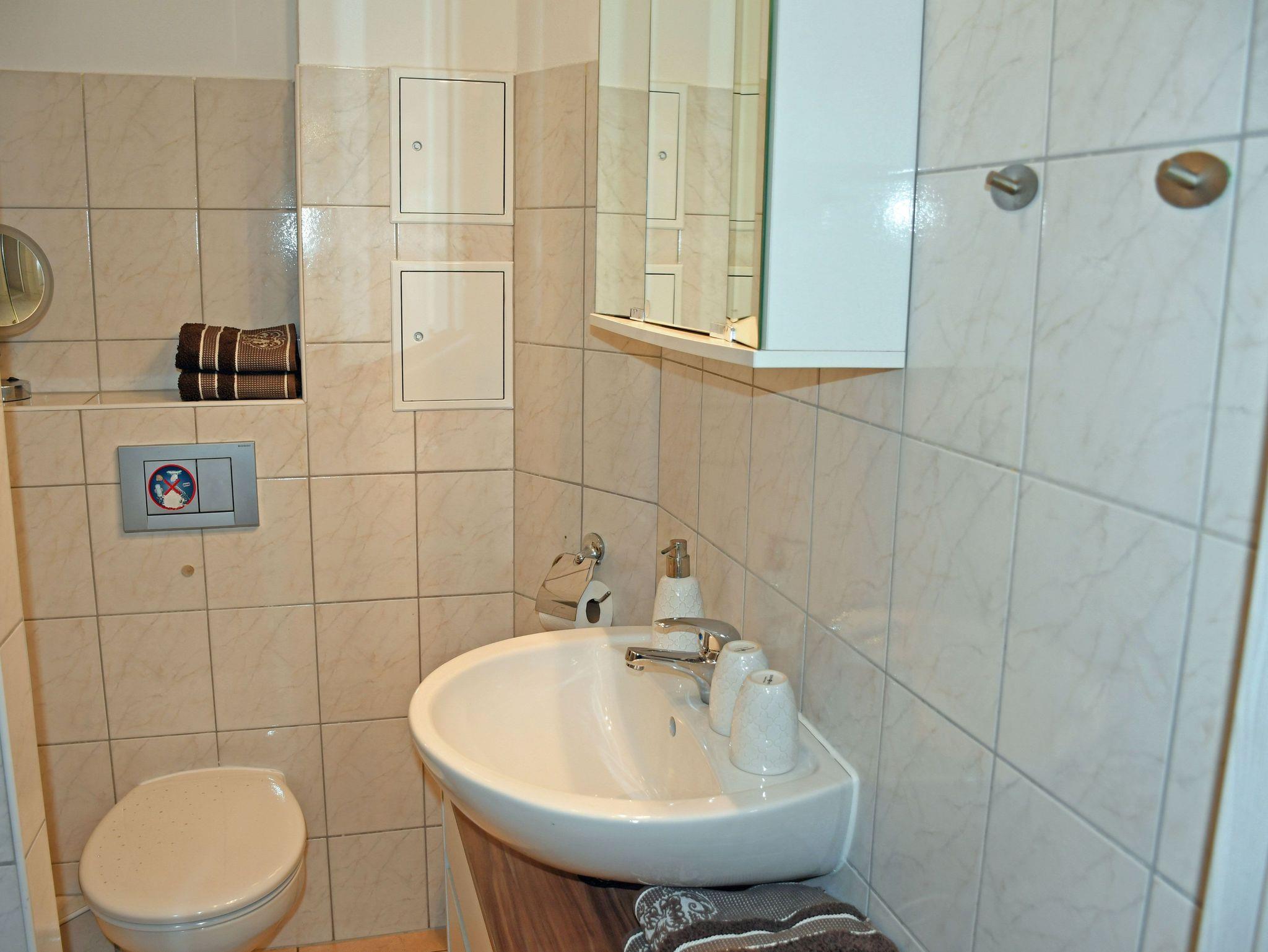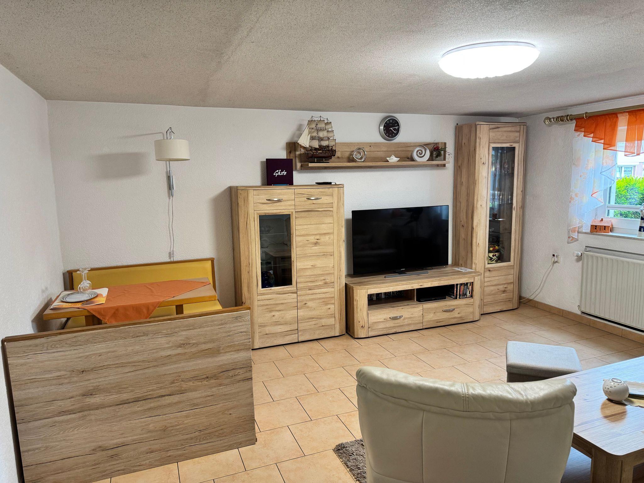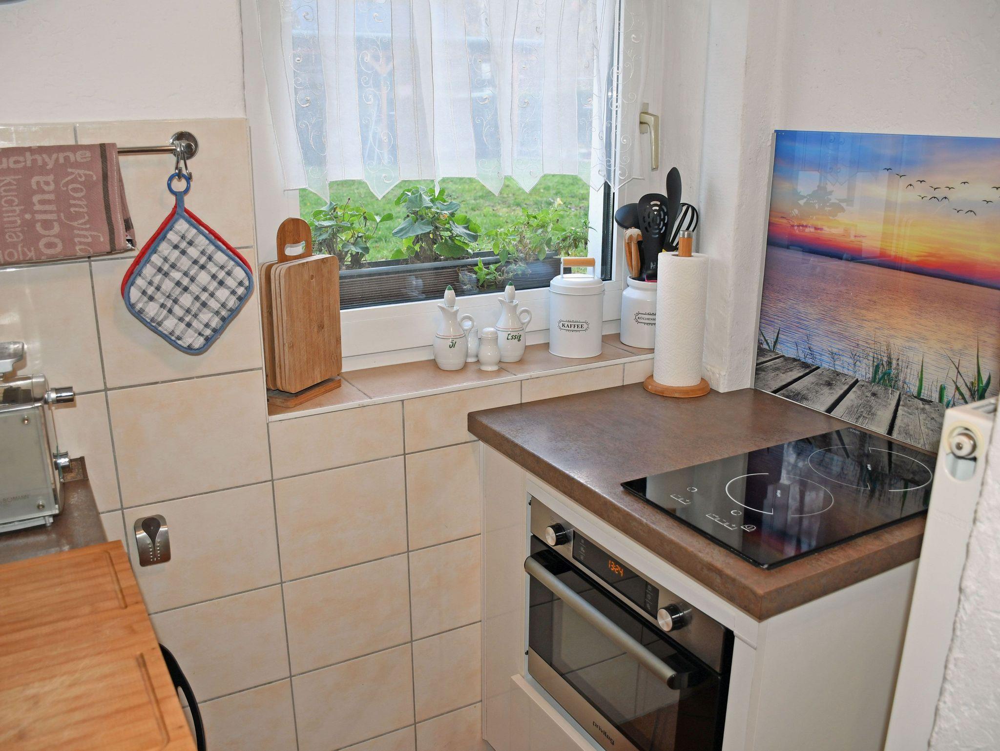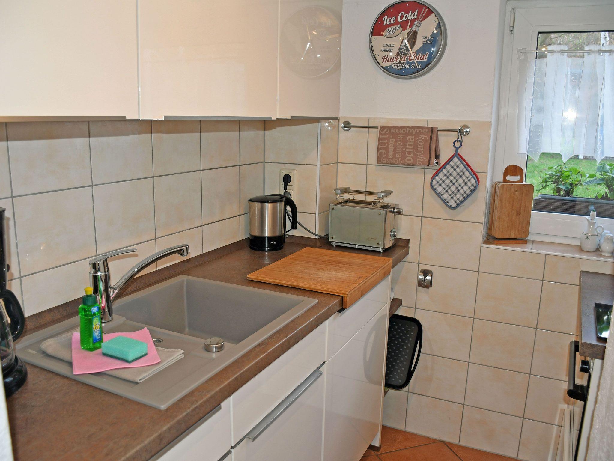 Das Schlafzimmer ist mit einem bequemen Doppelbett (Boxspringbetten) mit Nachttischen und Leselampen sowie einem Kleiderschrank ausgestattet. Für einen 3. und 4. Gast kann bei Bedarf eine Aufbettung auf der Couch im Wohnbereich bereitgestellt werden. Ein kleines Kinderreisebett und ein Hochstuhl können auf Wunsch kostenlos zur Verfügung gestellt werden. Bei Ihrer Anreise liegen frische Handtücher bereit und die Betten sind selbstverständlich bereits mit Bettwäsche bezogen. Das moderne Bad ist mit Dusche, WC und Waschtisch ausgestattet. Zur Ferienwohnung gehören auch eine Sitzgelegenheit im Garten, eine Grillmöglichkeit, Spielmöglichkeiten für Kinder und ein großer, parkähnlicher Gartenbereich.