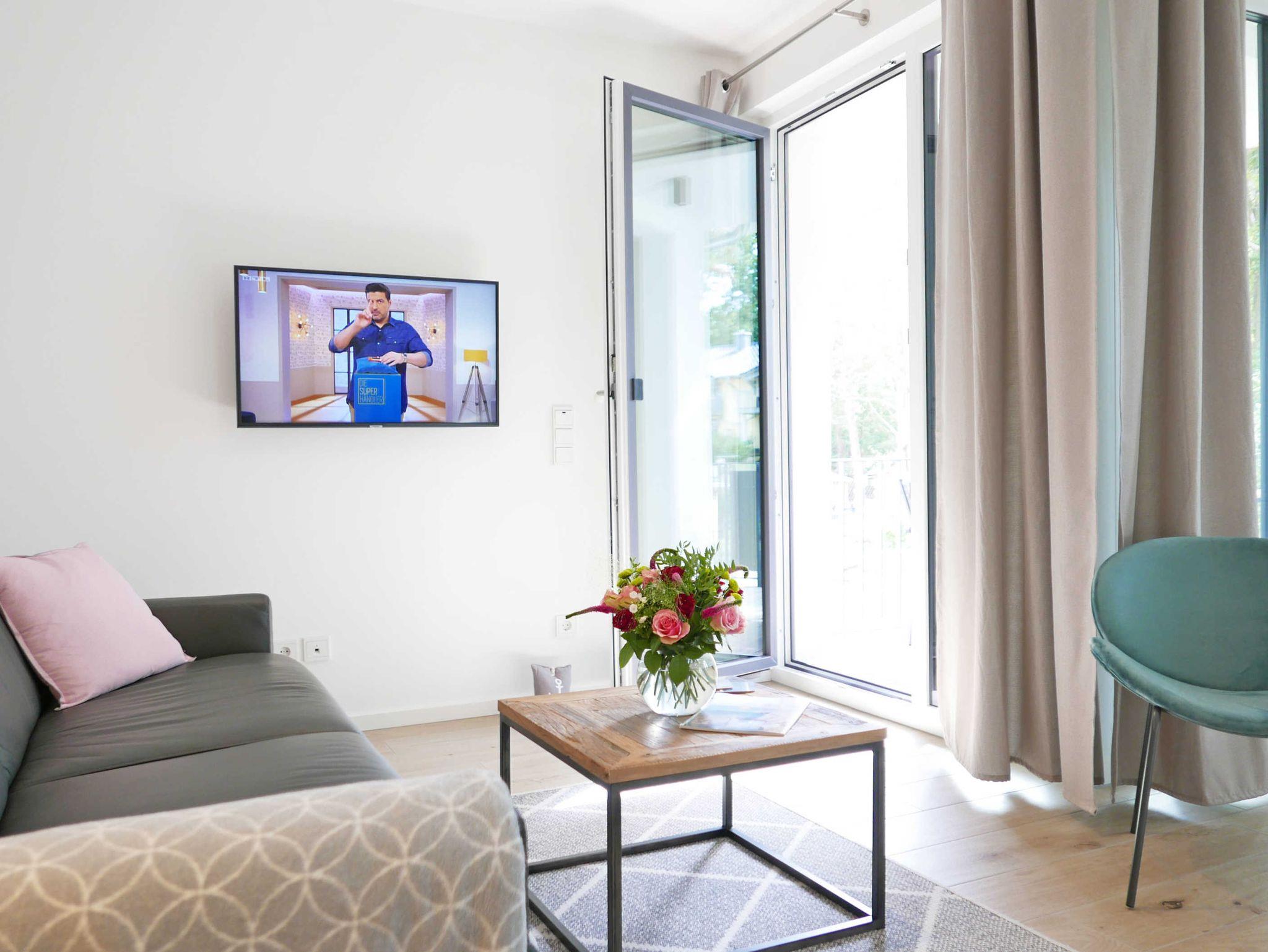 Helle & freundliche 2-Zimmer-Ferienwohnung mit Balkon und Gäste-WC für bis zu 2 Personen in dem neu eröffneten Villen-Ensemble (Vermietungsbeginn Sommer 2019).