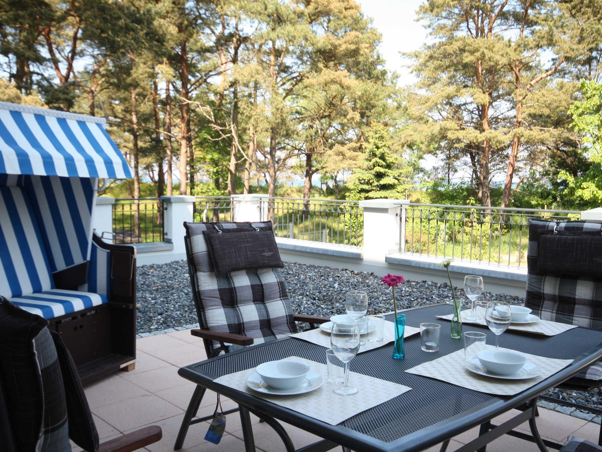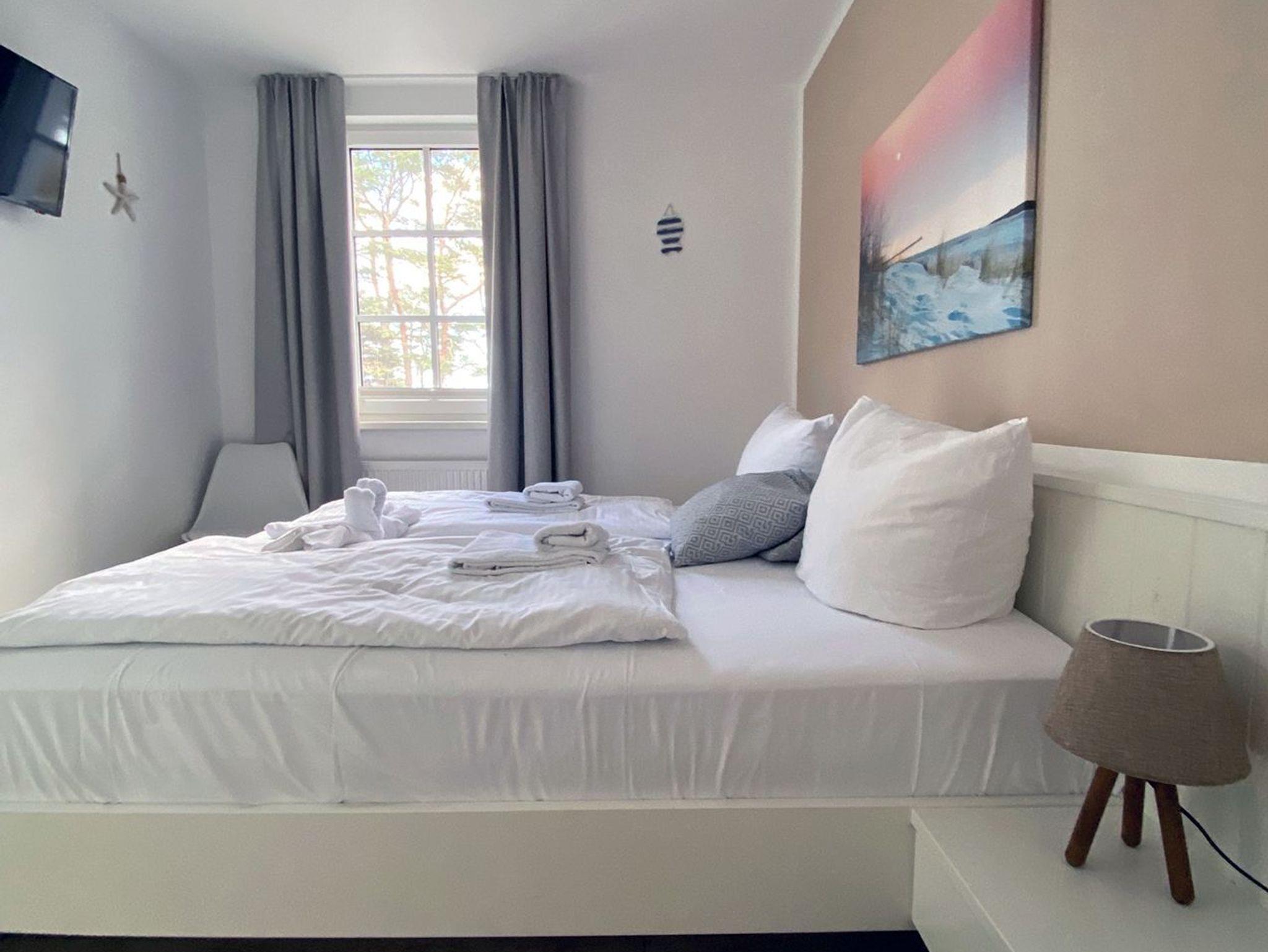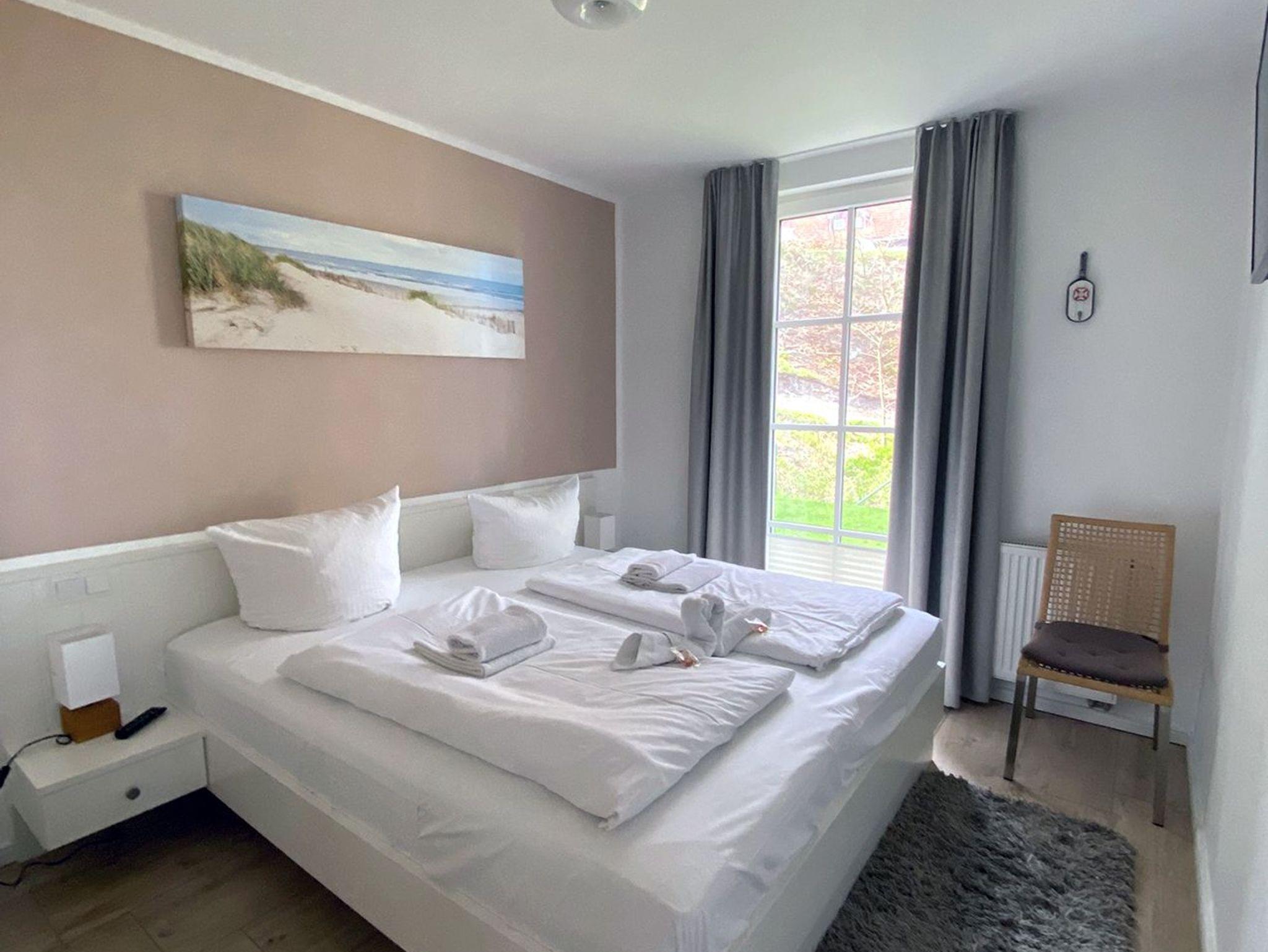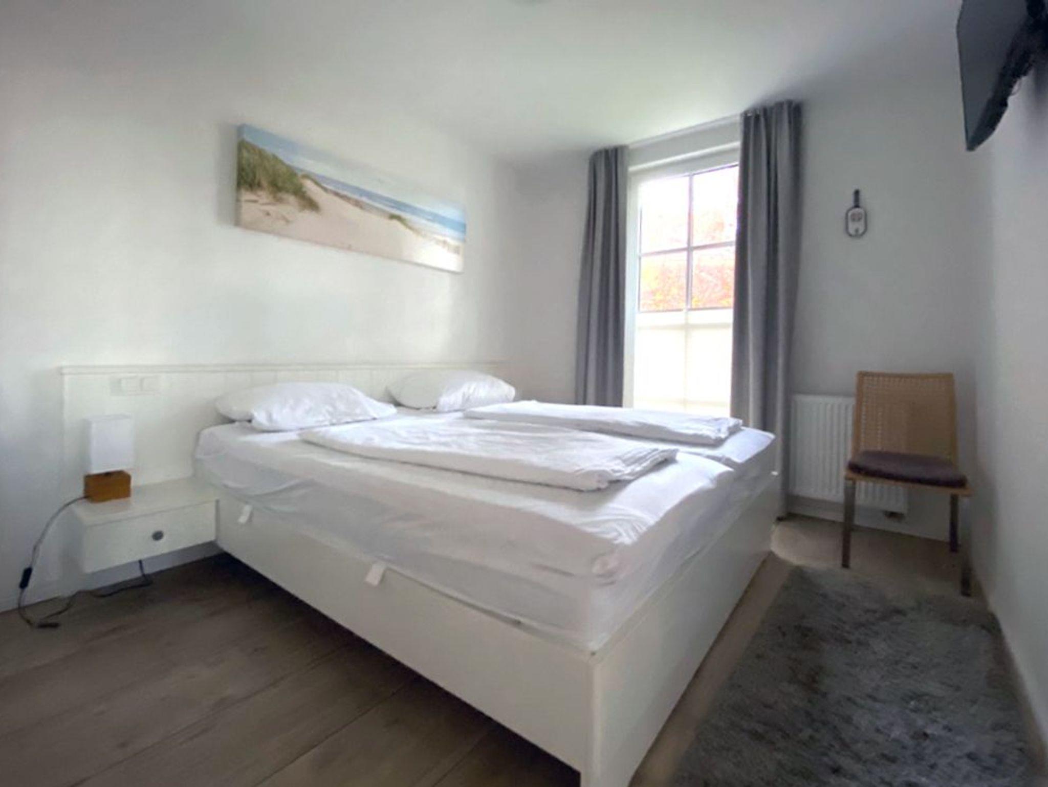 Wunderbare direkte Strandlage mit Meerblick durch die bewaldeten Dünen. Schöne 3 Zimmer Ferienwohnung im Haus Meeresblick mit großer Terrasse zum Meer gelegen inkl. Strandkorb. Besser geht es kaum. Es gibt 2 Schlafzimmer mit je einem Doppelbett sowie einen 32 TV und Verdunklungsvorhängen.