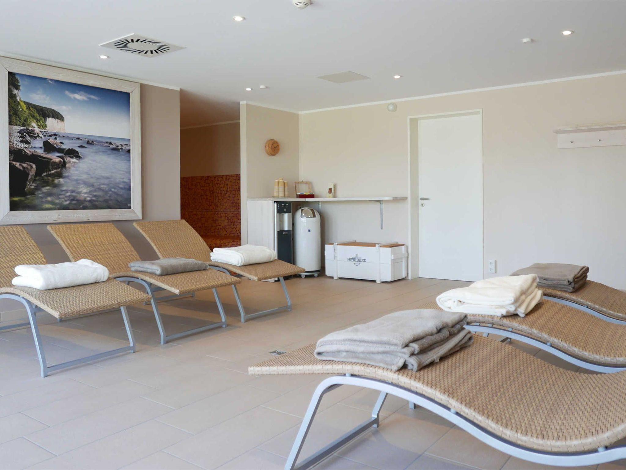 Die exklusive Anlage Haus Meeresblick wurde 2013 eröffnet und hat einen direkten Zugang zum Strand. Das Haus ist mit mehreren Fahrstühlen, einer Tiefgarage und einem großen Wellnessbereich mit Schwimmbad (ca. 8,00 m x 4,00 m - 1,35 m tief), zwei Saunen (eine finnische Sauna/eine Bio-Sauna) und einem Massagebereich ausgestattet. So können Sie sich zu jeder Jahreszeit im Haus Meeresblick erholen.