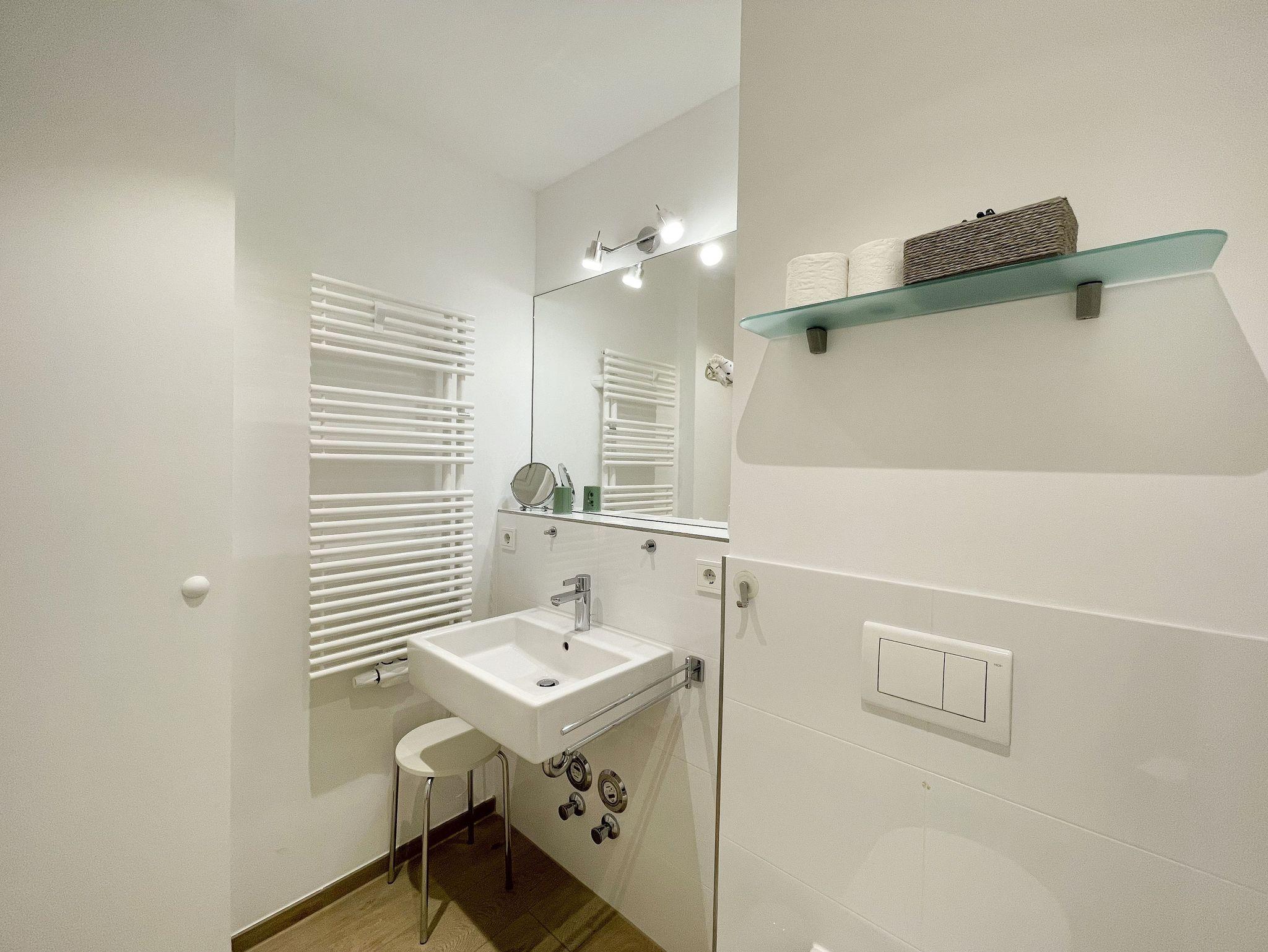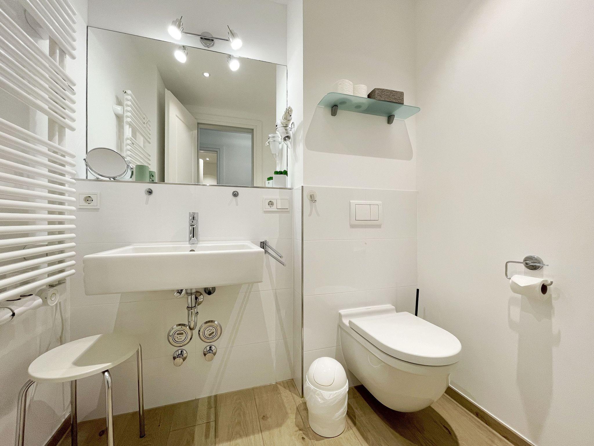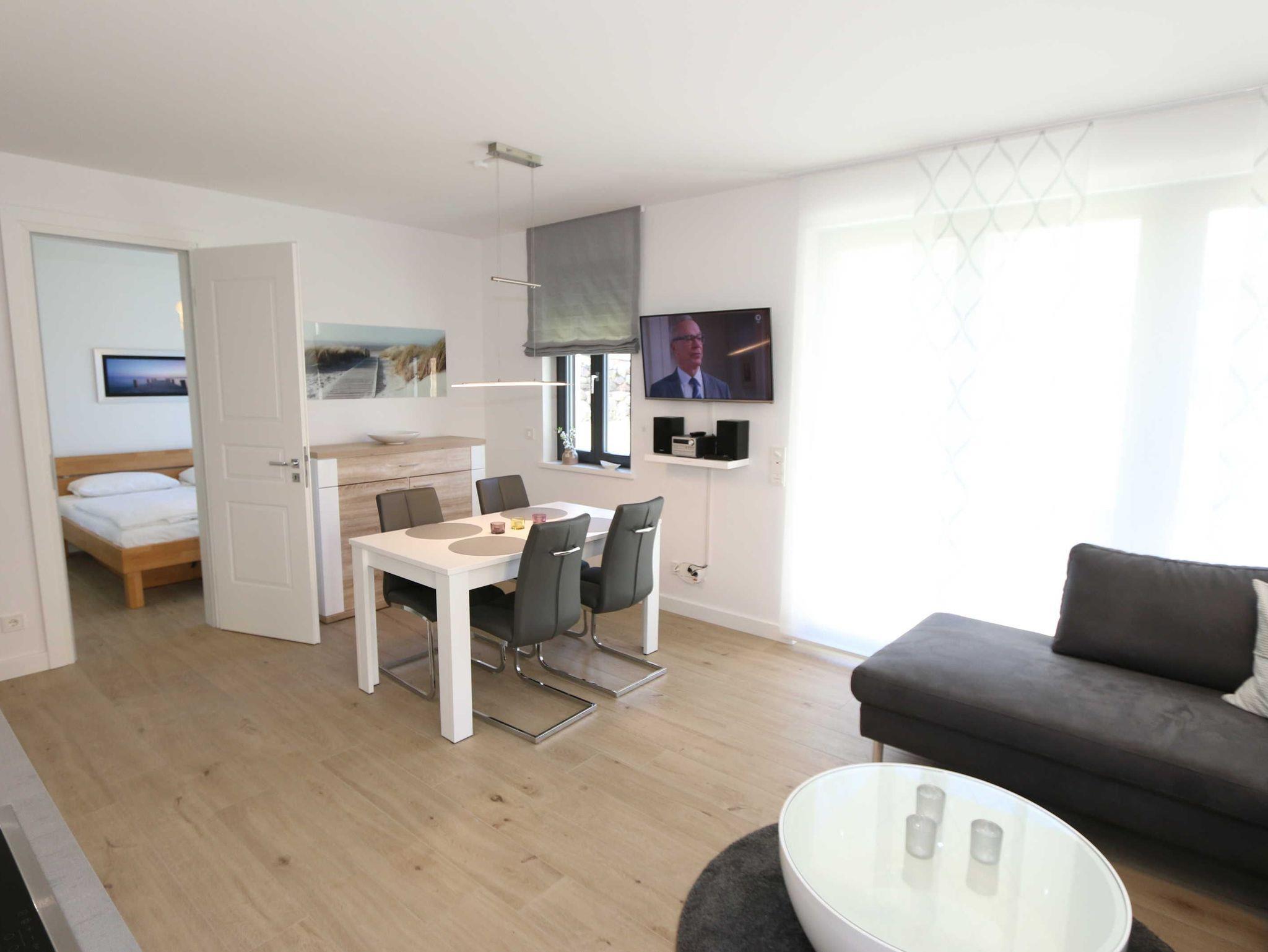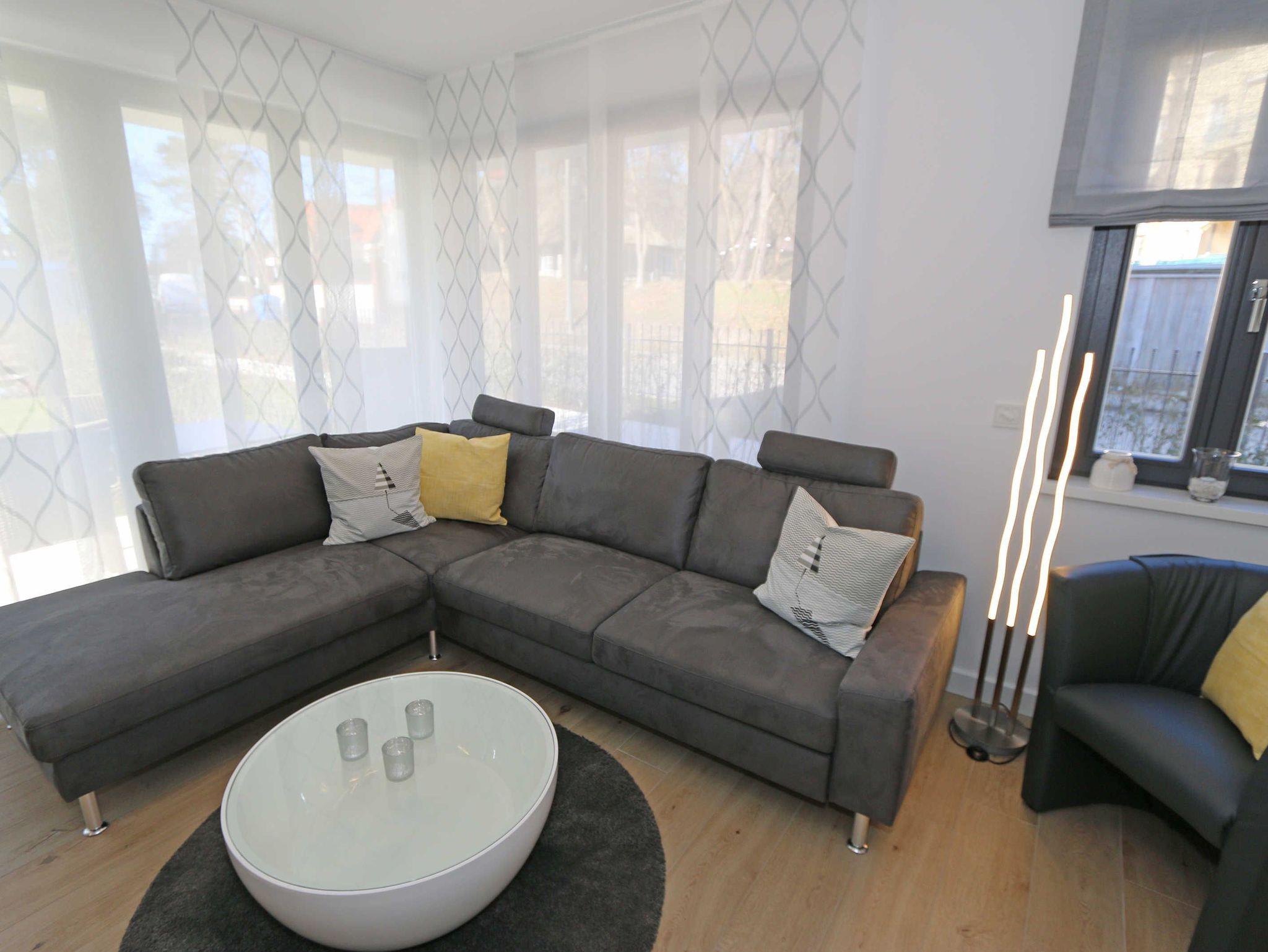 Die ca. 65 m² große 3-Zimmer-Ferienwohnung (Nichtraucher) bietet Ihnen durch ihre hochwertige Ausstattung beste Voraussetzungen für einen erholsamen Urlaub. Durch eine moderne und großzügige Raumaufteilung herrscht genügend Platz für 2 bis 4 Personen. Im lichtdurchfluteten Wohn-/Esszimmer können Sie durch die komfortable Eckcouch, einen Couchtisch, eine Leselampe, ein Sideboard und einen großen Essplatz gemütliche Tage verbringen. Für Unterhaltung sorgen dabei ein Smart-TV, eine Stereoanlage mit DAB-Radio inkl. CD-Player und das in der Wohnung kostenlos, verfügbare W-LAN. Vom Wohnbereich gelangen Sie auf die nach Süden ausgerichtete und bestuhlte Terrasse mit einer großzügigen Rasenfläche und Sonnenschirm, die von Ihnen allein genutzt werden kann. Für Ihr leibliches Wohl können die moderne Küchenzeile mit einem Ceranfeld, Backofen, Spülmaschine, Kühlschrank mit Eisfach, Kaffeemaschine, Dolce Gusto Maschine, Toaster, Wasserkocher sowie diverse Küchenutensilien sorgen. Ein weiterer Smart-TV befindet sich in einem der beiden Schlafzimmer, die jeweils mit bequemen Betten (ein Schlafzimmer verfügt über ein Doppelbett (1,80 m x 2,00 m) das andere über 2 Einzelbetten (je 0,90 m x 2,00 m), verstellbare Lattenroste, Nachttischablagen und Kleiderschränken für Ihre Urlaubsgarderobe ausgestattet sind. Für einen ruhigen Schlaf dienen die Außenrollos. Vom weitläufigen Flurbereich gelangen Sie direkt in die zwei komfortablen Bäder, die jeweils mit ebenerdiger Regen-Dusche, WC, Fön, Kosmetikspiegel, Handtuchtrockner sowie einen Waschplatz mit großzügigem Spiegel und breiter Ablagefläche eingerichtet sind. Alle Räumlichkeiten sind mit einer Fußbodenheizung ausgestattet sowie mit Insektenschutzgitter versehen. Haustiersind nicht erlaubt. Die hauseigene Tiefgarage (Platz Nr. 4 / Einfahrtshöhe 2,00 m) sorgt dafür, dass Ihr PKW sicher untergebracht ist. Durch die Tiefgarage gelangen Sie direkt in die Strandvilla Andrea, die auch über einen Lift verfügt, um Ihr Reisegepäck mühelos in die Ferienwohnung zu transportieren. Im Keller befinden sich außerdem eine münzgesteuerte Waschmaschine, ein Wäschetrockner und eine Sauna mit angrenzender Dusche, WC und einem Ruheraum, die zum Entspannen einladen. Auf dem Gelände der Strandvilla befinden sich überdachte Fahrradständer, an denen Sie eigene oder geliehene Räder abstellen können. Die Erstausstattung eines Wäschepaketes (komplette Bettwäsche, 1 Duschhandtuch, 2 kleine Handtücher) können Sie bis 14 Tage vor Anreise gegen einen Aufpreis dazu buchen oder durch eigene ergänzen. Ab 2 gebuchten Paketen erhalten Sie einmalig 1 Geschirrhandtuch und 1 Duschvorleger hinzu.