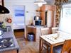Küchenutensilien, Spülmaschine, Wasserkocher, Toaster, Filterkaffeemaschine, Kühlschrank, Mikrowelle, Herd, Esstisch mit Stühlen