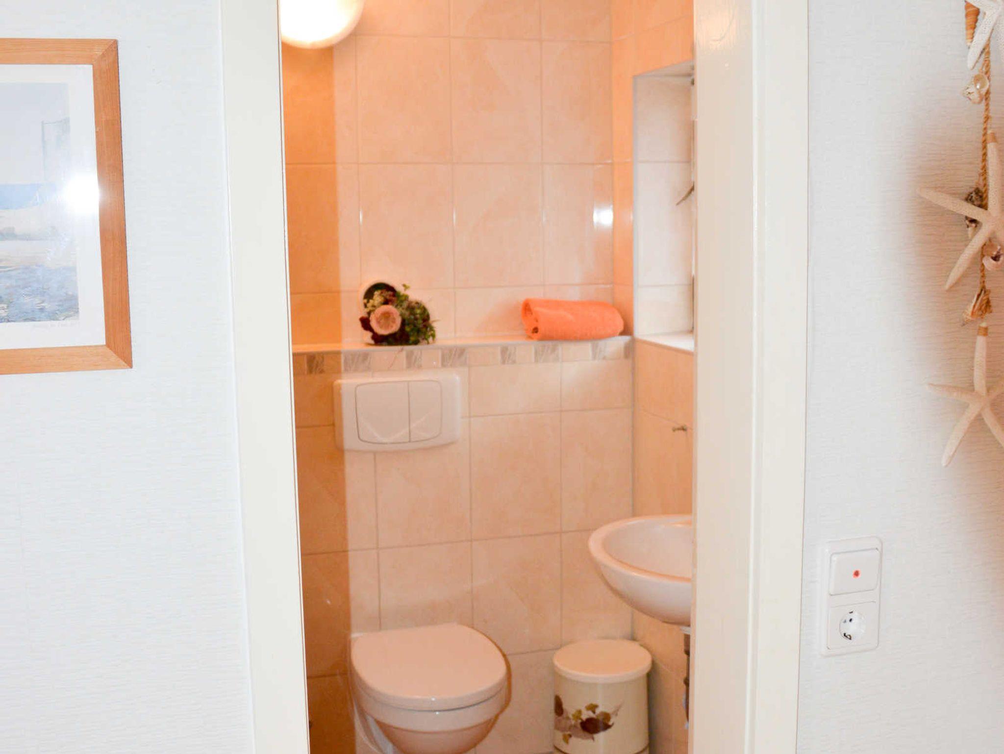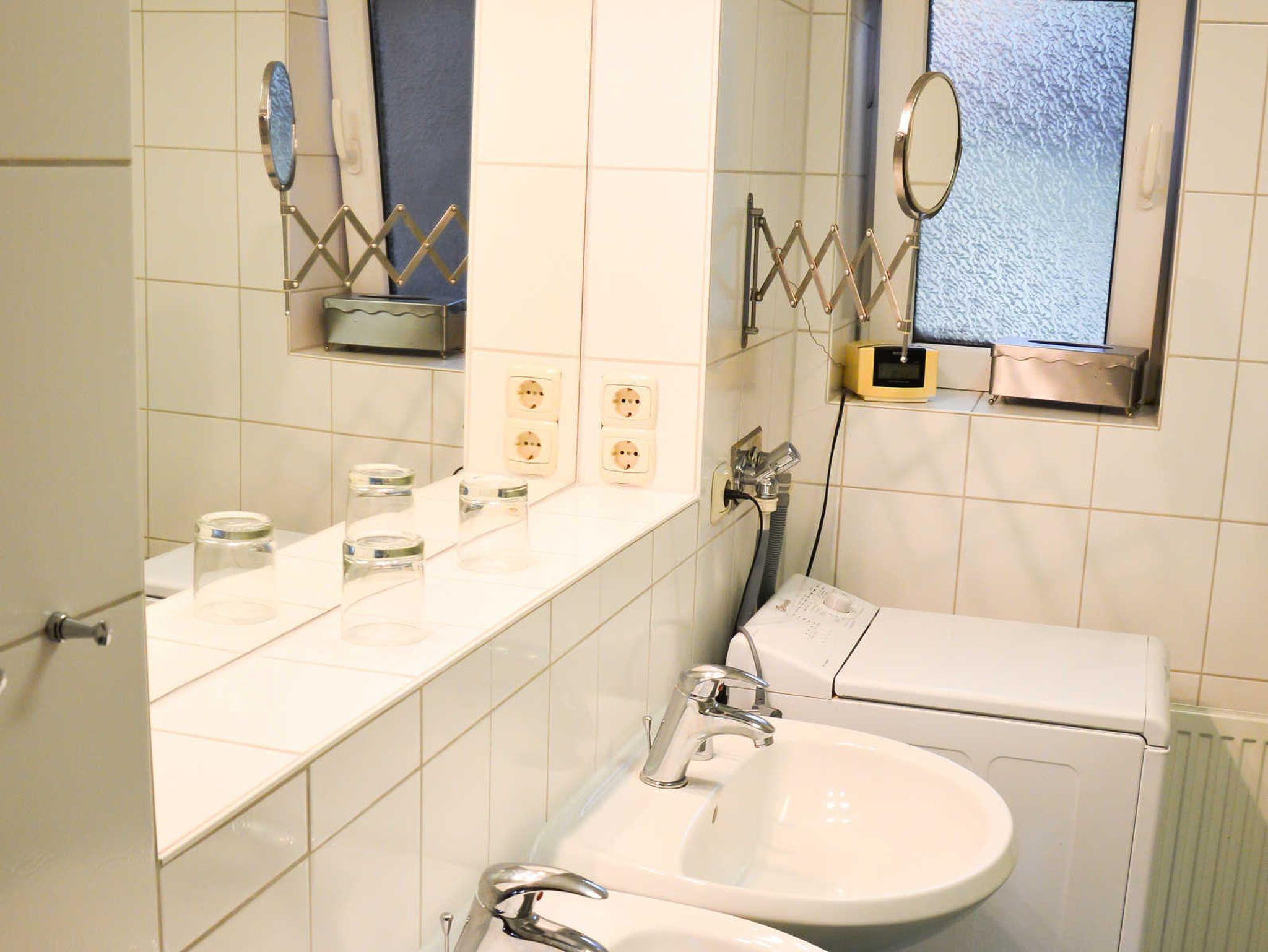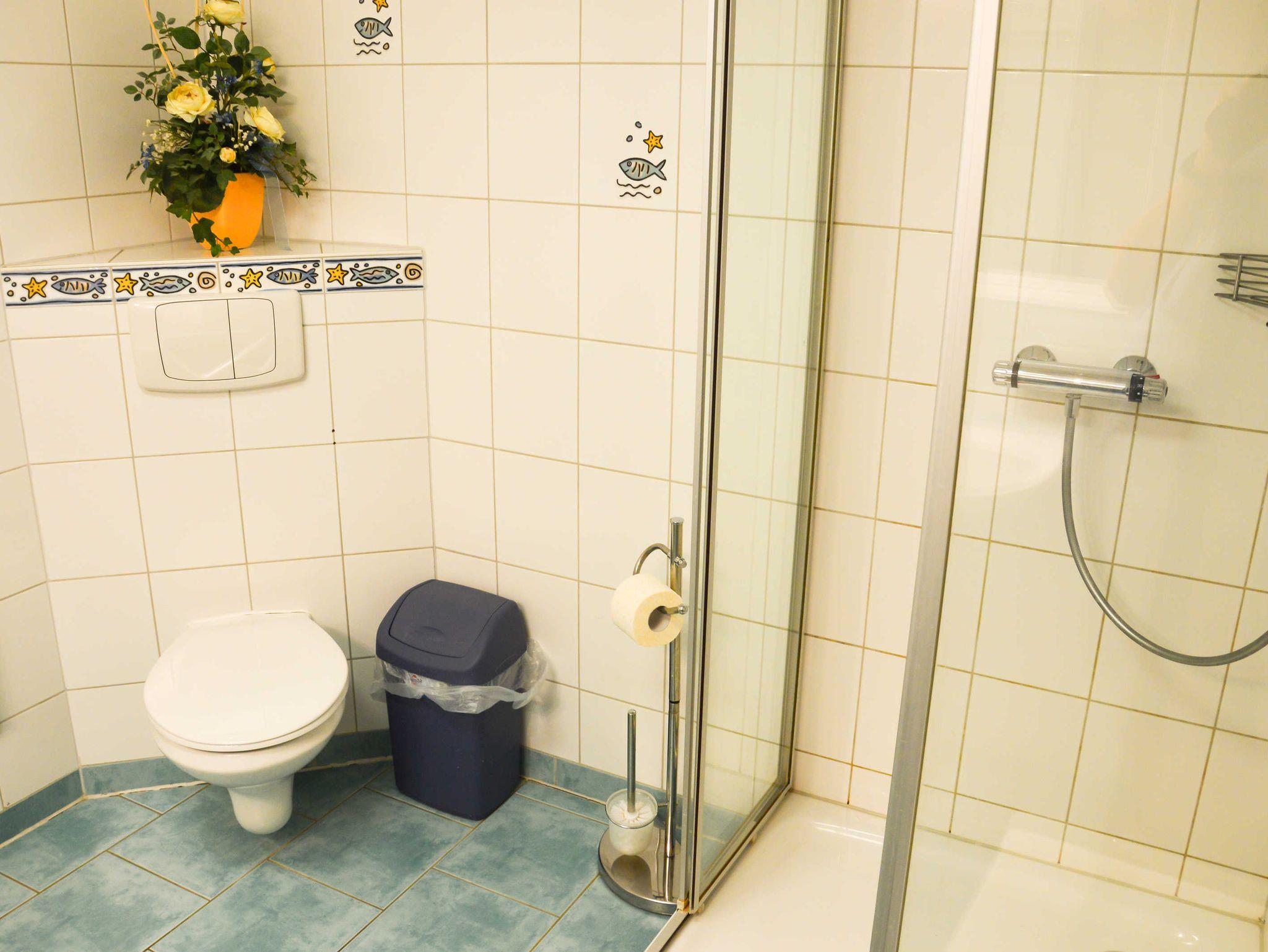 WC , Dusche, Waschmaschine, Haartrockner, Toilettenpapier, Handtücher, Wandwäschetrockner