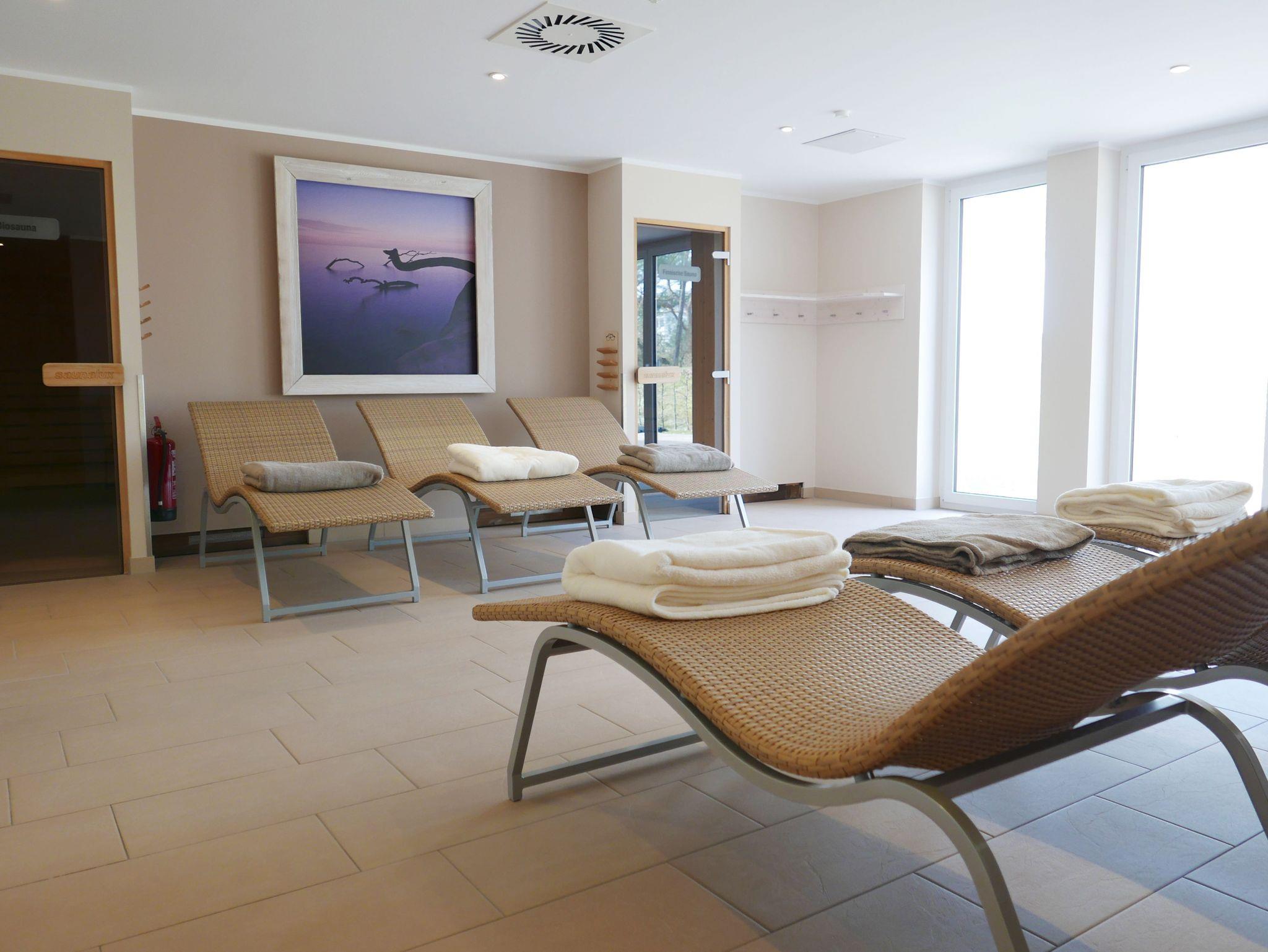 Die Ferienwohnung liegt in einer separaten Villa im Haus Meeresblick. Das erst 2013 neu eröffnete Haus Meeresblick mit Schwimmbad, Massage- und Saunabereich liegt direkt am Strand von Baabe.