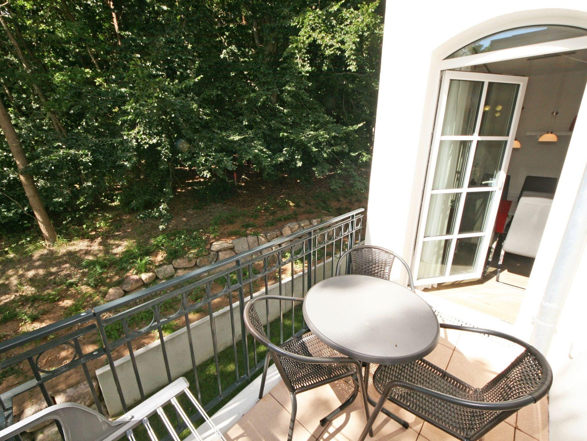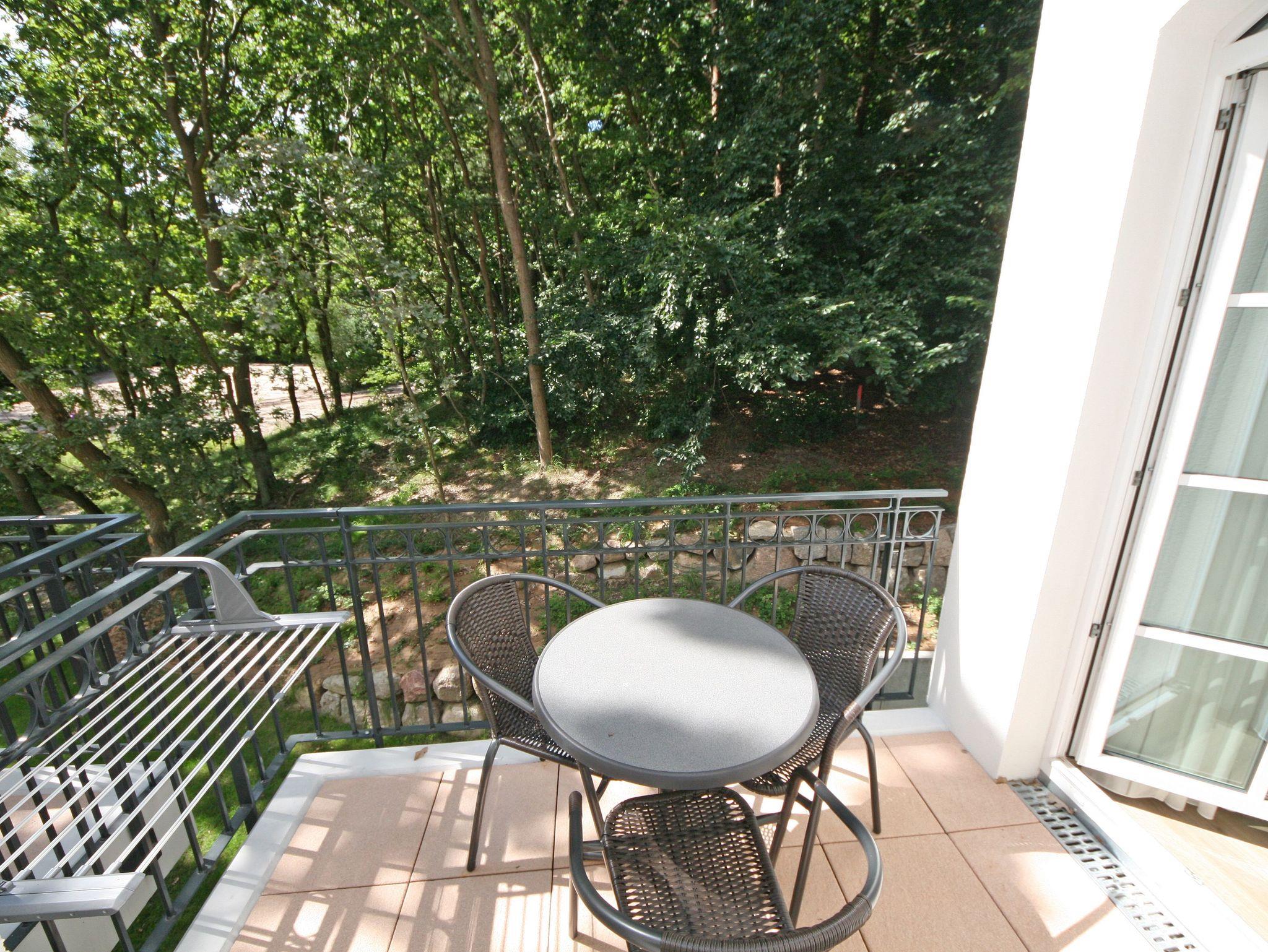 Unmittelbar am Kurpark des Ostseebades Baabe, umgeben von Kiefern befindet sich die neue Appartementanlage Meeresblick. Die Ferienanlage besteht aus 3 freistehenden Häusern und ist nur ca. 80 Meter vom feinen Sandstrand entfernt. An die hiesige Bäderarchitektur angelehnt fügt sich die Meeresblickanlage wohltuend in die Umgebung ein. Die Ferienwohnungen verfügen über einen hohen Komfort und lassen Ihren Urlaubstraum wahr werden. Im Haupthaus befindet sich ein Wellnessbereich mit Innenpool, Sauna und Ruheraum (inklusive) der zur Entspannung einlädt. Eine hauseigene Tiefgarage sorgt dafür, dass Ihr PKW sicher untergebracht ist. Cafés und Restaurants laden in der Anlage zum Verweilen ein. Ein weiteres Highlight ist der Müther Schalenbau (Restaurant Inselparadies Baabe), welches saniert, restauriert und in die Meeresblickanlage liebevoll integriert wurde. Von hier aus haben Sie einen fantastischen Blick auf die weite Ostsee. Die Wohnung (A 1.24) Ostseegold befindet sich im Haupthaus A im 1. Obergeschoss und verfügt über einen Balkon mit Blick Richtung Kiefern (Nord/West). Die Wohnung (A 2.28) befindet sich im Nebenhaus A in der 1. Etage und verfügt ebenfalls über einen Balkon Richtung Westen (Baumbestand).