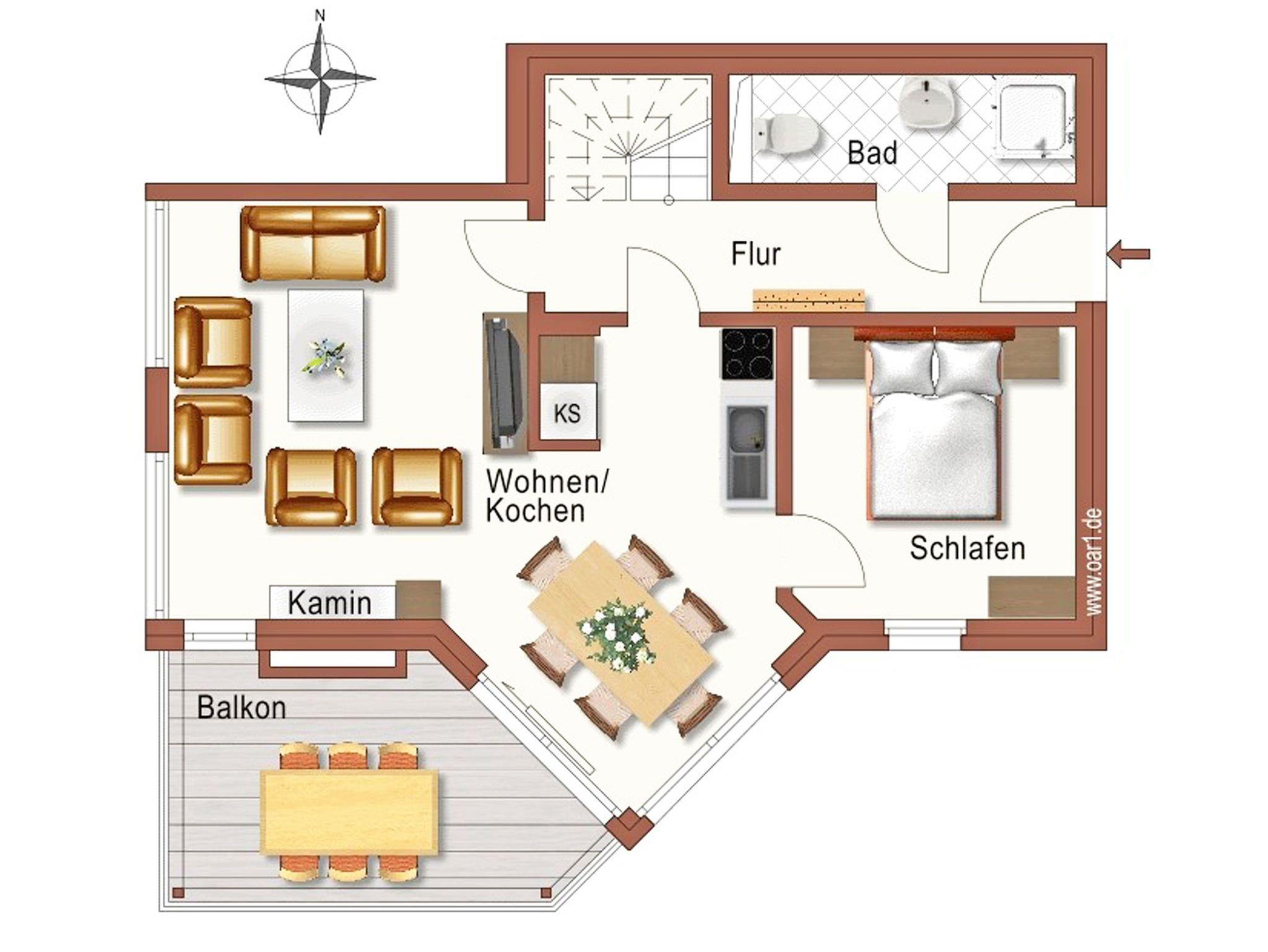 Einen kleinen möblierten Balkon gibt es im oberen Bereich auch.