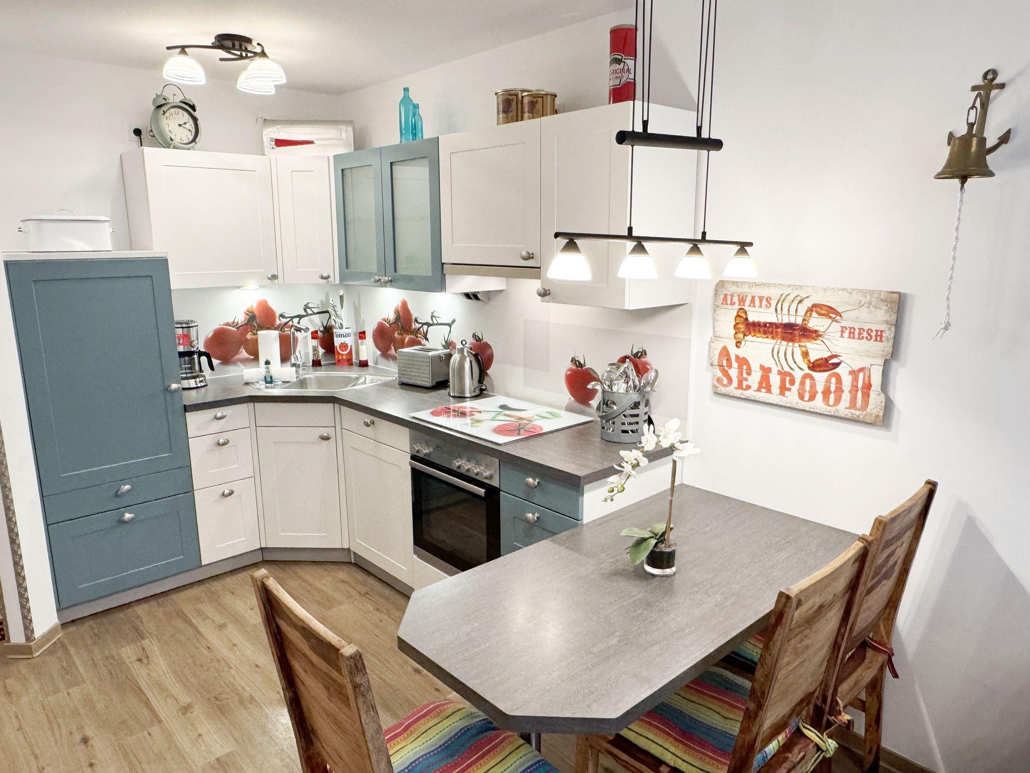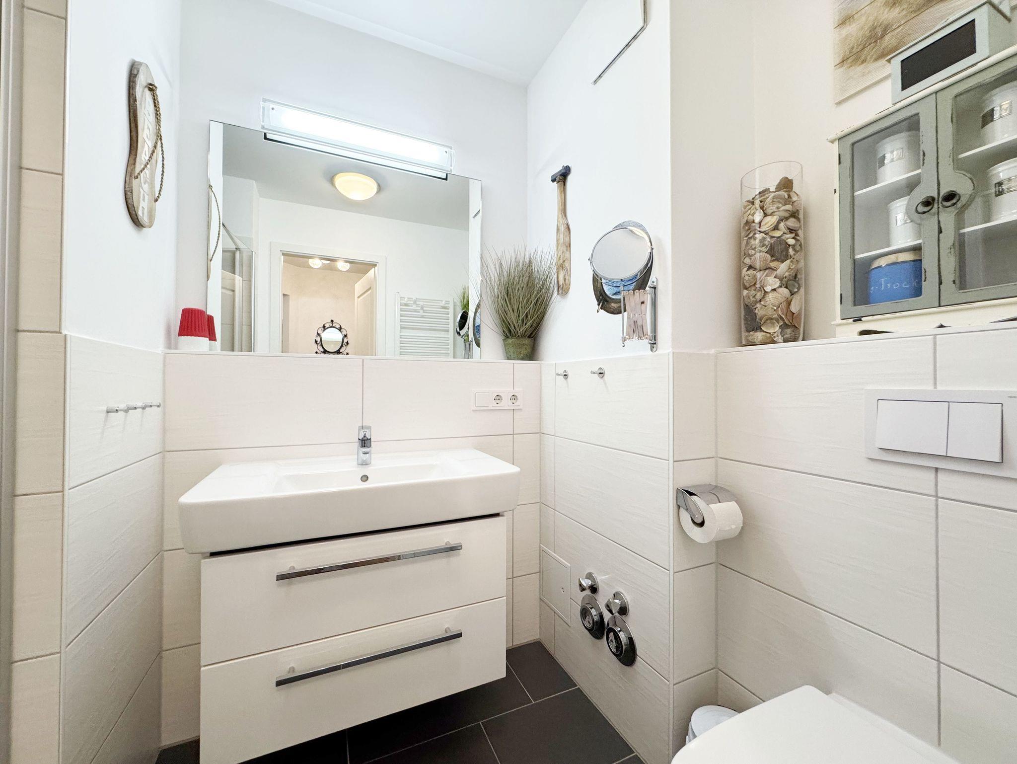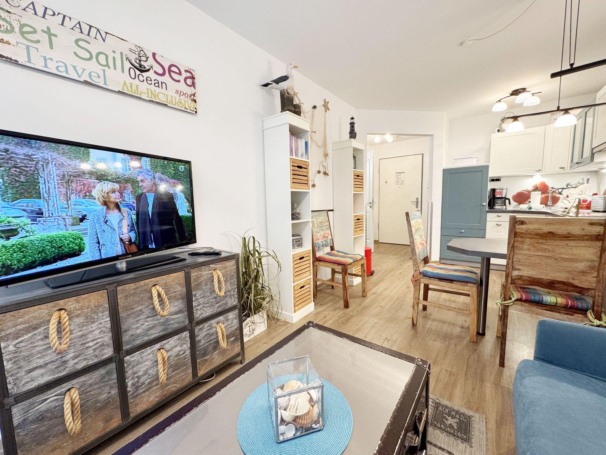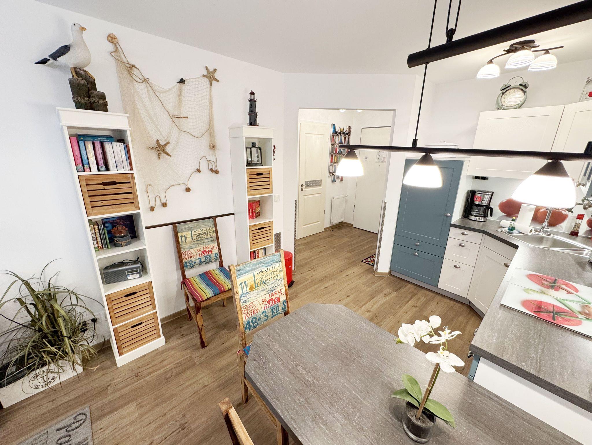 Dieses individuell eingerichtete Nichtraucher-Appartement mit separatem Schlafzimmer im zweiten Obergeschoss des Hauses Meeresblick bietet Ihnen ausreichend Platz. Auf ca. 41 m² fühlen Sie sich mit max. 2 Erwachsene + 1 Kleinkind bis 3 Jahre im Kinderreisebett wohl. Sie erwartet ein Wohn-/Essbereich mit integrierter Küchenzeile, die mit einem 4-Zonenkochfeld, einem Kühlschrank mit Gefrierfach, einer Geschirrspülmaschine, einer Kaffeemaschine, einen Toaster und einem Wasserkocher und allen Küchenutensilien vollwertig ausgestattet ist. Natürlich wurde auch an einen gemütlichen Essplatz gedacht. Im angrenzenden Wohnbereich lädt eine Couch zum Verweilen ein. Der gemütliche Sessel, ist der ideale Ort, um den Tag ausklingen zu lassen, oder auch mal, um zwischendurch zu relaxen. Zusätzlich finden Sie hier noch eine Stehlampe, einen Couchtisch sowie Regale wo etwas Urlaubslektüre auf Sie wartet. Ein Internetanschluss (WLAN/LAN) steht Ihnen inklusive zur Verfügung. Der technische Bereich wird durch einen Flachbild-TV sowie ein DAB-Radio abgerundet. Auf dem windgeschützten und bestuhlten Balkon (Nord) können Sie Ihre Ruhe finden, da er ist nur von einer Seite einsehbar ist. Diesen erreichen Sie vom Wohnbereich. Im separaten Schlafzimmer stört Sie in der Nacht höchstens das Geräusch des Windes, der durch die Kiefern weht. Ein 1,80 m x 2,00 m Doppelbett, mit Komfort- Wendematratzen (HG 3 & 4), Nachttischablagen einen geräumigen Kleiderschrank, ein Flachbild TV sowie Insektenschutzgitter runden die Ausstattung ab. Das moderne Duschbad verfügt über eine ebenerdige Glasdusche, ein WC, ein Waschplatz, einen Kosmetikspiegel, einen Fön sowie einem Schrank. Haustiere sind nicht erlaubt. Ein Tiefgaragen-Stellplatz (Nr. 16, Einfahrtshöhe 2,00m) steht unseren Feriengästen kostenlos zur Verfügung, von wo Sie Ihre Ferienwohnung bequem mit dem Aufzug erreichen können. Ein Ausweichstellplatz im Freien befindet sich hinter dem Café Zeit. Der Wellnessbereich, der exklusiv den Bewohnern des Haus Meeresblick vorbehalten ist, beinhaltet ein Schwimmbecken (ca. 8,00 x 4,00 m - 1,35 m tief), zwei Saunen (1 Bio-Sauna & 1 Finnische Sauna), eine Erlebnisdusche, drei Duschanlagen, eine Schneckendusche sowie Umkleiden für Damen und Herren, und natürlich WCs. Es findet sich hier auch eine schöne Außenterrasse, die es erlaubt, Sonne und Seeluft ohne den Trubel des Strandes zu genießen. Im Keller des Hauses haben Sie die Möglichkeit eine Waschmaschine/Trockner gegen Gebühr zu nutzen. Ein Kinderreisebett steht für unsere kleinen Gäste inklusive zur Verfügung. Einen Hochstuhl können gegen eine Gebühr dazubuchen. Die Erstausstattung eines Wäschepaketes (komplette Bettwäsche, 1 Duschhandtuch, 2 kleine Handtücher) können Sie bis 14 Tage vor Anreise gegen einen Aufpreis dazu buchen oder durch eigene ergänzen. Ab 2 gebuchten Paketen erhalten Sie einmalig 1 Geschirrhandtuch und 1 Duschvorleger hinzu.