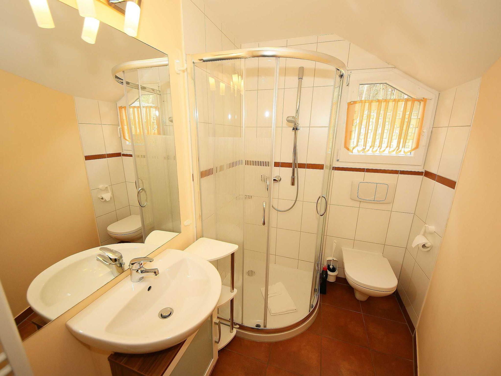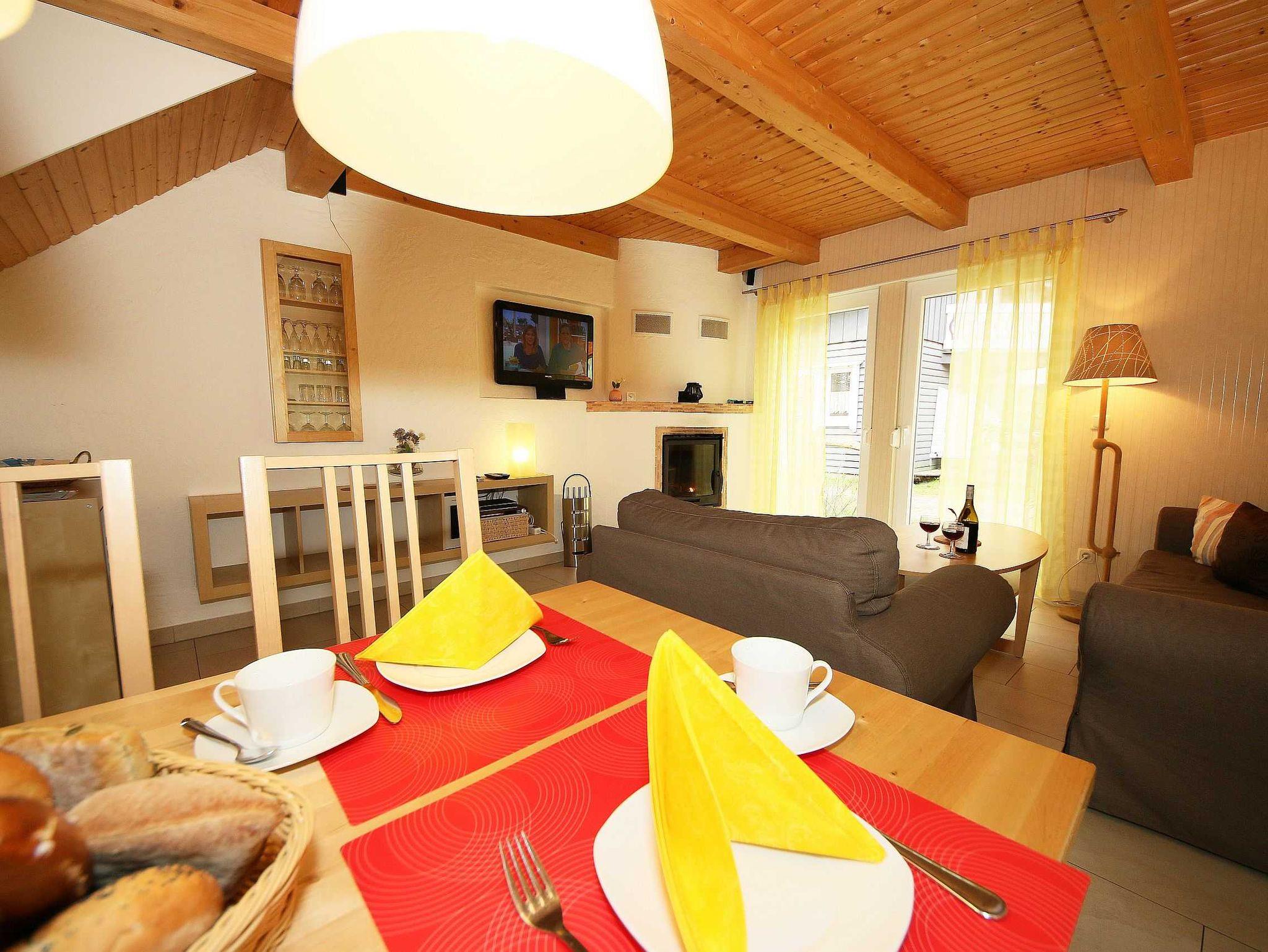 Die Doppelhaushälfte (Nichtraucher) mit Ihren 55 m² Wohnfläche bietet ausreichend Platz für 4 Erw. + 1 Kleinkind bis 3 Jahre im Kinderreisebett. Die bodentiefen Fenster im Wohn-/Essbereich lassen viel Tageslicht herein und geben Ihnen den direkten Zugang zur überdachten und bestuhlten Terrasse (Nord-West). Abgerundet wird diese durch einen Grill. Der gemütlich, im Schwedenstil, eingerichtete Wohnbereich ist mit einer Couchecke, Couchtisch, LCD-TV mit HD-Qualität und Satellitenempfang, DVD-Player mit Radio und ein Sideboard aus Naturholz ausgestattet. Für die kühleren Tage bieten Ihnen der Kamin (Kaminholz inklusive) sowie die Fußbodenheizung eine angenehme Wärme. Ihre Unterhaltungstechnik wird durch einen kostenfreien WLAN-Zugang abgerundet. Die angrenzende Küchenzeile mit Backofen, Ceranfeld, Dunstabzug, Kühlschrank + Eisfach, Spülmaschine, Mikrowelle, Kaffeemaschine, Toaster, Wasserkocher und kleinen Küchenhelfern lässt keine Wünsche offen. Ihre Mahlzeiten nehmen Sie am dazugehörigen Esstisch mit 4 Stühlen ein. Im Obergeschoss befinden sich beide Schlafzimmer die jeweils mit 2 Boxspringbetten (je mit 0,80 m x 2,00 m), Nachtischablagen, Safe und einem Kleiderschrank ausgestattet sind. Zusätzlich können Sie ein Kinderreisebett in eines der Schlafzimmer aufstellen. Von beiden Schlafzimmern gelangen Sie auf den Balkon. Das Tageslichtbad, was sich auf der gleichen Höhe befindet, wurde mit einer ebenerdigen Dusche, WC, Waschplatz, Handtuchtrockner und Fön ausgestattet. Für unsere kleinen Gäste steht Ihnen 1x Kinderhochstuhl und ein 1x Kinderreisebett (inkl. Matratze, ohne Bett Inlett) inklusive zur Verfügung. Eine kleine Waschküche steht Ihnen inklusive zur Verfügung. 2 kleine Haustiere sind gegen eine Gebühr gern gesehene Gäste. Die Erstausstattung eines Wäschepaketes (komplette Bettwäsche, 1 Duschhandtuch, 2 kleine Handtücher) können Sie bis 14 Tage vor Anreise gegen einen Aufpreis dazu buchen oder durch eigene ergänzen. Ab 2 gebuchten Paketen erhalten Sie einmalig 1 Geschirrhandtuch und 1 Duschvorleger hinzu.