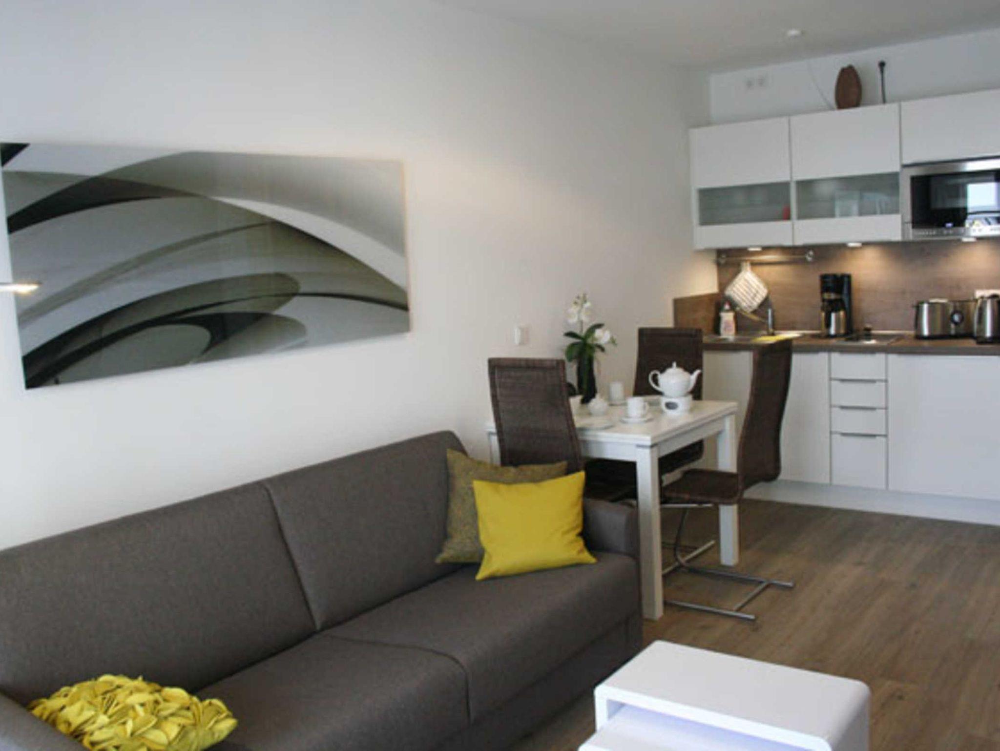 Die moderne Ferienwohnung Dünenzauber ist ca. 39 qm groß und liegt im ersten Obergeschoss der Residenz Haus im Haus Meeresblick.