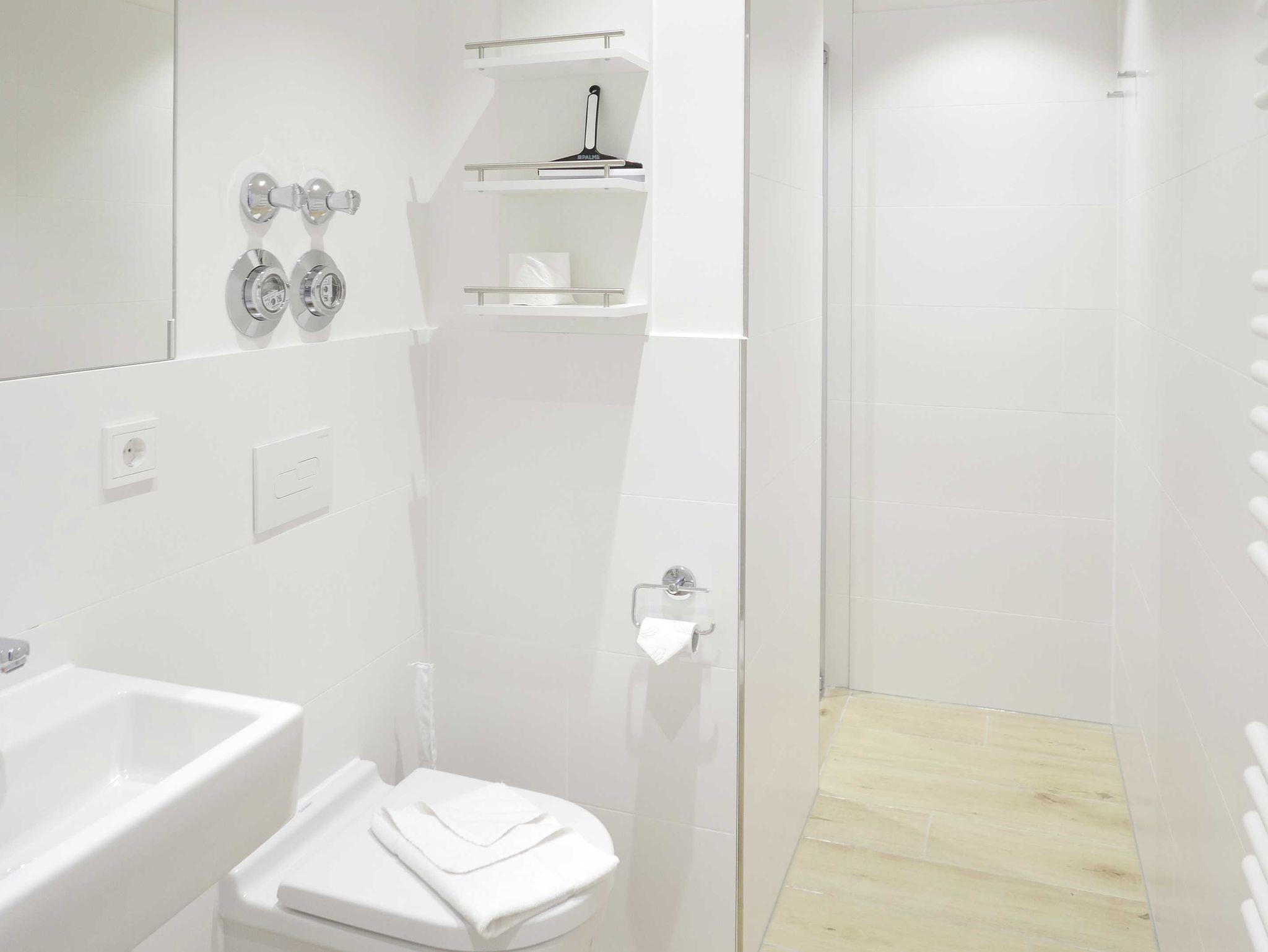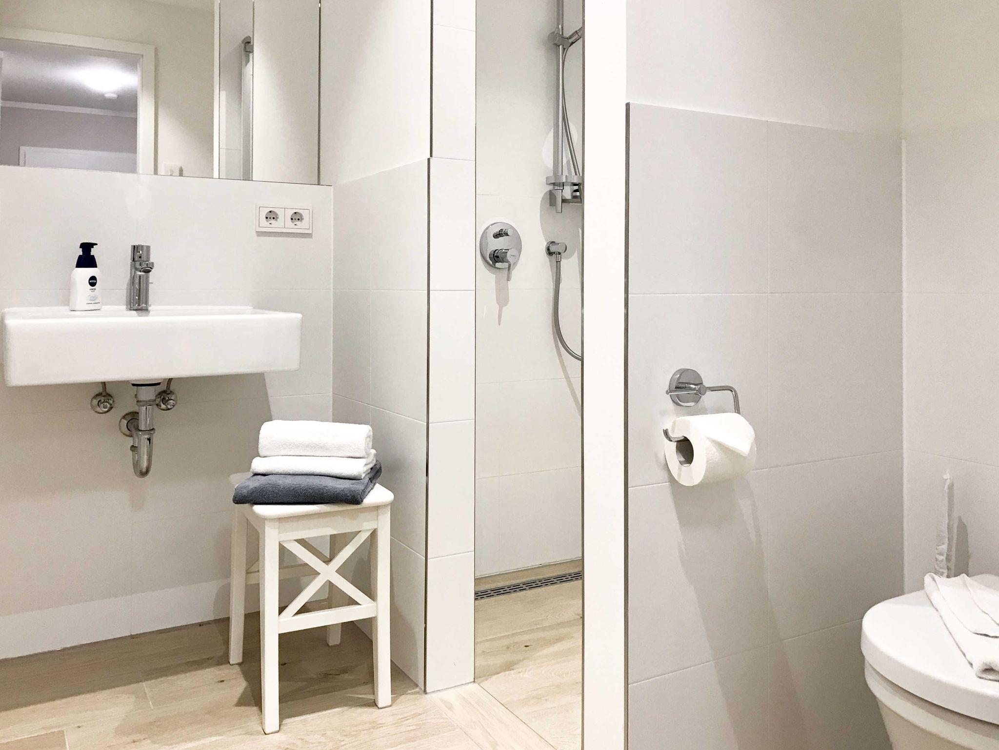 Die Wohnung ist sehr hochwertig eingerichtet und hat neben den 2 Schlafzimmern jeweils noch 2 Duschbadezimmer mit WC. In jedem der Schlafzimmer befindet sich zudem ein Fernseher. Die Ferienwohnung ist somit bestens für 2 Paare eingerichtet.
