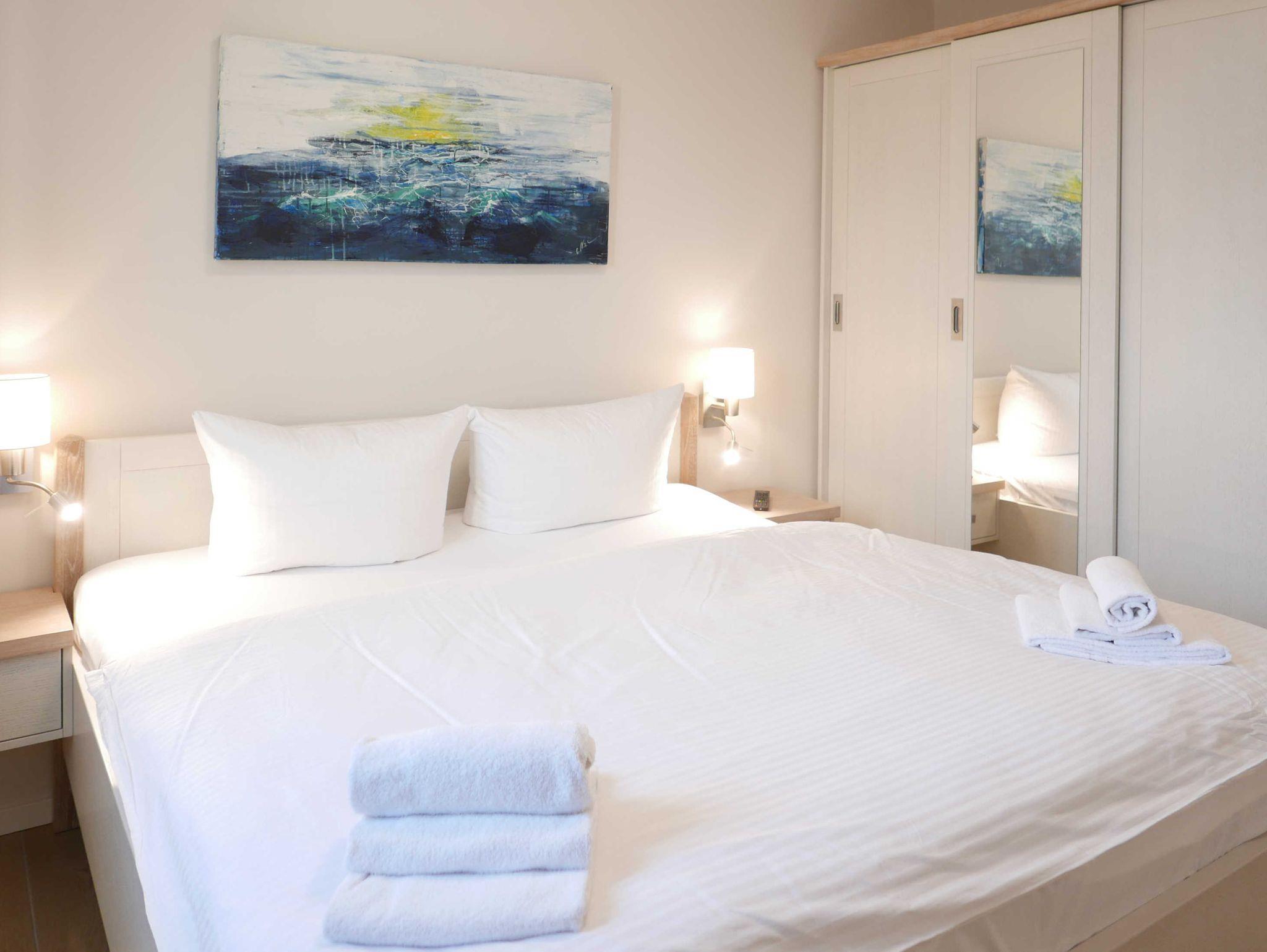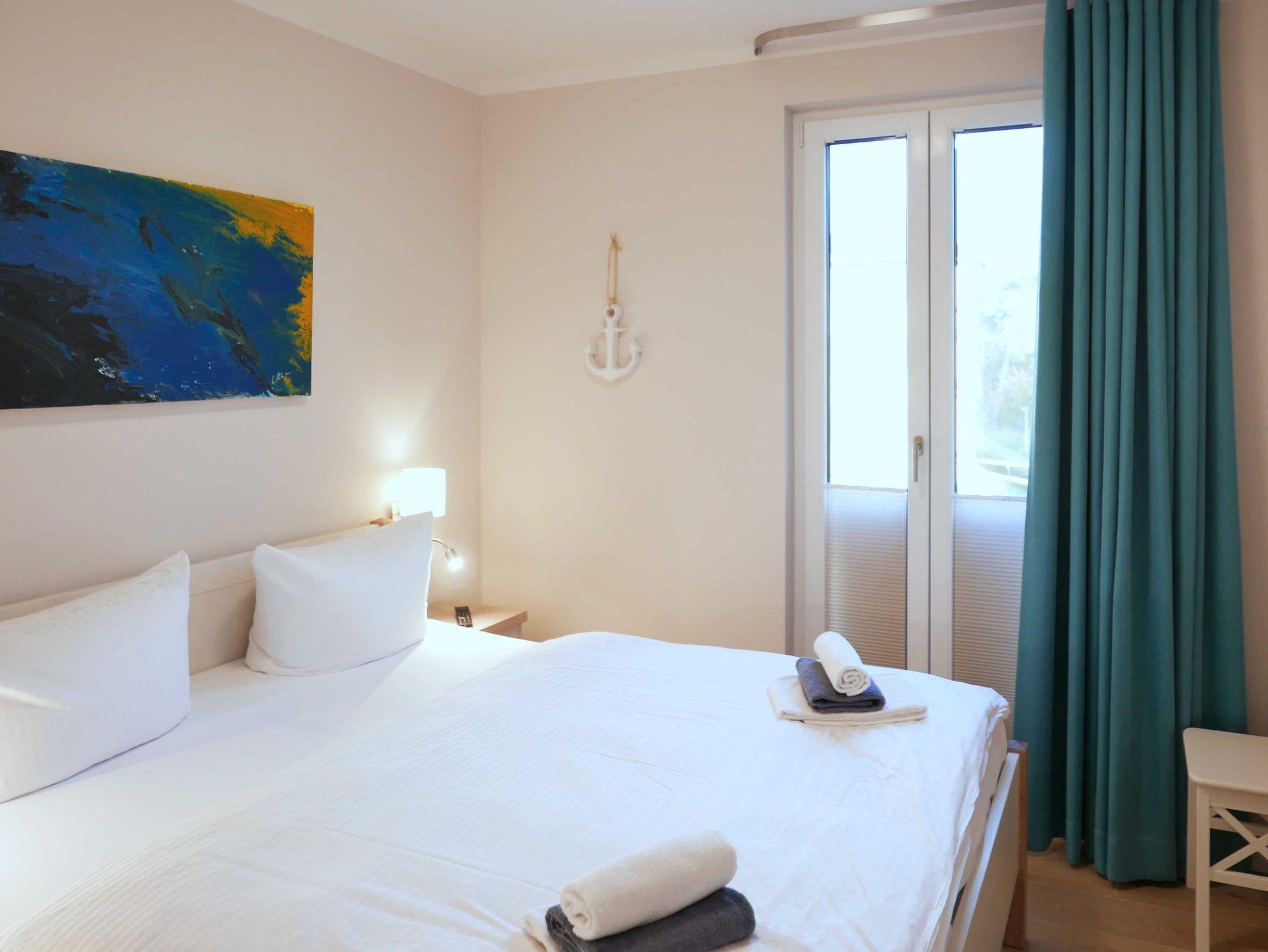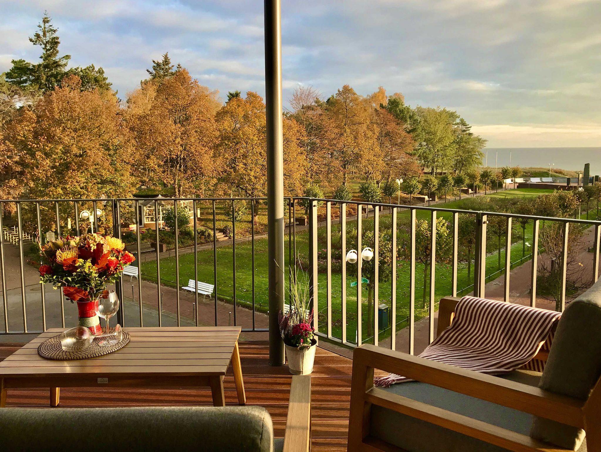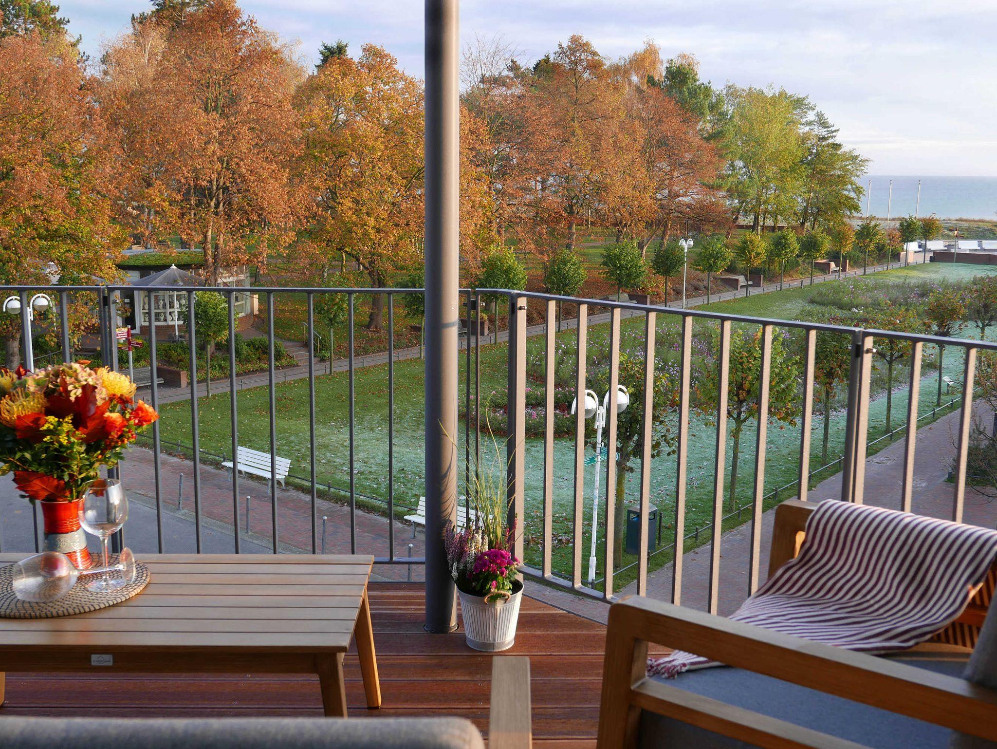 Großzügige 3-Zimmer-Ferienwohnung mit Balkon und Meerblick in dem 2019 neu eröffneten Villen-Ensemble.