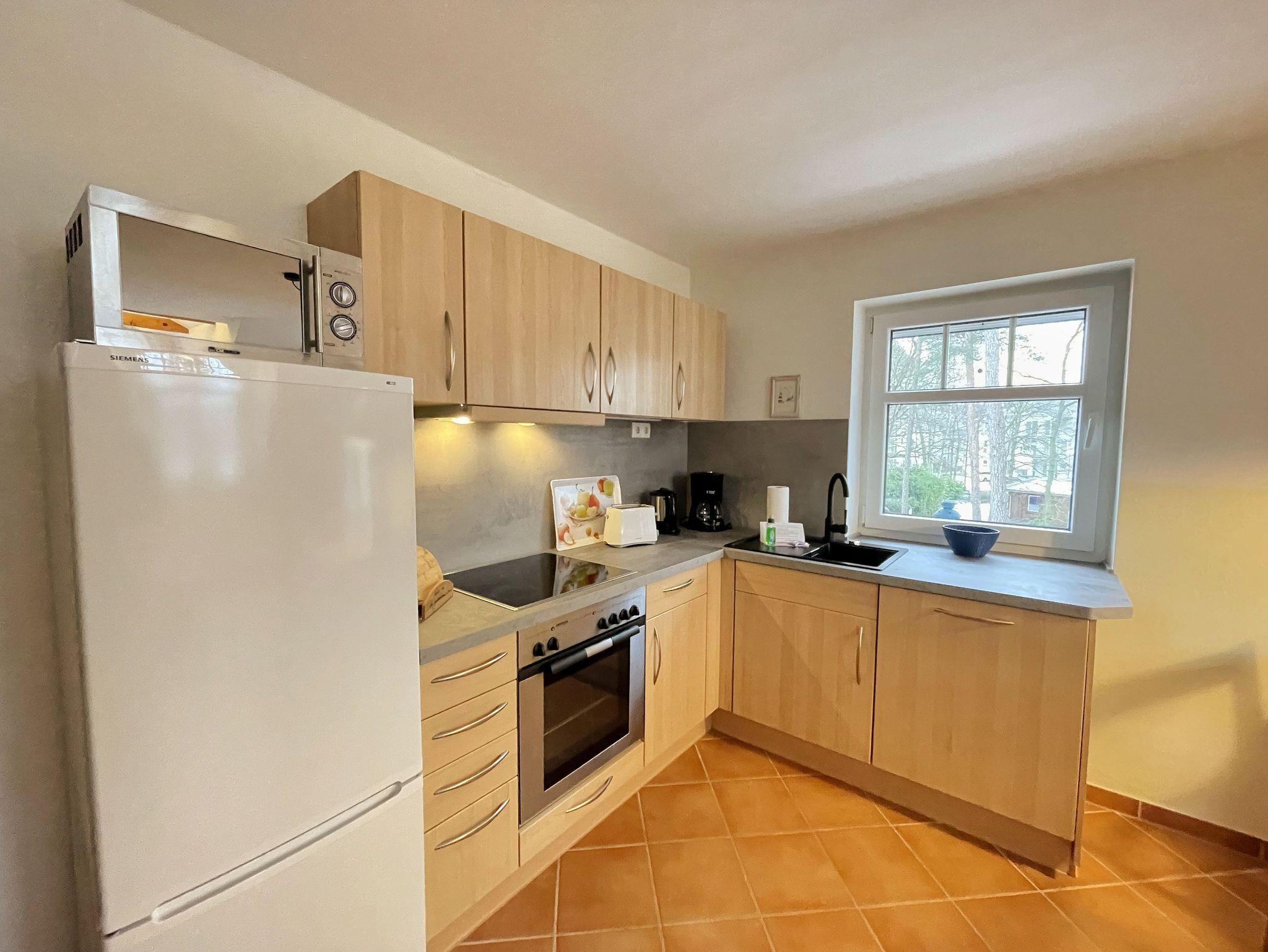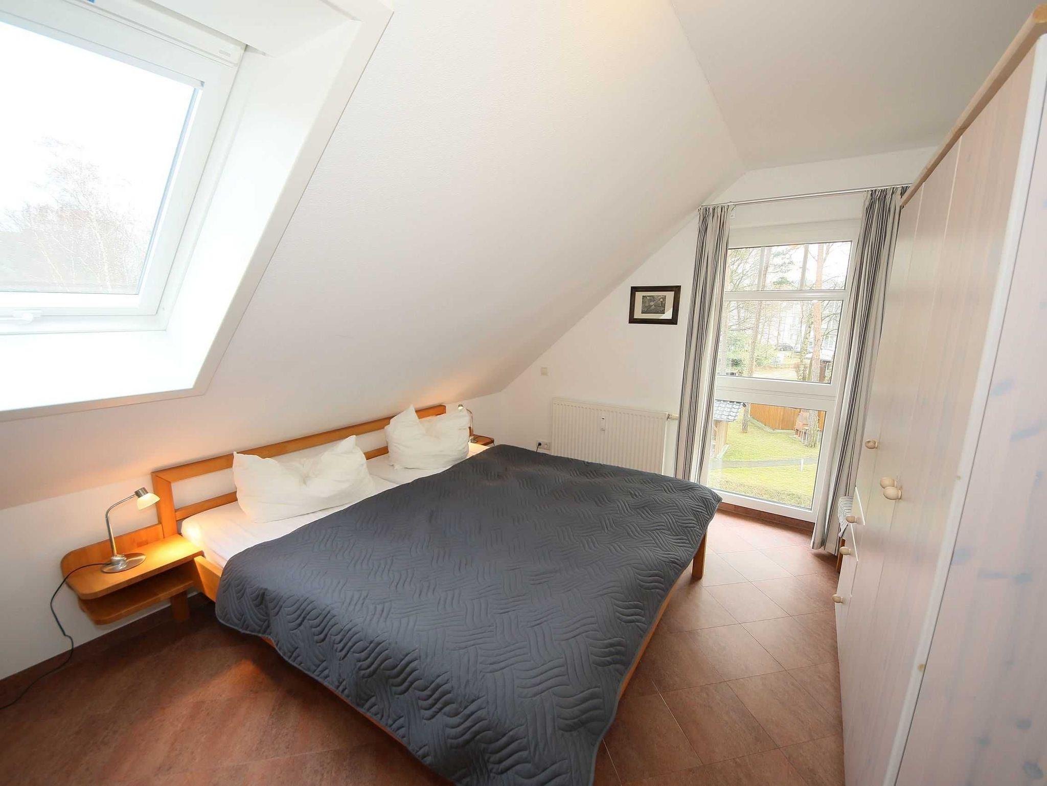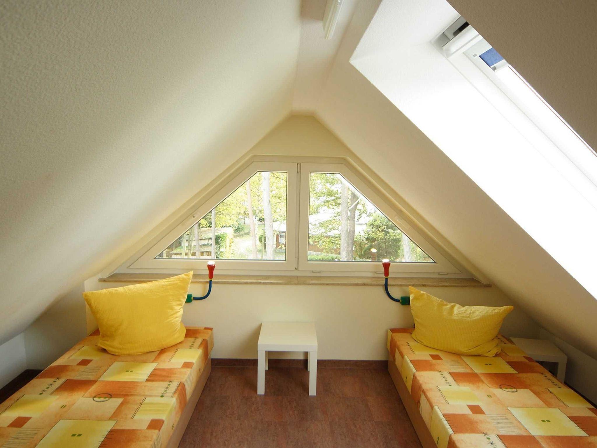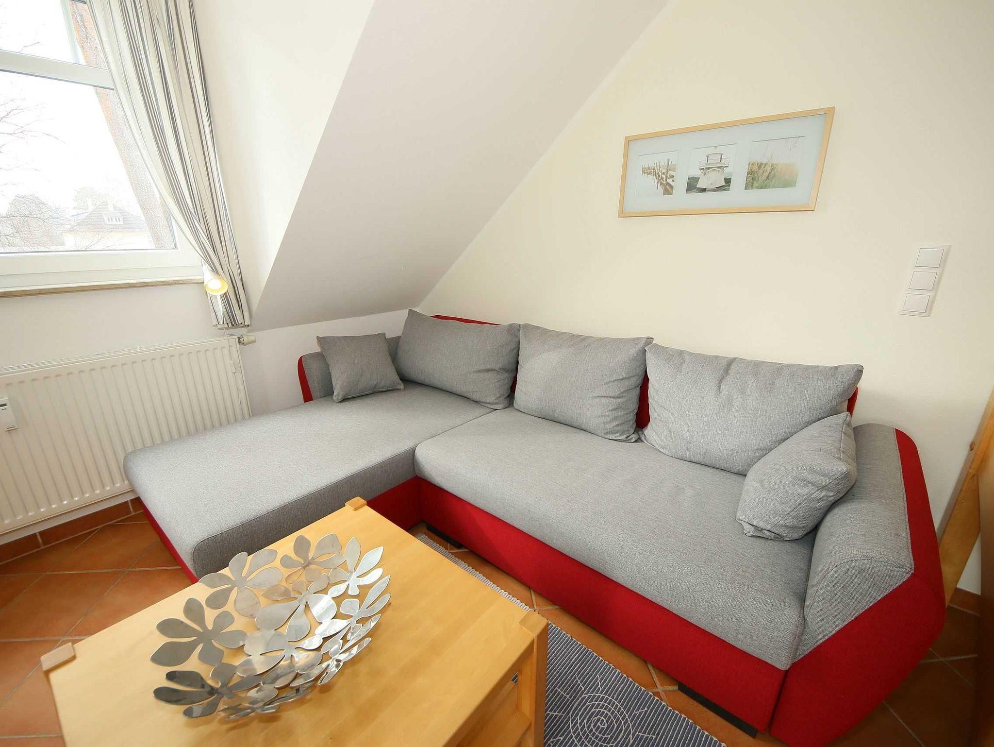 Die helle, freundliche 3-Raum-Maisonettewohnung (Nichtraucher) verläuft über 2 Etagen (mit Dachschrägen). Die Wohnung liegt im 2. Obergeschoss und hat einen großzügigen Wohnraum mit offener Küche, ein separates Schlafzimmer, einen mit einer bequemen Treppe erreichbaren, offenen Bodenraum (2. Schlafzimmer), das Bad sowie einen Abstellraum. Mit ihren ca. 60 m² bietet sie Platz für 2 bis max. 4 Erwachsene und 1 Kleinkind bis 3 Jahre im Kindereisebett. Die technische Ausstattung im Wohnraum lässt keine Wünsche offen: mit Smart-TV, DAB-Radio mit CD-Player sowie einer kostenfreien WLAN/LAN-Verbindung haben Sie alle modernen Informationsmedien an Bord. Eine gemütliche Couchecke mit Couchtisch und Leselampe komplettiert den Wohnraum. Der nach Südosten ausgerichtete, großzügige Balkon mit ca. 10 m² bietet Ihnen Blick auf den alten Baumbestand des Gartens und ist der ideale Platz für ein sonniges Frühstück. Hier kann Sie höchstens das Zwitschern der Vögel stören. Den bestuhlten Balkon erreichen Sie vom Wohnbereich. Das untere Schlafzimmer verfügt über ein Doppelbett mit 2 Einzelkaltschaummatratzen (2 x 0,90 m x 2,00 m), Nachtischablagen, Flachbild-TV und einem Kleiderschrank. Hier findet man auch Platz, um das Kinderreisebett aufzustellen. Im offenen Dachschlafzimmer finden Sie 2 zusammengestellte Einzelbetten (je 0,90 m x 2,00 m) mit Kaltschaummatratzen sowie eine Kommode. Die Betten in beiden Schlafzimmern sind aus Massivholz. Die Schlafräume verfügen über Verdunkelungsmöglichkeiten sowie Insektenschutz. Die solide eingerichtete Küchenzeile lässt mit Cerankochfeld, Backofen, Kühl- Gefrierkombi, Mikrowelle, Spülmaschine, Kaffeemaschine, Wasserkocher, Mixer und Toaster keine Wünsche offen. Damit steht dem Zubereiten von kulinarischen Genüssen nichts im Wege. Der Esstisch mit 4 Stühlen grenzt am Wohnbereich. Das geflieste und mit Fußbodenheizung versehende Badezimmer ist mit Dusche, WC, Waschplatz, Fön und einer Waschmaschine (Münzgerät: 30 min á 0,50 Euro) ausgestattet. Der Heizkörper ist als Handtuchtrockner ausgelegt. Im Abstellraum können Sie Ihre Koffer verstauen. Zusätzlich finden Sie hier auch Reinigungsutensilien, einen Wäscheständer sowie inklusive 1x Kinderreisebett (ohne zusätzliche Matratze und Bett Inlett) und 1x Hochstuhl. Wir haben viel Wert auf eine möglichst allergikerfreundliche Ausstattung gelegt. So haben wir keine textilen Bodenbeläge verwendet. Alle Anstriche sind mit hochwertigen Silikatfarben ausgeführt. Haustiere sind aus diesem Grund auch nicht erlaubt. Ein PKW-Stellplatz Nr. 09 befindet sich direkt am Objekt. Die Erstausstattung eines Wäschepaketes (komplette Bettwäsche, 1 Duschhandtuch, 1 kleines Handtuch) können Sie bis 14 Tage vor Anreise gegen einen Aufpreis dazu buchen oder durch eigene ergänzen. Ab 2 gebuchten Paketen erhalten Sie einmalig 1 Geschirrhandtuch und 1 Duschvorleger hinzu.