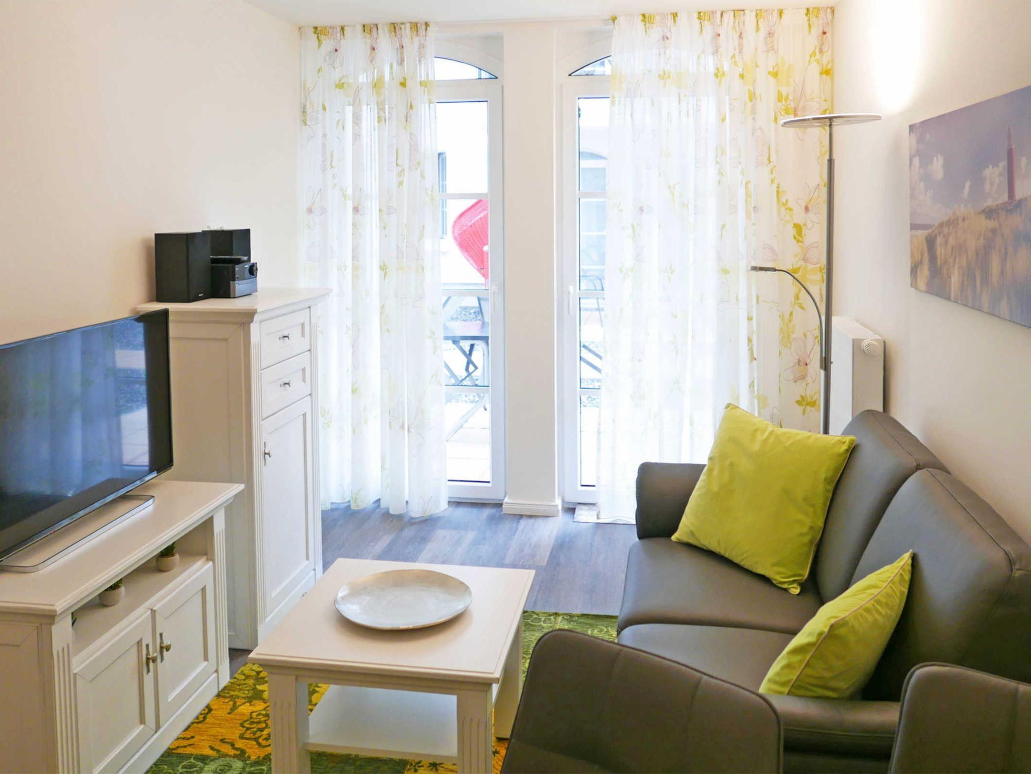 Die 2-Zimmer-Ferienwohnung für 2 Personen liegt im Erdgeschoß im Haus Meeresblick in direkter Strandnähe.