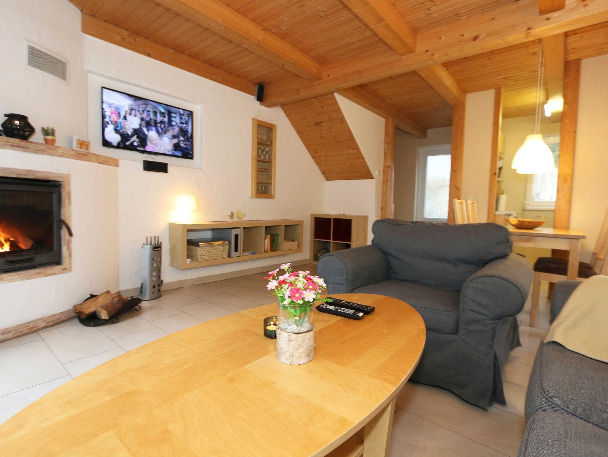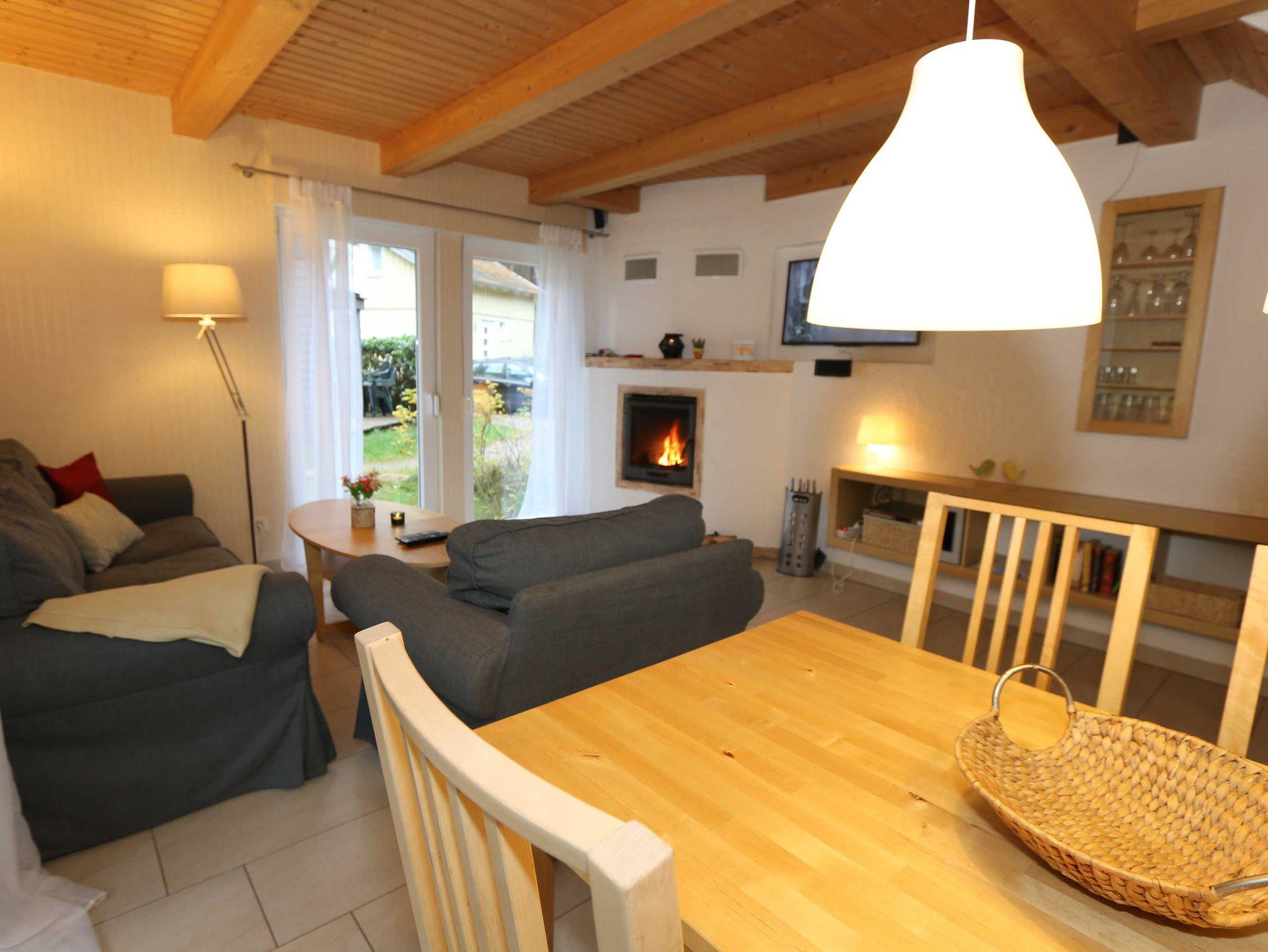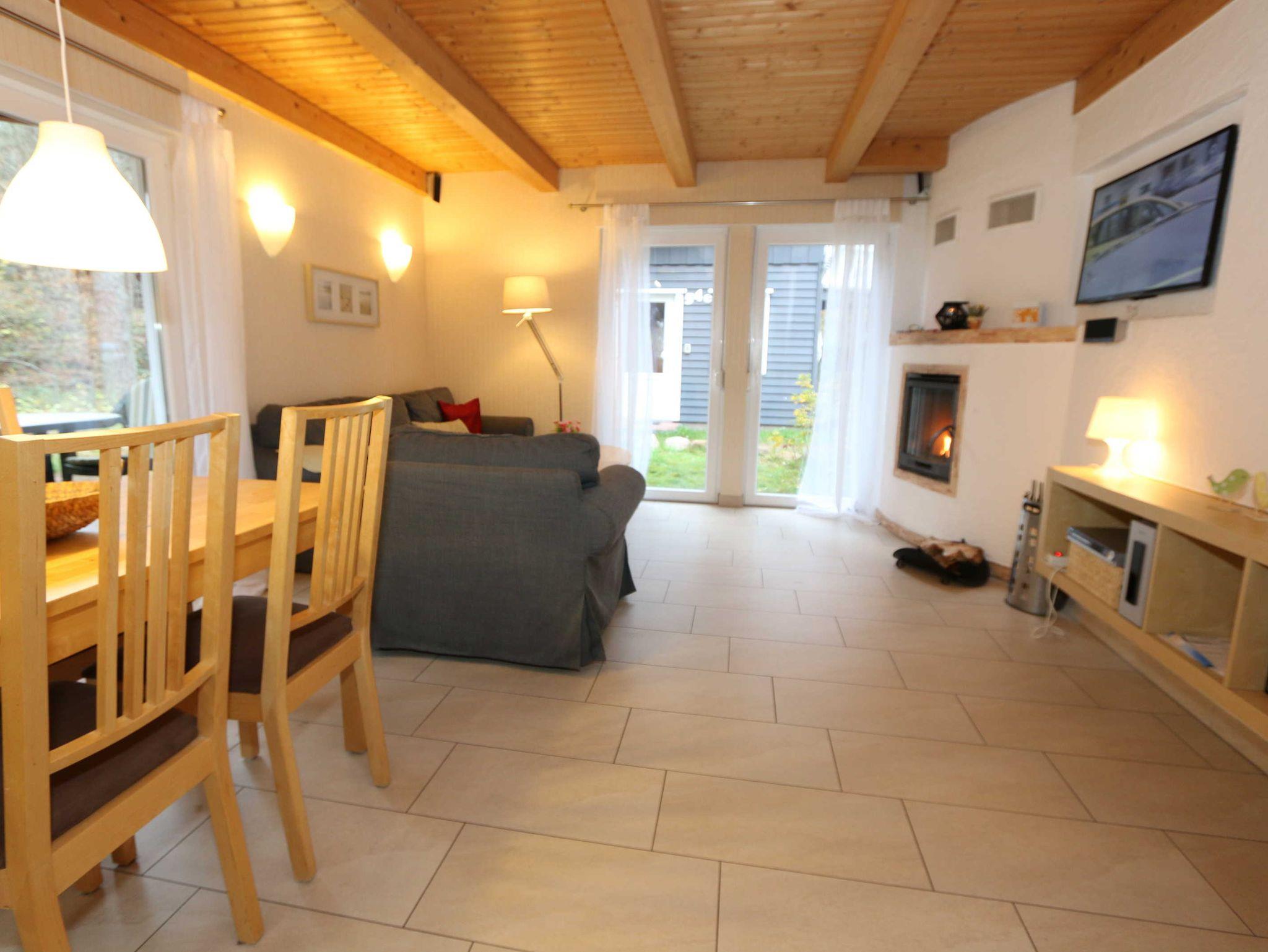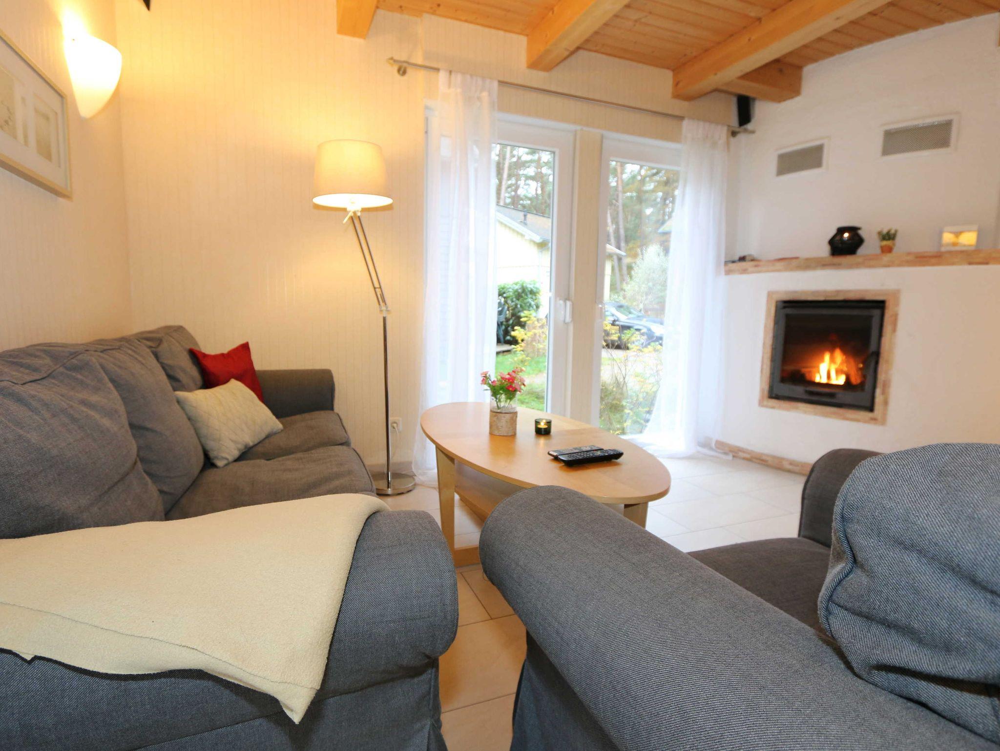 Die Doppelhaushälfte (Nichtraucher) mit Ihren 55 m² Wohnfläche bietet ausreichend Platz für 4 Erw. + 1 Kleinkind bis 3 Jahre im Kinderreisebett. Die bodentiefen Fenster im Wohn-/Essbereich lassen viel Tageslicht herein und geben Ihnen den direkten Zugang zur überdachten und bestuhlten Terrasse (Süd-Ost). Abgerundet wird diese durch einen Grill. Der gemütlich, im Schwedenstil, eingerichtete Wohnbereich ist mit einer Couchecke, Couchtisch, LCD-TV mit HD-Qualität und Satellitenempfang, DVD-Player mit Radio und ein Sideboard aus Naturholz ausgestattet. Für die kühleren Tage bieten Ihnen der Kamin (Kaminholz inklusive) sowie die Fußbodenheizung eine angenehme Wärme. Ihre Unterhaltungstechnik wird durch einen kostenfreien WLAN-Zugang abgerundet. Die angrenzende Küchenzeile mit Backofen, Ceranfeld, Dunstabzug, Kühlschrank + Eisfach, Spülmaschine, Mikrowelle, Kaffeemaschine, Toaster, Wasserkocher und kleinen Küchenhelfern lässt keine Wünsche offen. Ihre Mahlzeiten nehmen Sie am dazugehörigen Esstisch mit 4 Stühlen ein. Im Obergeschoss befinden sich beide Schlafzimmer die jeweils mit 2 Boxspringbetten (je mit 0,80 m x 2,00 m), Nachtischablagen, Safe und einem Kleiderschrank ausgestattet sind. Von beiden Schlafzimmern gelangen Sie auf den Balkon. Zusätzlich können Sie ein Kinderreisebett in eines der Schlafzimmer aufstellen. Das Tageslichtbad, was sich auf der gleichen Höhe befindet, wurde mit einer ebenerdigen Dusche, WC, Waschplatz, Handtuchtrockner und Fön ausgestattet. Für unsere kleinen Gäste steht Ihnen 1x Kinderhochstuhl und 1x Kinderreisebett (inkl. Matratze, ohne Bett Inlett) inklusive zur Verfügung. 2 kleine Haustiere sind gegen eine Gebühr gern gesehene Gäste. Eine kleine Waschküche steht Ihnen inklusive zur Verfügung. Die Erstausstattung eines Wäschepaketes (komplette Bettwäsche, 1 Duschhandtuch, 2 kleine Handtücher) können Sie bis 14 Tage vor Anreise gegen einen Aufpreis dazu buchen oder durch eigene ergänzen. Ab 2 gebuchten Paketen erhalten Sie einmalig 1 Geschirrhandtuch und 1 Duschvorleger hinzu.