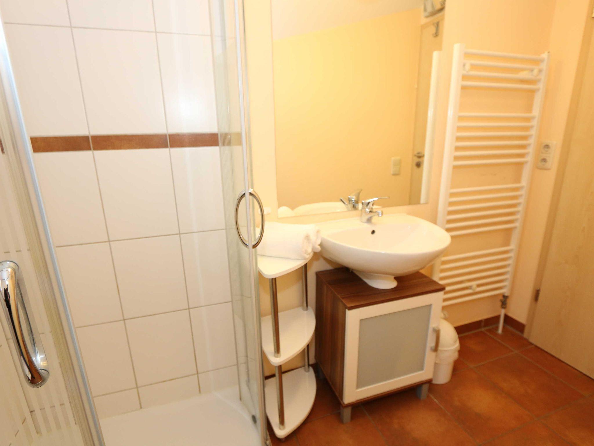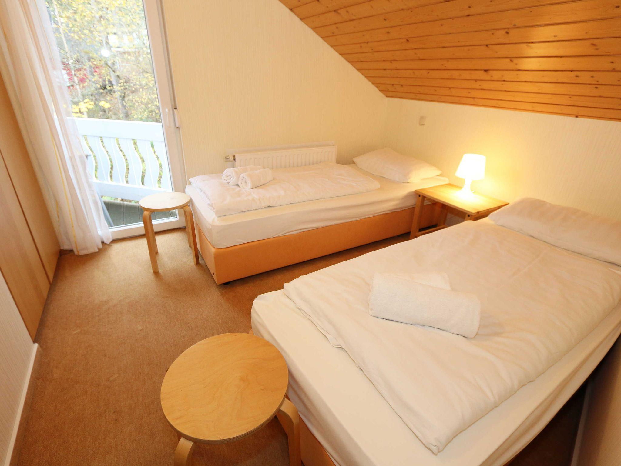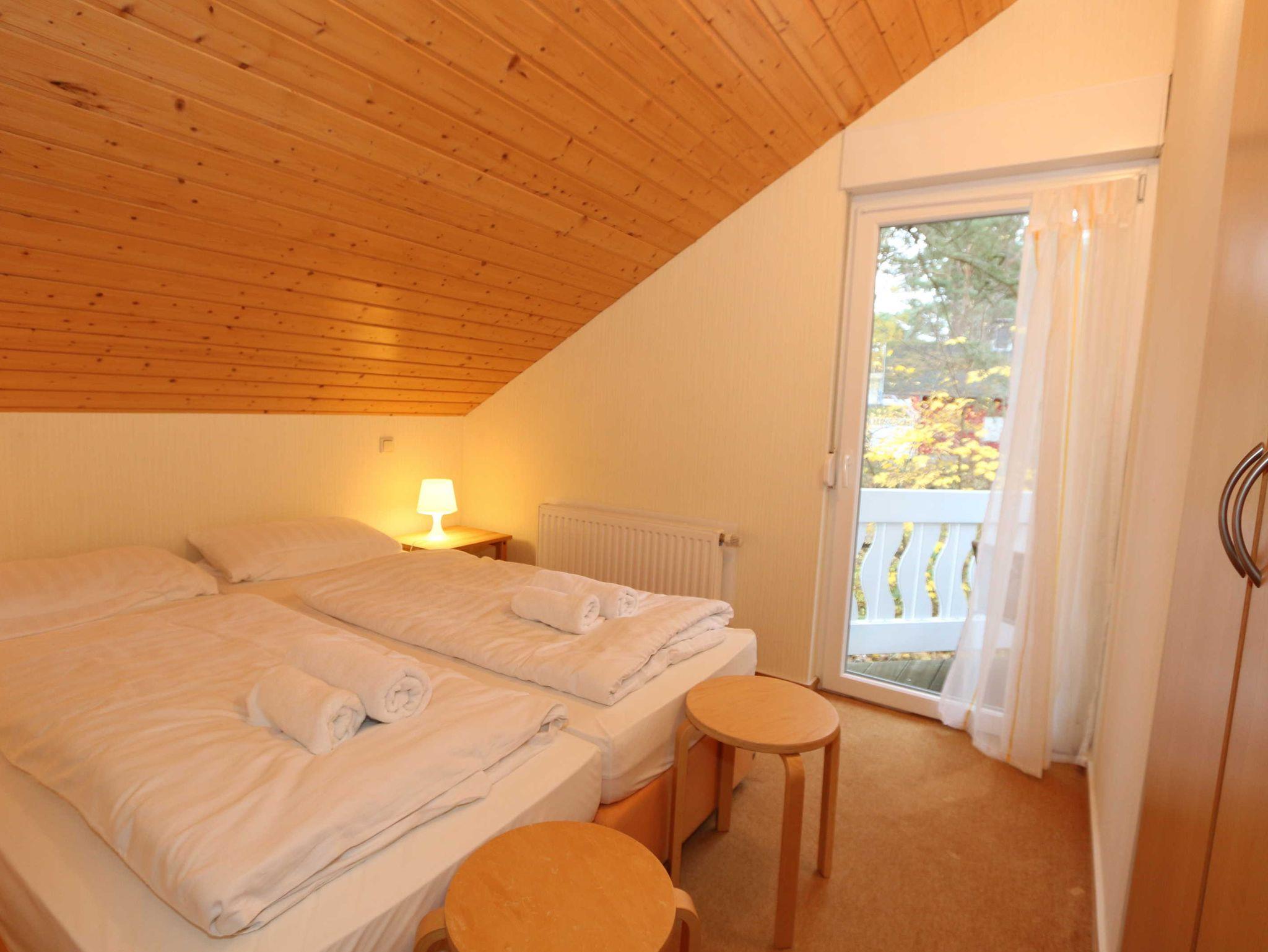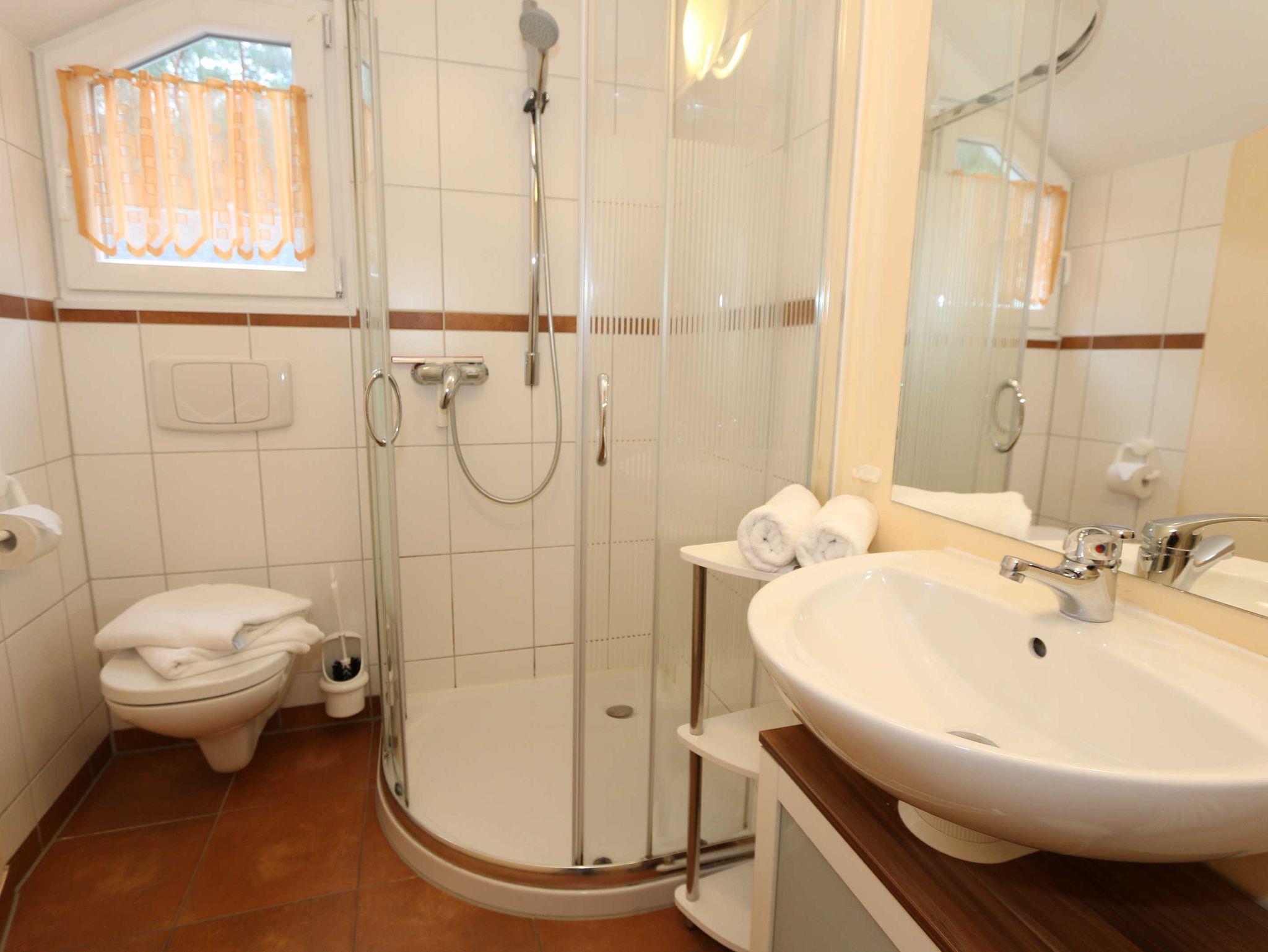 Die Doppelhaushälfte (Nichtraucher) mit Ihren 55 m² Wohnfläche bietet ausreichend Platz für 4 Erw. + 1 Kleinkind bis 3 Jahre im Kinderreisebett. Die bodentiefen Fenster im Wohn-/Essbereich lassen viel Tageslicht herein und geben Ihnen den direkten Zugang zur überdachten und bestuhlten Terrasse (Süd-Ost). Abgerundet wird diese durch einen Grill. Der gemütlich, im Schwedenstil, eingerichtete Wohnbereich ist mit einer Couchecke, Couchtisch, LCD-TV mit HD-Qualität und Satellitenempfang, DVD-Player mit Radio und ein Sideboard aus Naturholz ausgestattet. Für die kühleren Tage bieten Ihnen der Kamin (Kaminholz inklusive) sowie die Fußbodenheizung eine angenehme Wärme. Ihre Unterhaltungstechnik wird durch einen kostenfreien WLAN-Zugang abgerundet. Die angrenzende Küchenzeile mit Backofen, Ceranfeld, Dunstabzug, Kühlschrank + Eisfach, Spülmaschine, Mikrowelle, Kaffeemaschine, Toaster, Wasserkocher und kleinen Küchenhelfern lässt keine Wünsche offen. Ihre Mahlzeiten nehmen Sie am dazugehörigen Esstisch mit 4 Stühlen ein. Im Obergeschoss befinden sich beide Schlafzimmer die jeweils mit 2 Boxspringbetten (je mit 0,80 m x 2,00 m), Nachtischablagen, Safe und einem Kleiderschrank ausgestattet sind. Von beiden Schlafzimmern gelangen Sie auf den Balkon. Zusätzlich können Sie ein Kinderreisebett in eines der Schlafzimmer aufstellen. Das Tageslichtbad, was sich auf der gleichen Höhe befindet, wurde mit einer ebenerdigen Dusche, WC, Waschplatz, Handtuchtrockner und Fön ausgestattet. Für unsere kleinen Gäste steht Ihnen 1x Kinderhochstuhl und 1x Kinderreisebett (inkl. Matratze, ohne Bett Inlett) inklusive zur Verfügung. 2 kleine Haustiere sind gegen eine Gebühr gern gesehene Gäste. Eine kleine Waschküche steht Ihnen inklusive zur Verfügung. Die Erstausstattung eines Wäschepaketes (komplette Bettwäsche, 1 Duschhandtuch, 2 kleine Handtücher) können Sie bis 14 Tage vor Anreise gegen einen Aufpreis dazu buchen oder durch eigene ergänzen. Ab 2 gebuchten Paketen erhalten Sie einmalig 1 Geschirrhandtuch und 1 Duschvorleger hinzu.