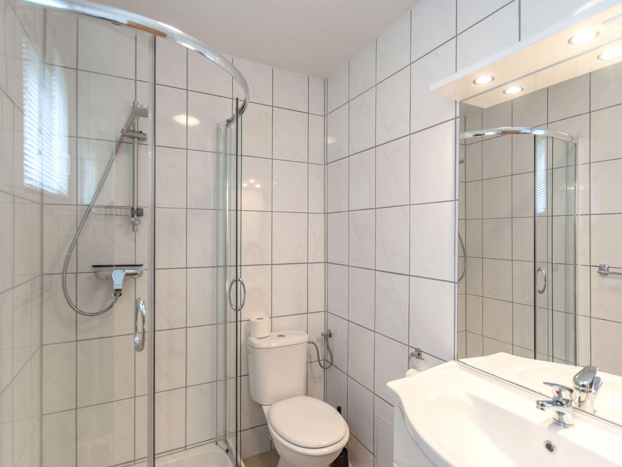 Alle Räume verfügen über Außenjalousien, die zusätzlich die Privatsphäre unterstützen. Auf der sonnigen Terrasse, die man über den Wohnbereich erreicht, stehen Gartenmöbel und ein Holzkohlegrill bereit.