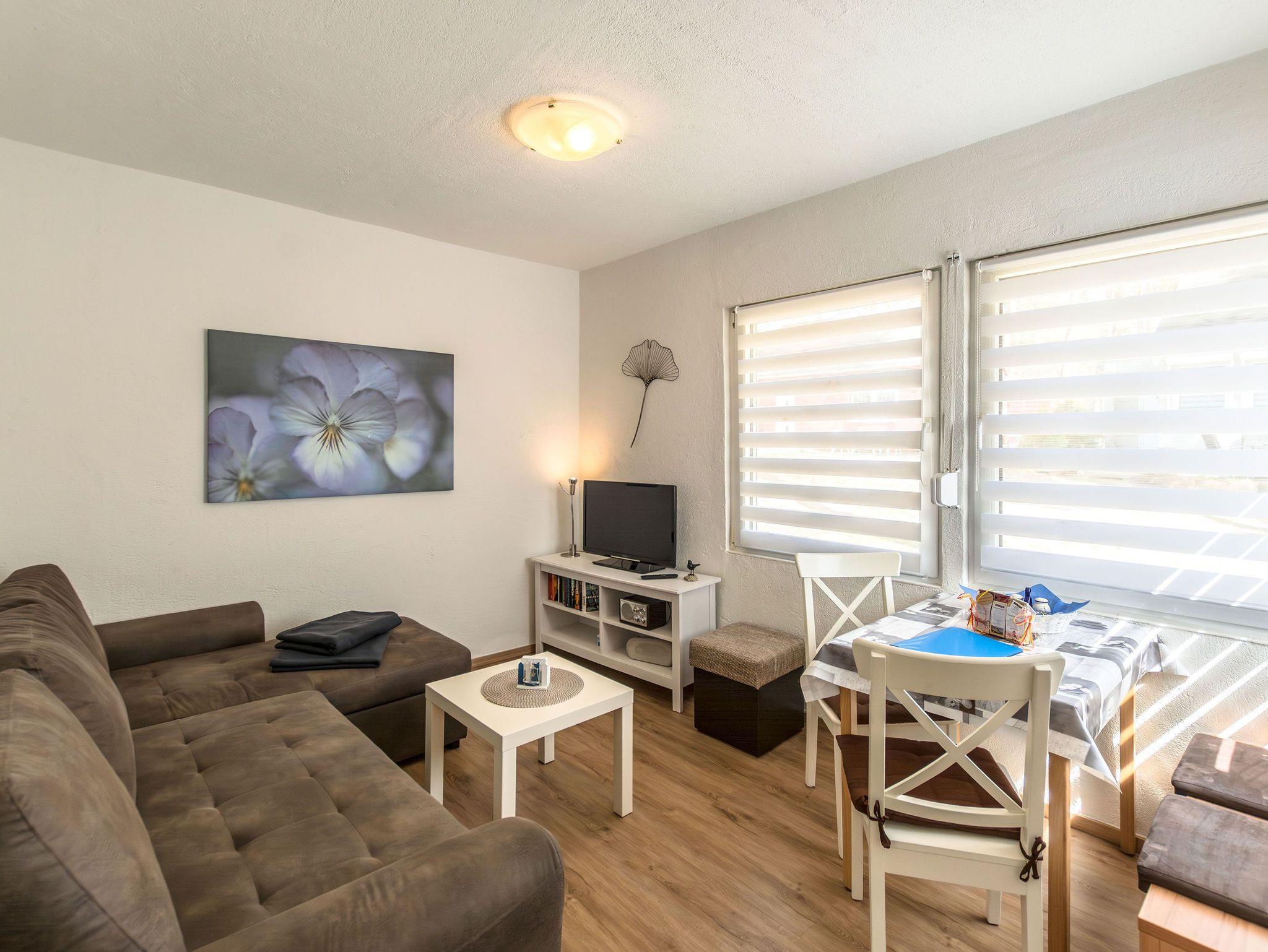 Der gemütliche Wohnbereich überzeugt mit einer Couchgarnitur, einem Fernseher und einem Radio. Zudem können hier 2 weitere Personen auf dem Schlafsofa die Nächte verbringen.