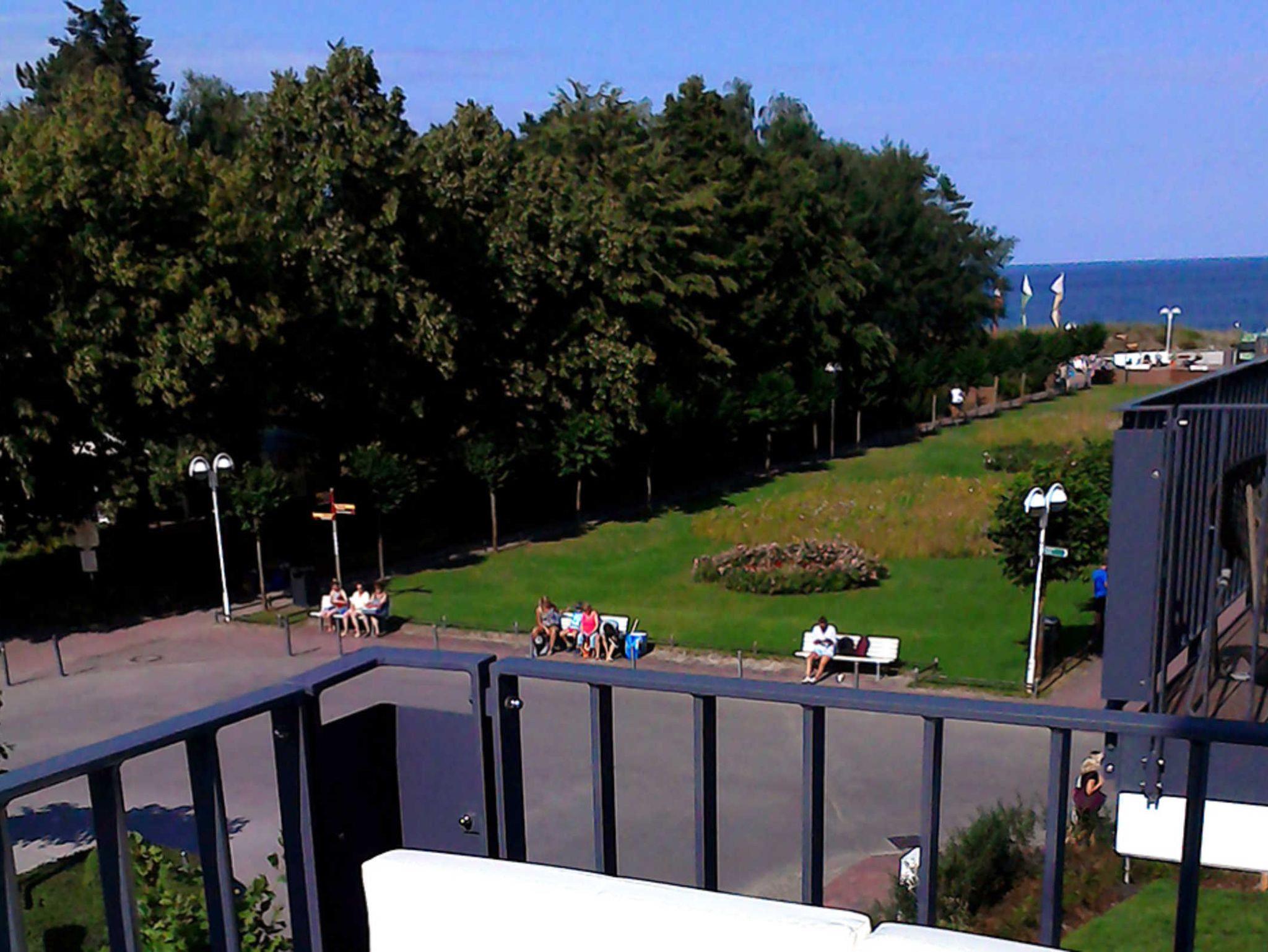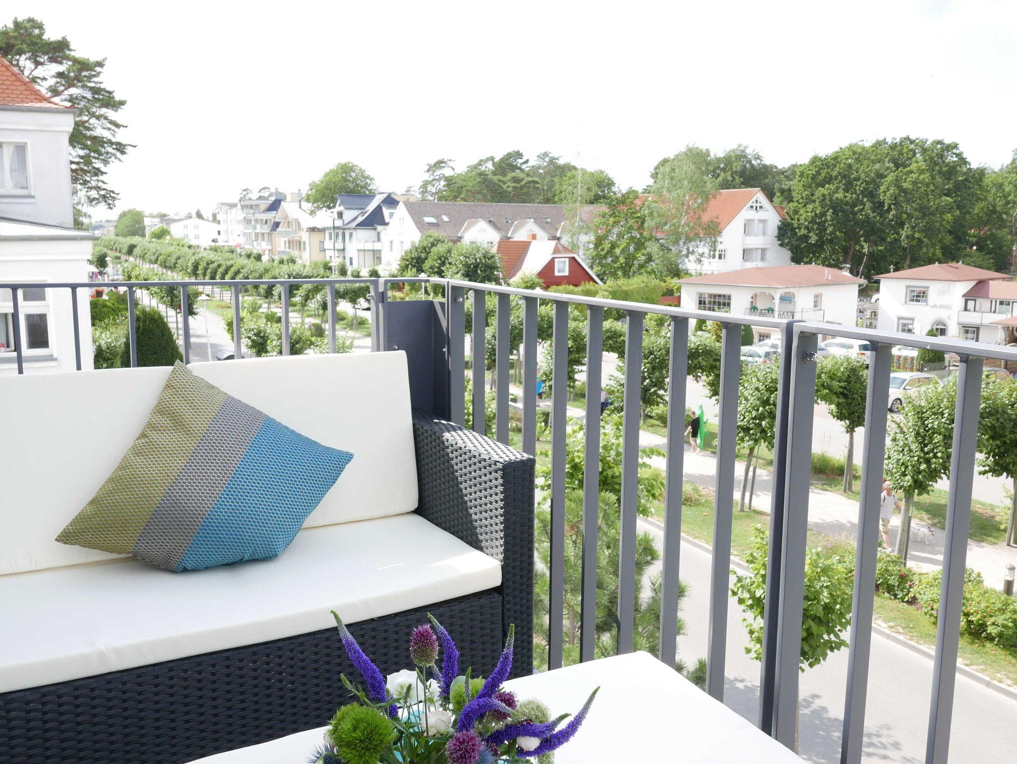 Näher zum Meer kann man in Baabe kaum wohnen. Direkt an der Promenade und gegenüber dem Kurpark, das Meer vis a vis liegt die 2 Zimmer-Ferienwohnung Baltic Pearl für 2 Personen mit Meerblick vom Balkon.