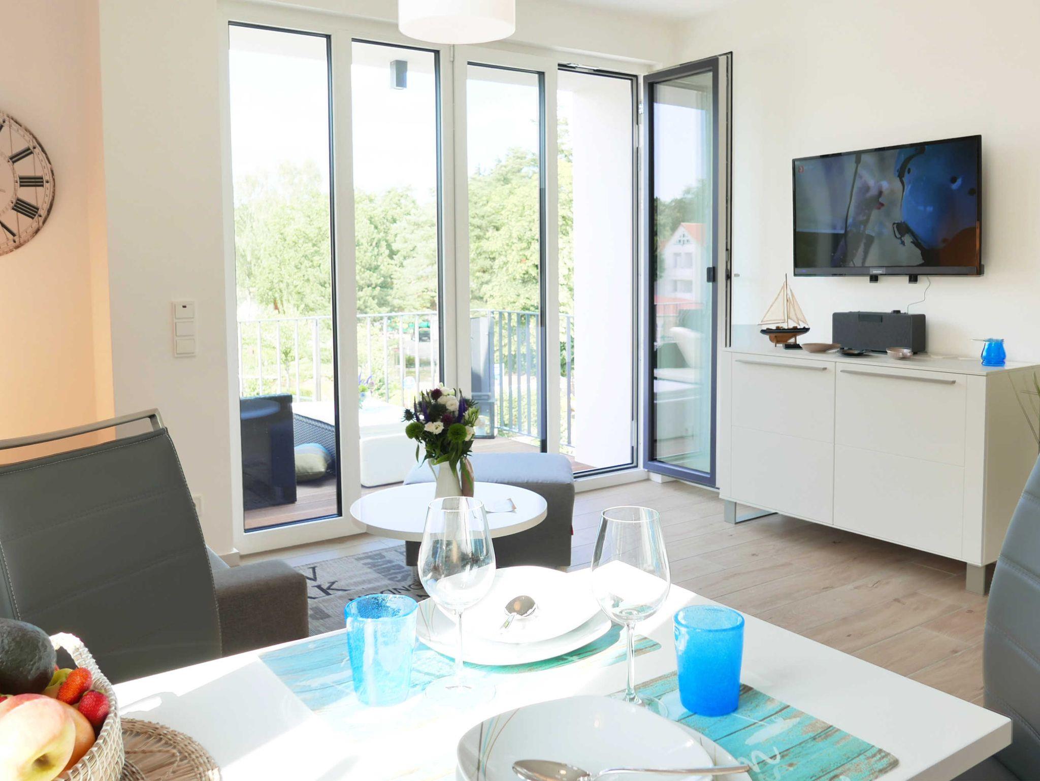 Exklusiv eingerichtete 2 Zimmer Ferienwohnung mit Premium-Ausstattung und schönem Meerblick in der 2. Etage des Haus Düne im 2019 eröffneten Villen-Ensemble Baabe.