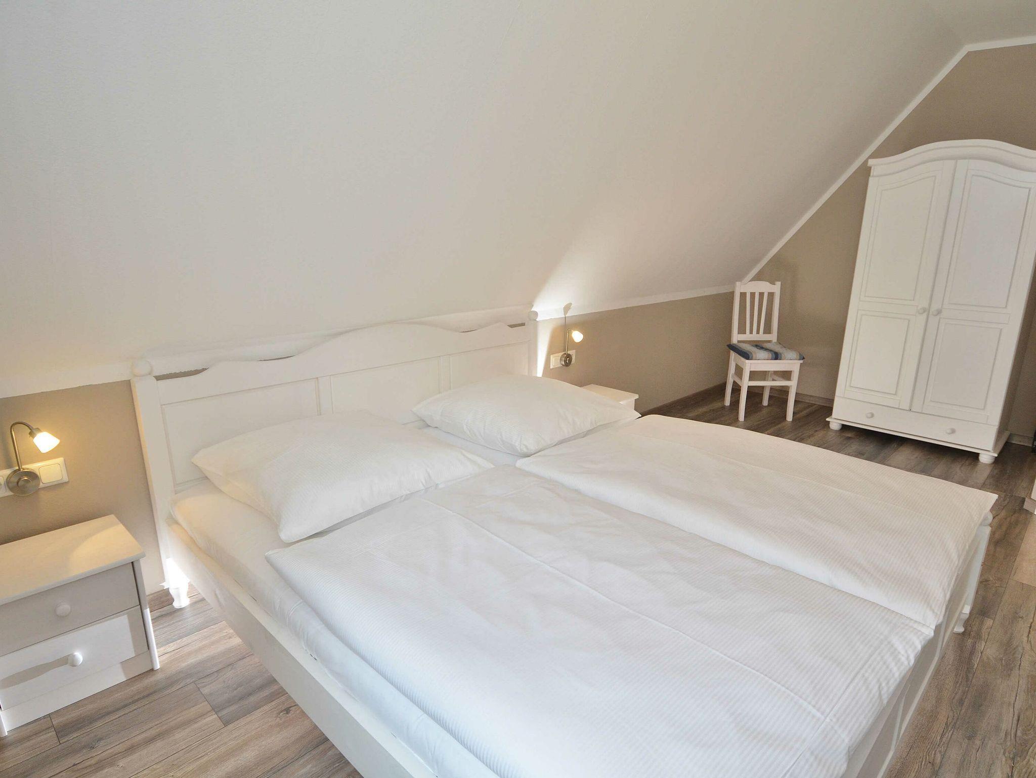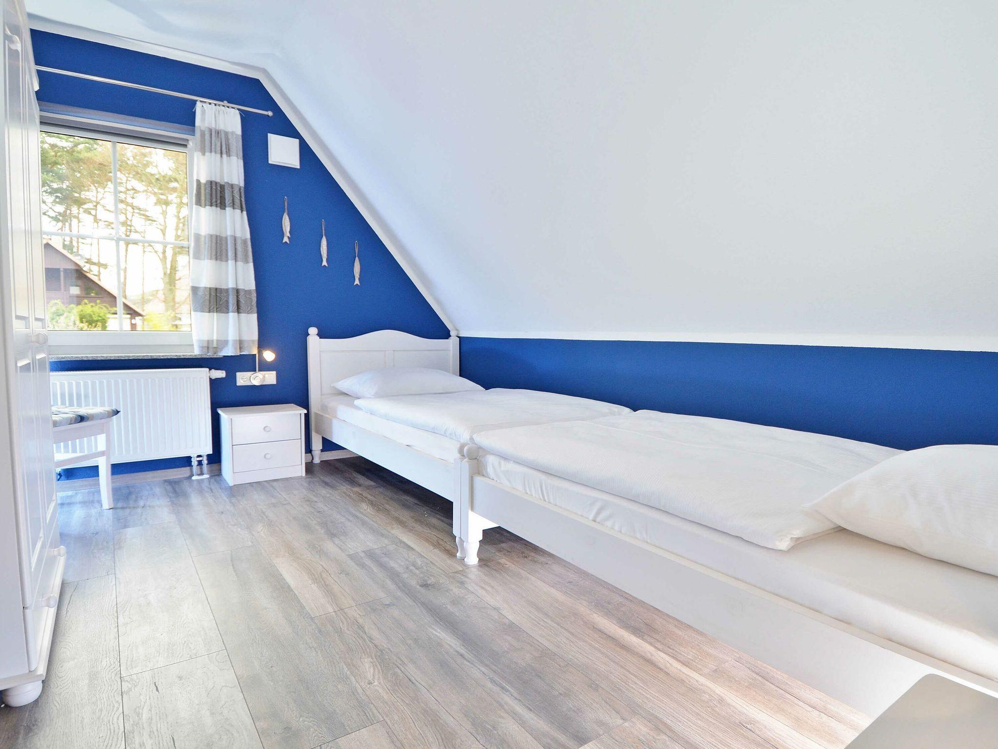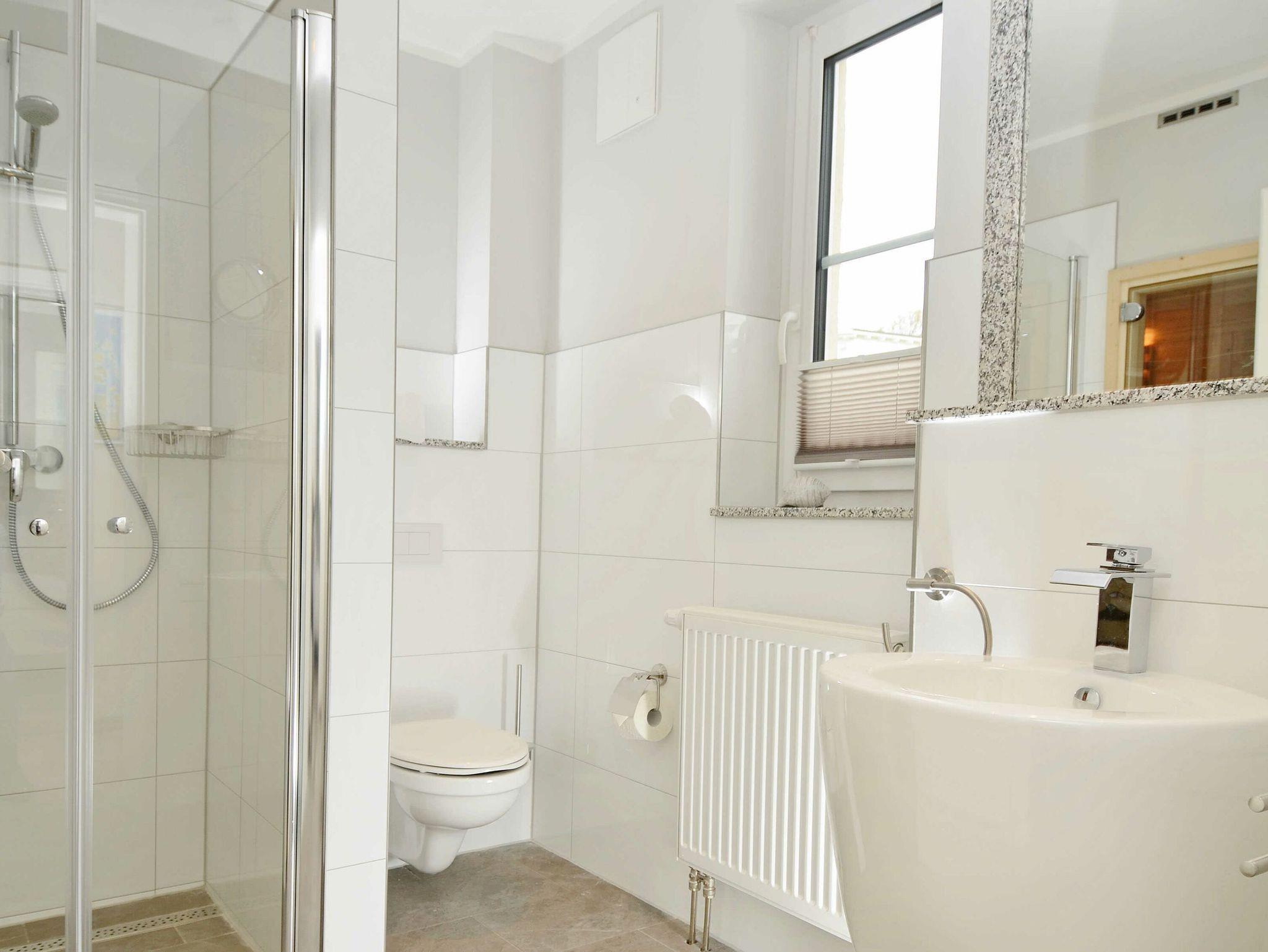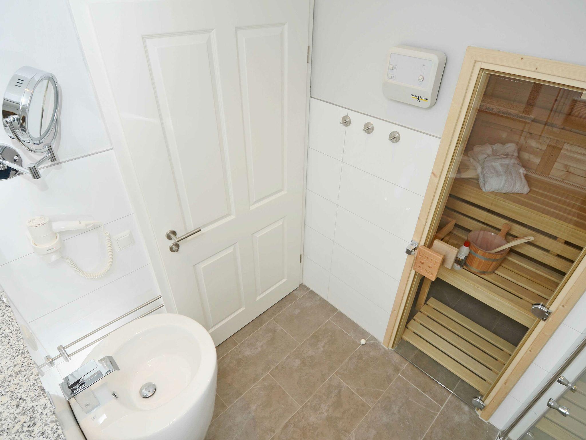 Eines der vier Schlafzimmer befindet sich im Erdgeschoss und ist mit einem Einzelbett ausgestattet, welches auch für Gäste mit Handicap (z. B. Rollstuhlfahrer) geeignet ist. Ein modernes Duschbad mit eigener Sauna und Fußbodenheizung befindet sich ebenfalls im Erdgeschoss.