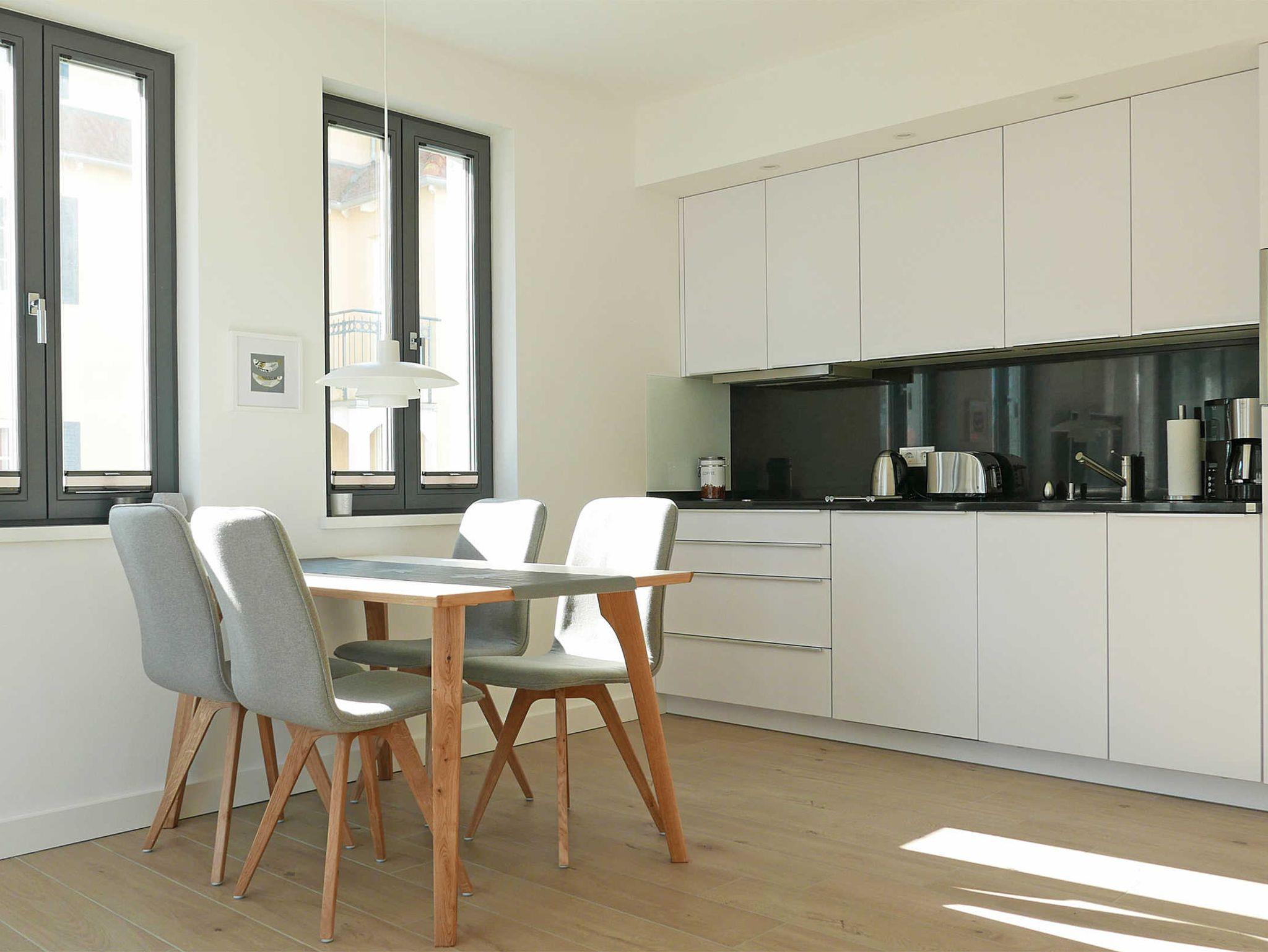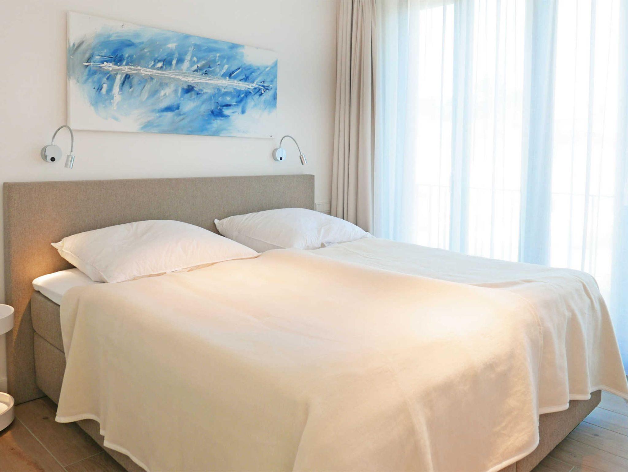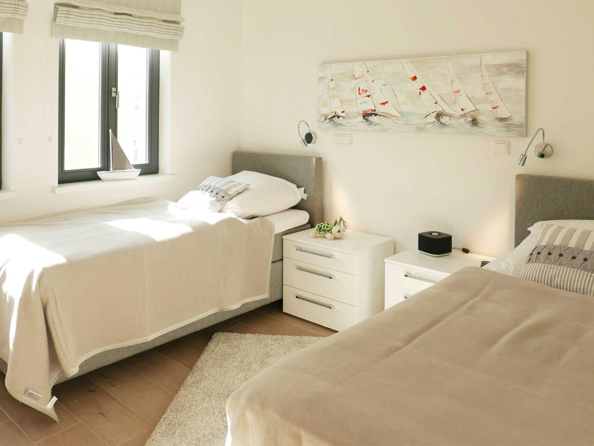 Die moderne sehr hochwwertige Ferienwohnung liegt in der ersten Etage und ist mit einem Lift gut aus der Tiefgarage zu erreichen. Sie wohnen ruhig und dennoch zentral und fast direkt am Wasser. Es gibt 2 sehr schöne Schlafzimmer, eines mit Doppelbett und eines mit 2 Einzelbetten, sowie 2 Duschbäder. In jedem Schlafzimmer gibt es zudem einen Fernseher.