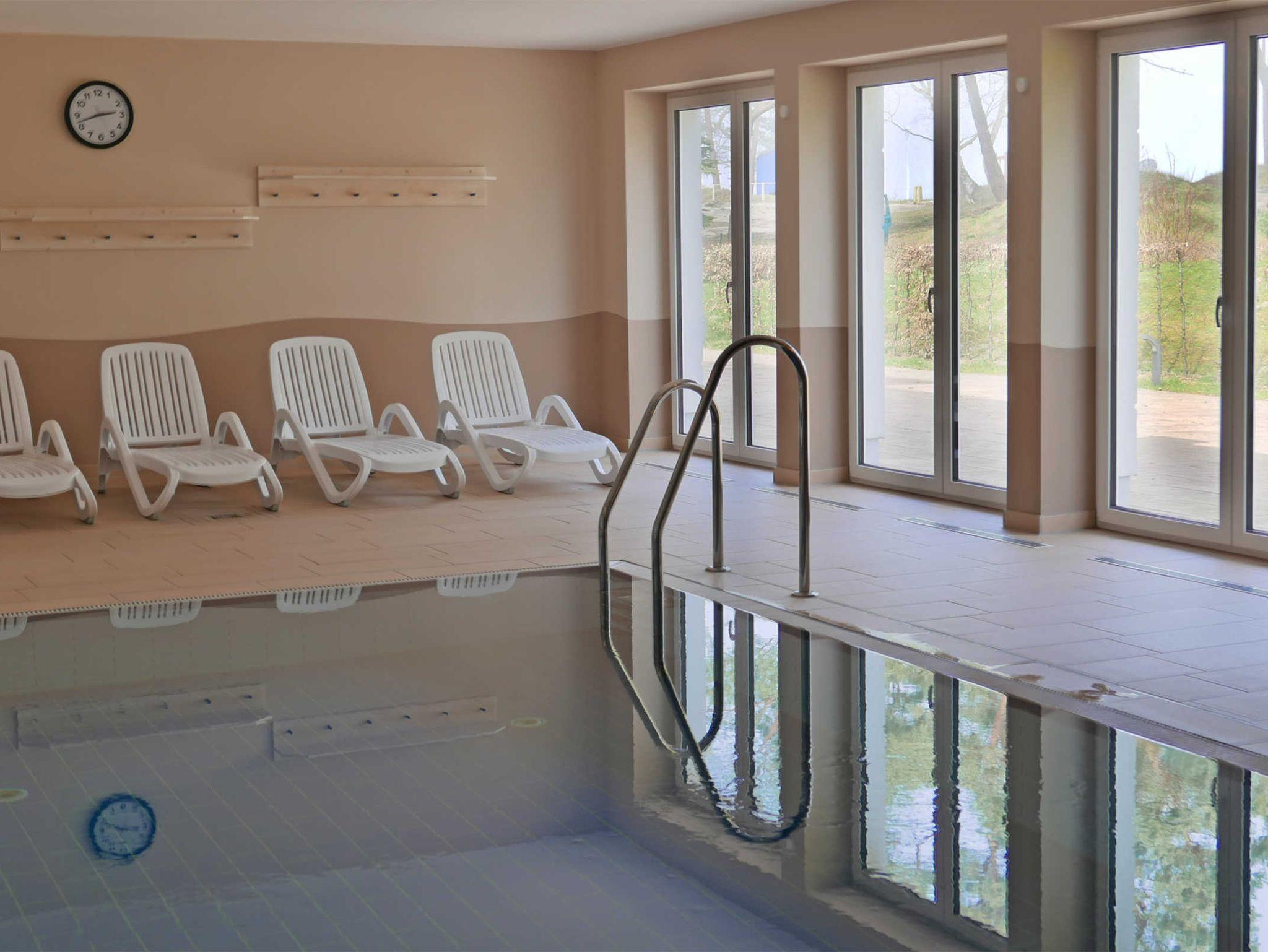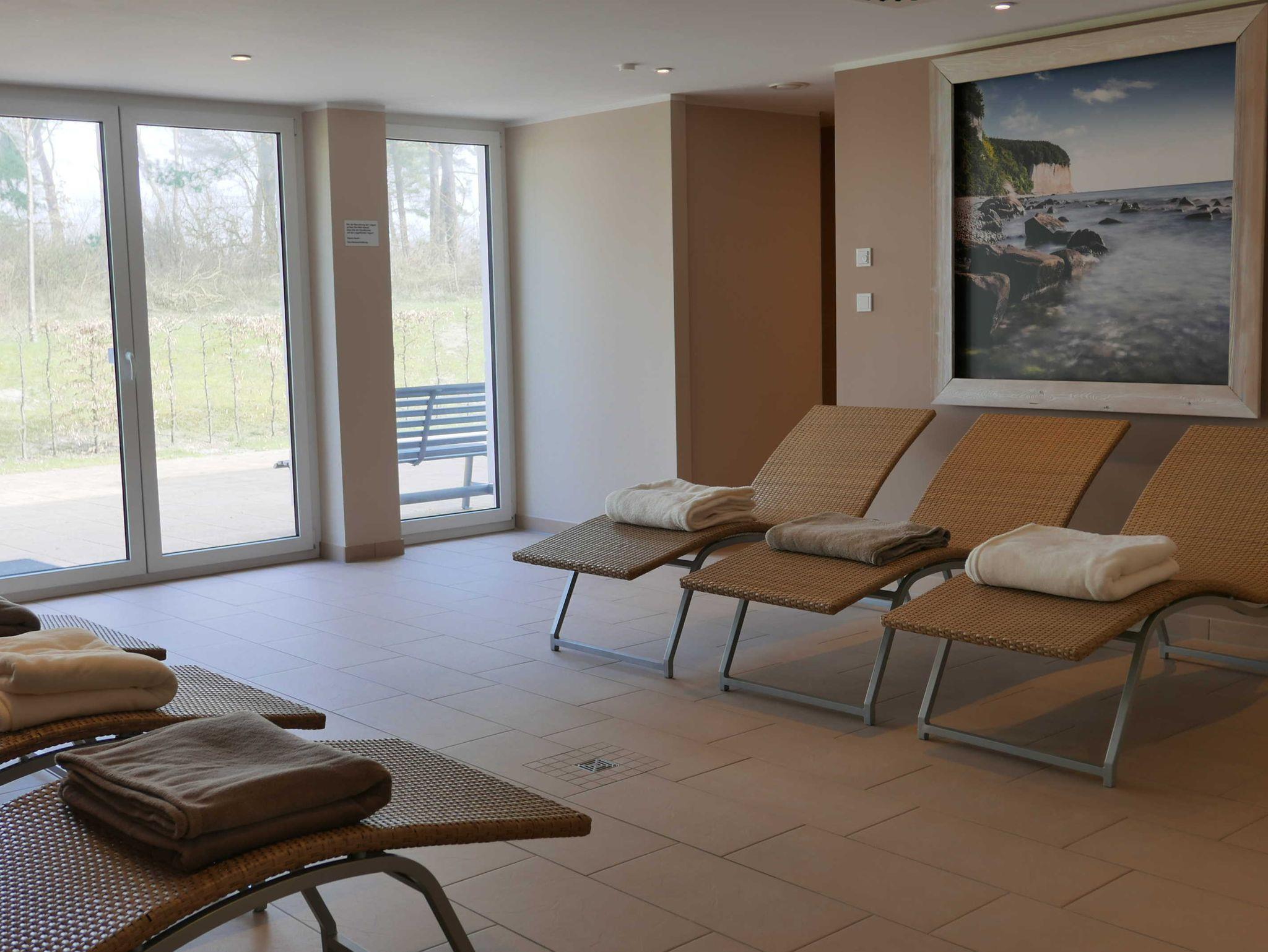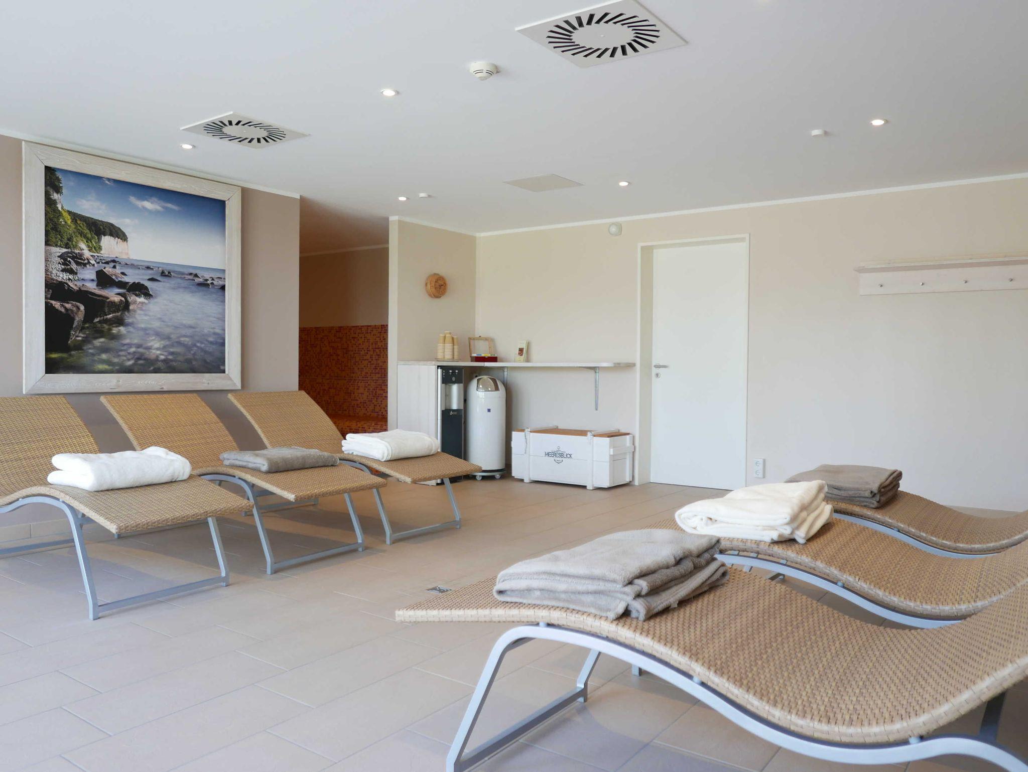 Das Haus Meeresblick ist mit einem Lift, einer Tiefgarage und einem großen Wellnessbereich mit Schwimmbad (ca. 8,00 m x 4,00 m - 1,35 m tief), zwei Saunen (eine finnische Sauna/eine Bio-Sauna) und einem Massagebereich ausgestattet. Der Wellnessbereich ist ganzjährig geöffnet. Im Souterrain befindet sich ein Waschmaschinenraum gegen Gebühr.