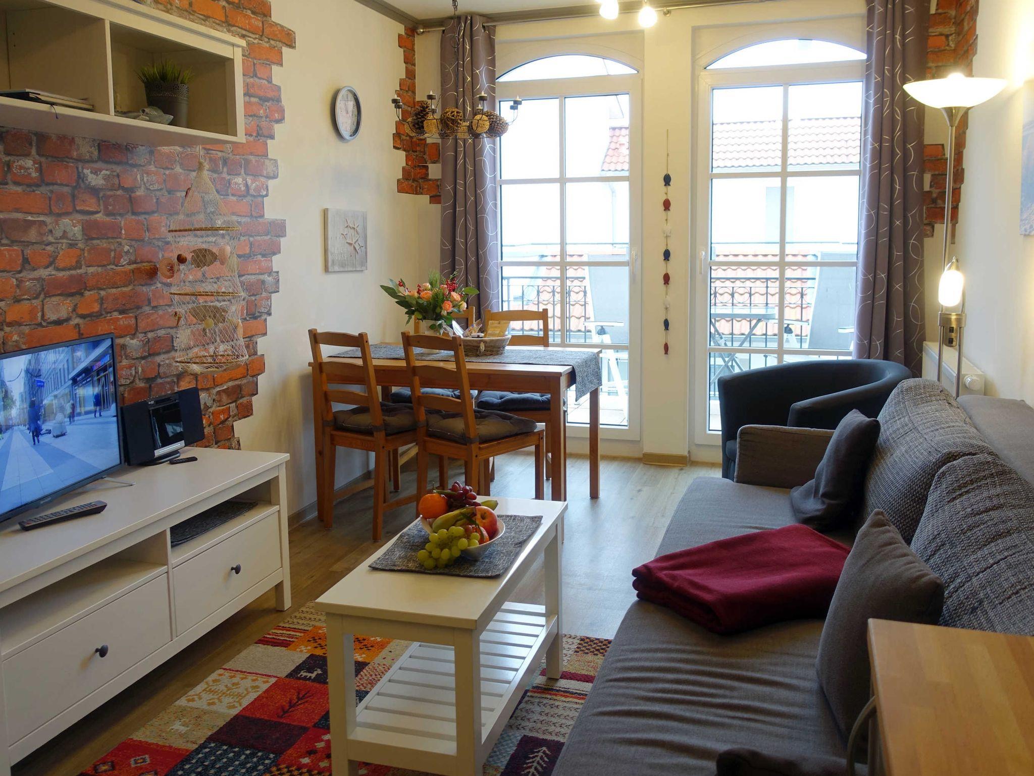 Gemütlich 2 Zimmerferienwohnung im 3. Obergeschoss im Haus Meeresblick für 3 Personen mit Balkon.