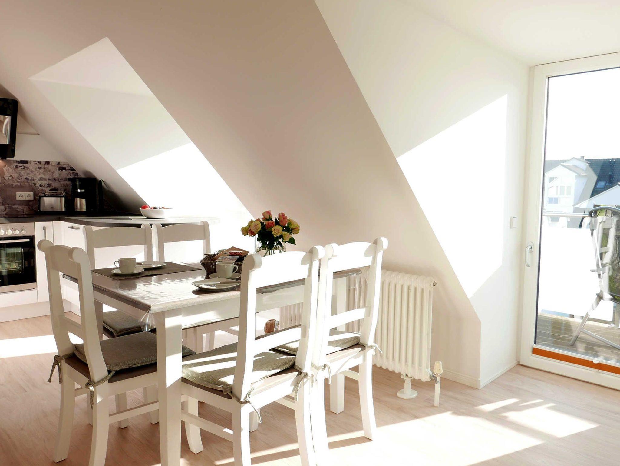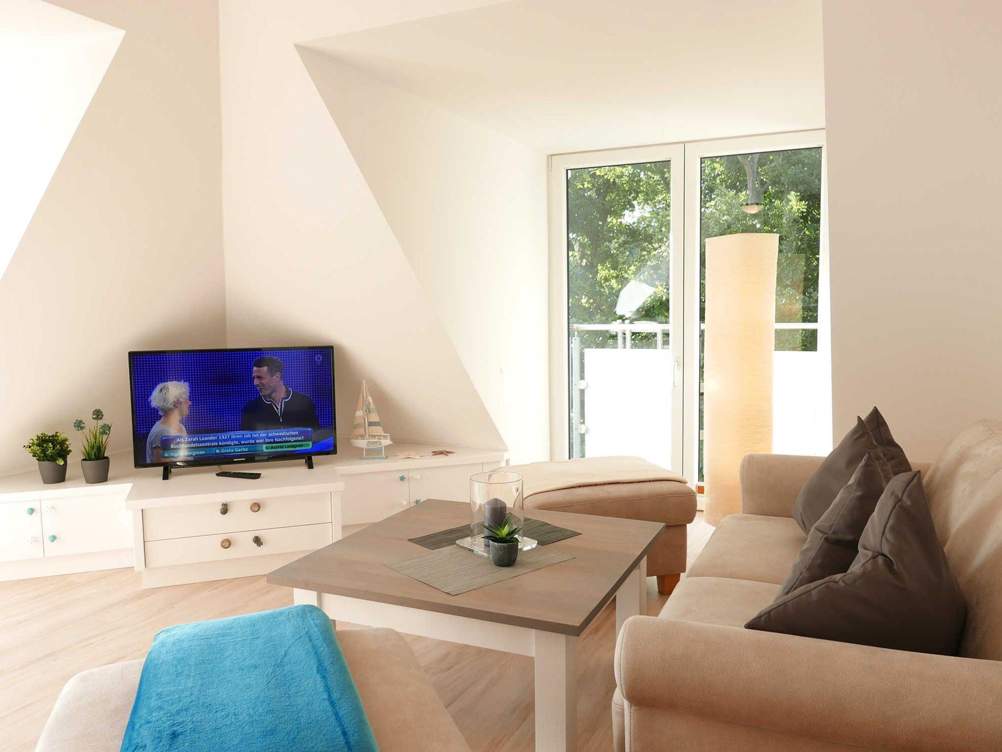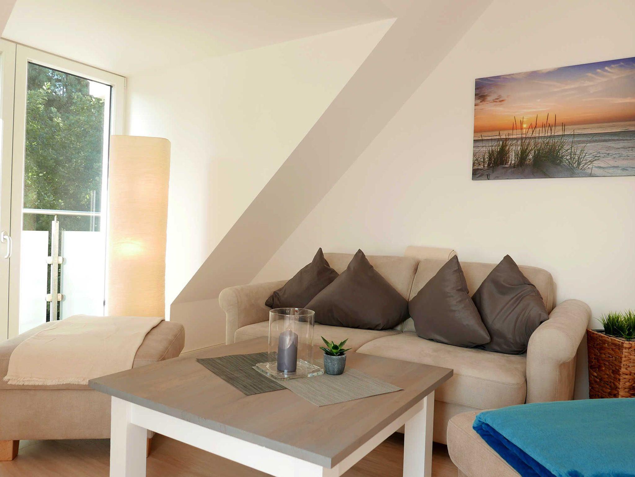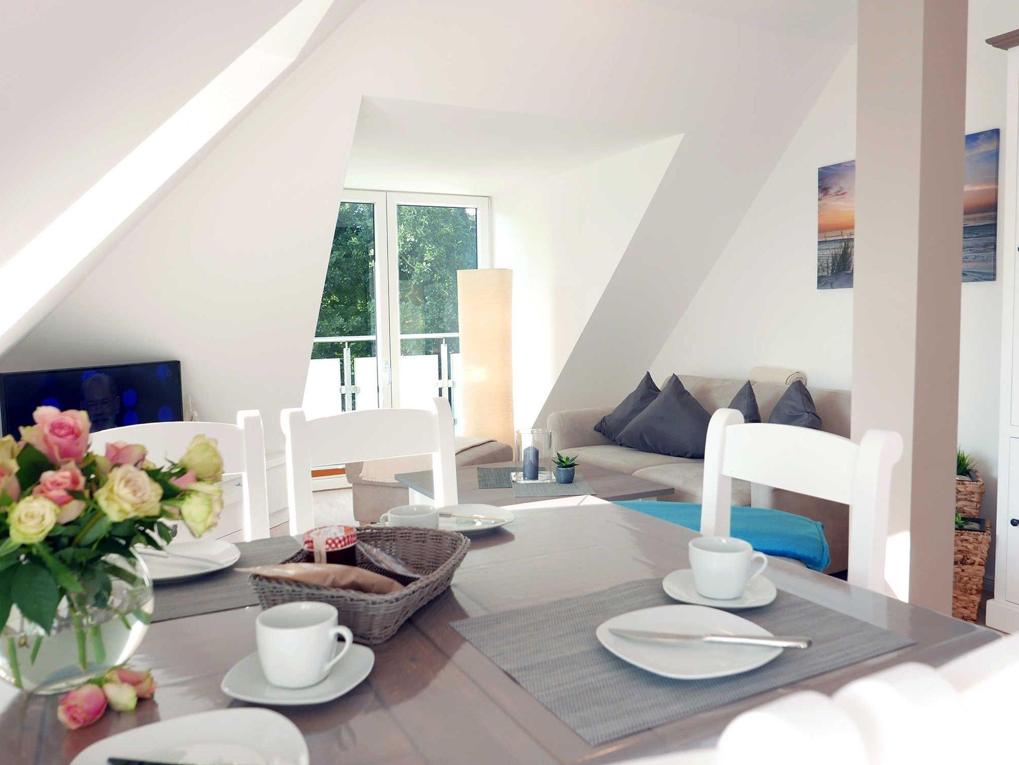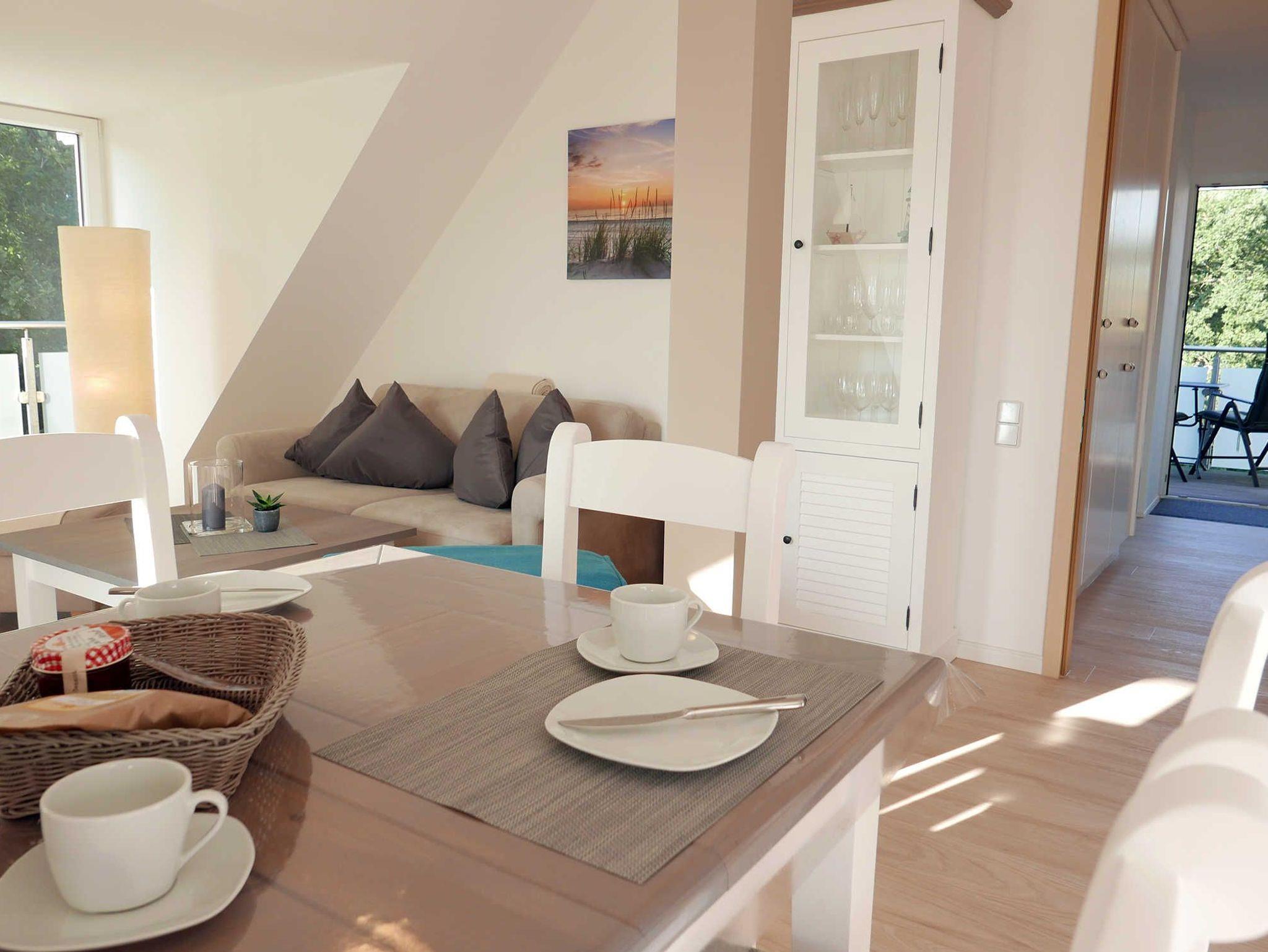 Wunderbar helle Ferienwohnung auf 66 qm für 4 Personen ? hier lässt sich der wohlverdiente Urlaub in vollen Zügen genießen. durch die Schrägen ist die Wohnung sehr viel größer. Über den Dächern in der 4. Etage gelegen hat man vom Balkon einen großartigen Ausblick auf Baabe. Frisch renoviert im Jahr 2018 und ausgestattet mit hochwertigen Möbeln bleiben hier keine Wünsche offen.