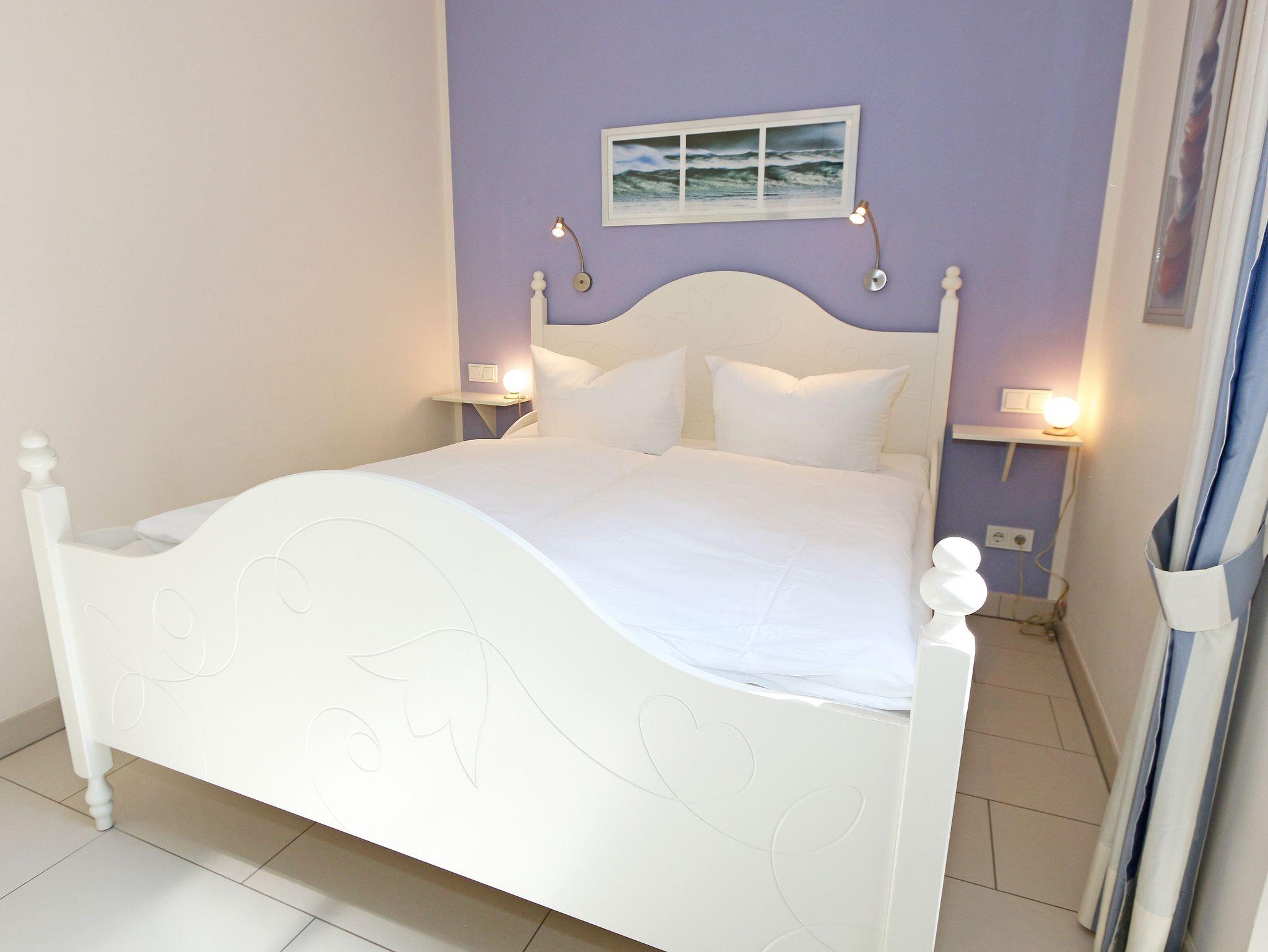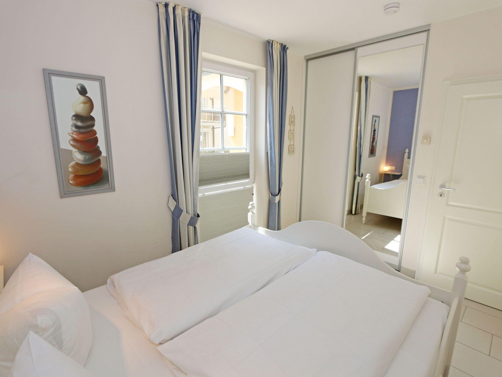 Das Bernsteinchen im Erdgeschoss der Kurparkresidenz Baabe, mit seinen ca. 40 qm, ist geräumiger als man denkt. Die mit viel Liebe zum Detail konzipierte Ferienwohnung ist von hoher Funktionalität und für max. 2 Erwachsene sowie 1 Kleinkind bis 3 Jahre vorgesehen. Nach Strandspaziergängen laden ein großzügiges Ledersofa, 2 kleine Couchtische und eine Anrichte mit einer klangvollen Mini-Stereo-Anlage mit Kassetten-Rekorder und CD-Player zum Relaxen ein. Der inklusive Internetanschluss (WLAN) und der HD-Flachbild-TV runden das Angebot ab. Die angrenzende hochwertige Einbauküche lässt keine Wünsche offen: sie ist ausgestattet mit Spülmaschine, Backofen und 4 Zonen-Ceranfeld, Dunstabzugshaube, Kühlschrank mit Gefrierfach, Mikrowelle, Kaffeemaschine, nickelfreiem Wasserkocher, Toaster, Handmixer inkl. Pürierstab und weiteren Küchenutensilien. Die beiden bestuhlten Terrassen (Ost-/Süd-Seite) sind vom lichtdurchfluteten Essbereich mit Essecke zu erreichen. Hochwertige Bodenfliesen mit Fußbodenheizung sorgen im gesamten Appartement für eine wohlige Raumatmosphäre. Viel Stauraum schaffen im Wohnbereich der maßangefertigte Einbauschrank mit deckenhohen Schiebetüren sowie der begehbare, großzügige Kleiderschrank mit großem Spiegelelement im Schlafzimmer. Hier bieten Ihnen sowohl das Doppelbett (1,60 m x 2,00 m) mit Qualitäts-Latexmatratzen und verstellbaren Lattenrosten, Nachttischablagen, dimmbares Licht, Lesebeleuchtungen sowie auch die Verdunklungsplissees und das Insektenschutzgitter alle Voraussetzungen für einen ruhigen Schlaf. Das Badezimmer verfügt über eine geräumige Dusche mit Eckeinstieg, WC, Fön, Waschtisch und eine Handtuchheizung. Plissee´s und Insektenschutzgitter finden sie auch im Wohnbereich. Für unsere kleinen Gäste stehen 1x Hochstuhl und 1x Kinderreisebett (ohne Zusatzmatratze und ohne Bett-Inlett) inklusive zur Verfügung. Ein eigener PKW-Stellplatz (Nr. 03) in der Tiefgarage, mit einer Einfahrtshöhe von 1,95 m, ist für Sie inklusive. Eine Waschmaschine und einen Trockner können Sie gegen eine Extragebühr im Keller nutzen. Von hier haben Sie die direkte Möglichkeit den Fahrstuhl bis zur Wohnung zu nutzen. Aufgrund der Allergikerfreundlichkeit versteht es sich von selbst, dass weder das Mitbringen von Haustieren noch das Rauchen in der Wohnung erlaubt sind. Die Erstausstattung eines Wäschepaketes (komplette Bettwäsche, 1 Duschhandtuch, 1 kleines Handtuch) können Sie bis 14 Tage vor Anreise gegen einen Aufpreis dazu buchen oder durch eigene ergänzen. Ab 2 gebuchten Paketen erhalten Sie einmalig 1 Geschirrhandtuch und 1 Duschvorleger hinzu.