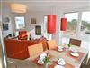 • großer Esstisch mit Platz für 6 Personen, angrenzender Balkon mit Meerblick