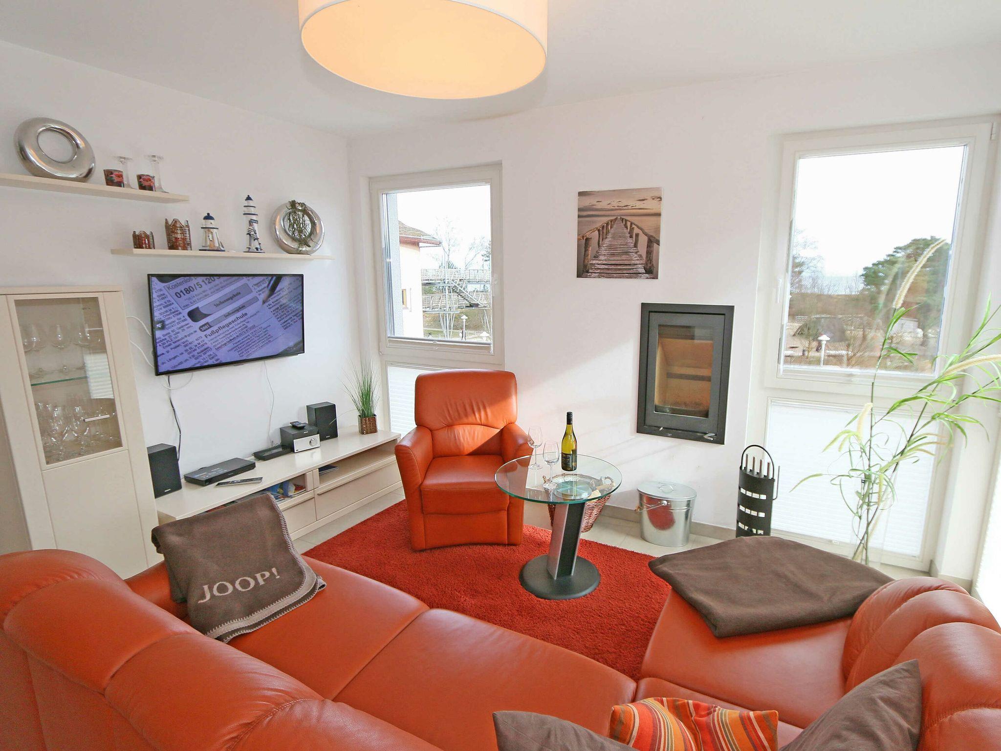 • Wohnzimmer mit komfortabler Couchecke, Flachbild-TV, Blu-ray Player und Stereoanlage