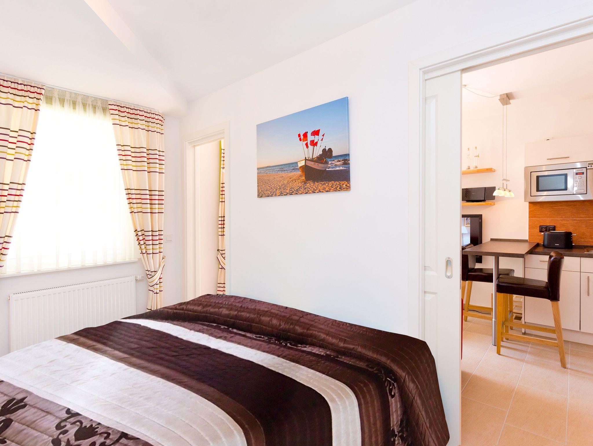 Kleine aber feine Ferienwohnung Strandnest für 2 Personen überzeugt durch ihr frisches Ambiente. Sie wohnen direkt am Strand von Baabe in der schönen Residenz Meeresblick.
