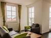 Im separaten Schlafzimmer ist ein Doppelbett sowie ein Kleiderschrank. Der Wohn- und Essbereich ist mit TV, CD-Player und Radio ausgestattet. Die gut eingerichtete Küchenzeile hält einen Vierplattenherd mit Backofen, einen Kühlschrank mit Gefrierfach, eine Spülmaschine, eine Mikrowelle sowie einen Toaster und eine Kaffeemaschine vor. Der Kochbereich ist in den Wohnraum integriert. Ein Babybett findet in dieser Wohnung leider keinen Platz.