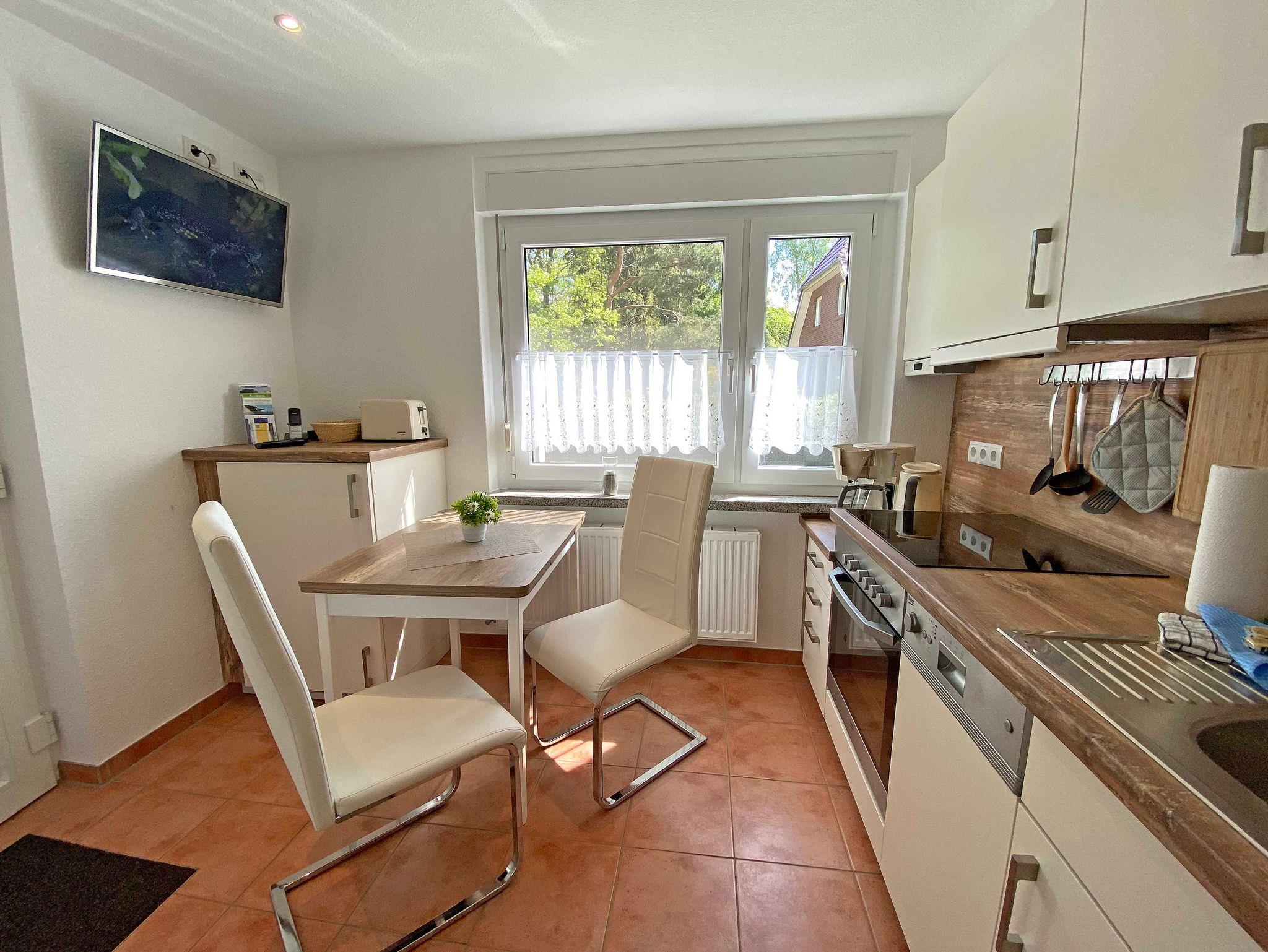 Das kleine und gemütliche Nichtraucherappartemtent Hoffi befindet sich mit einer zweiten Ferienwohnung in einem Haus im schönen Ostseebad Baabe, direkt am Waldesrand und doch zentral gelegen. Diese kleinere Wohnung ist perfekt für 2 Personen ausgelegt und verfügt über einen kombinierten Koch- und Essbereich sowie über ein separates Schlafzimmer und ein modernes Tageslichtbad mit Dusche und WC. Ein separater Eingang sowie ein eigener Pkw-Stellplatz und Aussenbestuhlung gehören zur Wohnung. Der Strand ist in wenigen Gehminuten (400 m) durch den Kiefernwald zu erreichen. Der Radwanderweg führt am Haus vorbei. Durch die zentrale Lage sind die Einkaufmöglichkeiten sehr gut fußläufig erreichbar. Der neu angelegte Kurpark und die schöne Strandstraße liegen in unmittelbarer Nähe und laden zum Bummeln ein. Das Gleiche gilt für Unternehmungen mit dem „Rasenden Roland“, der berühmten Museumseisenbahn, sowie dem Busverkehr. In 1,5 km Entfernung befindet sich das „Inselparadies“, ein großes Freizeit- und Familienbad mit Saunabereich.