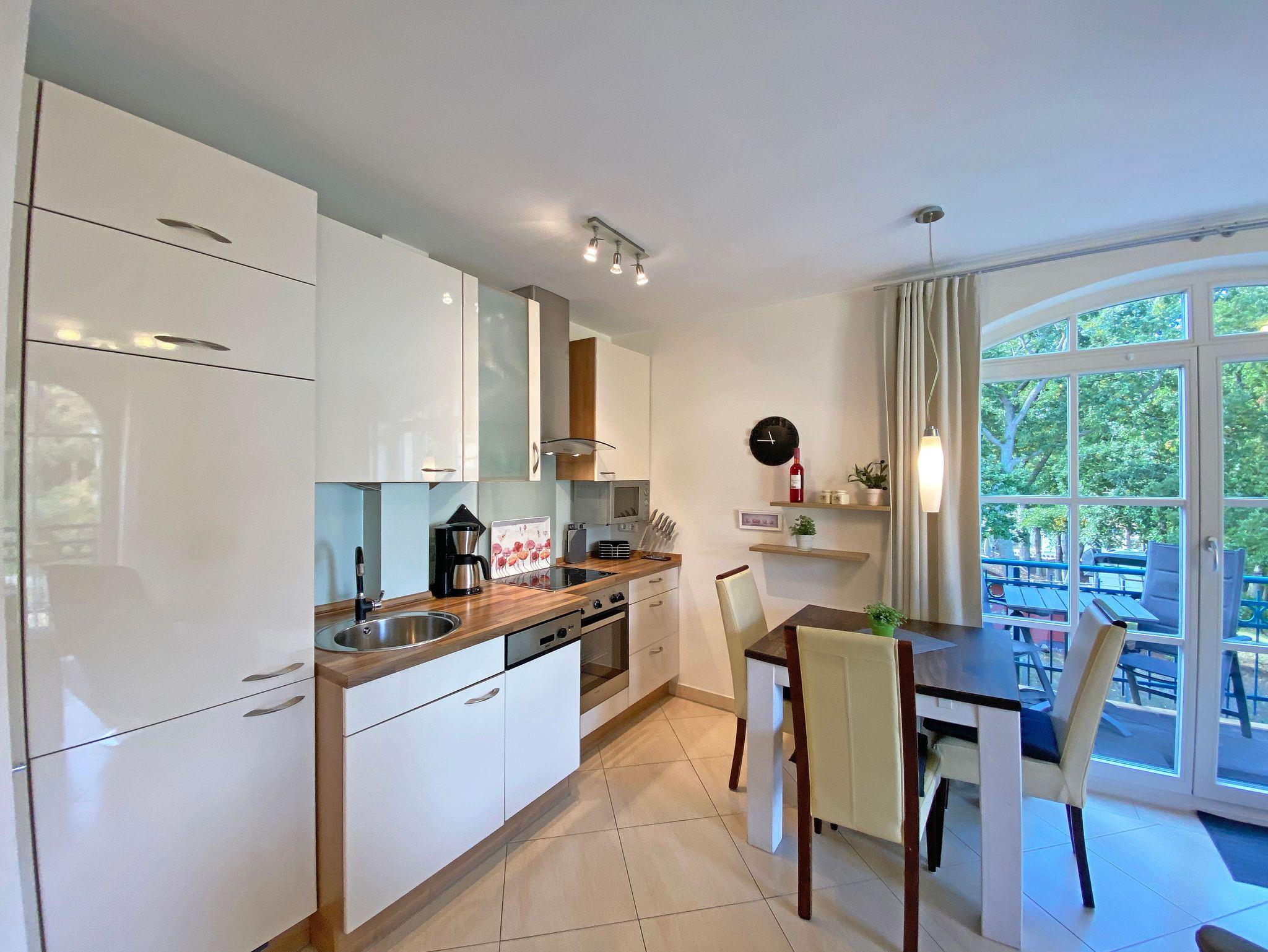 Die Ferienwohnung befindet sich in faszinierender Lage, wenige Meter vom Strand entfernt und ist auf einer Düne gelegen in der ersten Reihe zum Strand. Die ?Grüne Düne?, ist eine der schönsten Appartementanlagen in Baabe, deren Architektur mit den anmutenden Rundbögen, Terrassen und der Farbgebung etwas ganz Besonderes darstellt. Im Haus befinden sich insgesamt 23 exklusive Ferienwohnungen, außerdem eine Sauna, Münzwaschmaschine und Wäschetrockner sowie einen Fahrstuhl. Fahrradabstellmöglichkeiten vor dem Haus sind ebenfalls vorhanden. Zum feinen Sandstrand sind es ca. 100 m, wo sie auch nicht nur zur Badesaison ausgiebige Strandspaziergänge genießen können. Verschiedene Ausflugsziele sowie Cafés und Restaurants können sie in wenigen Minuten der Grünen Düne planen bzw. erreichen.
