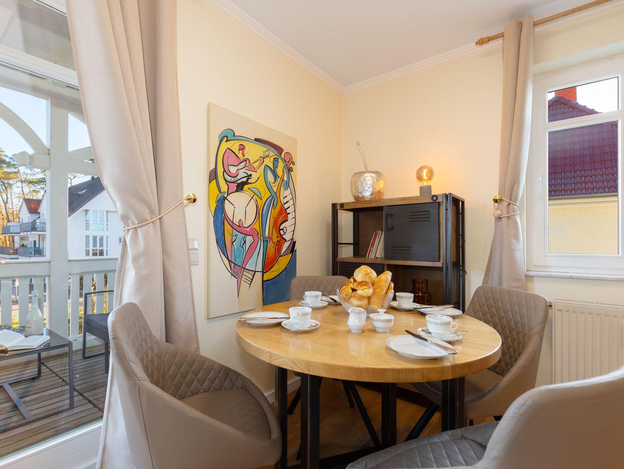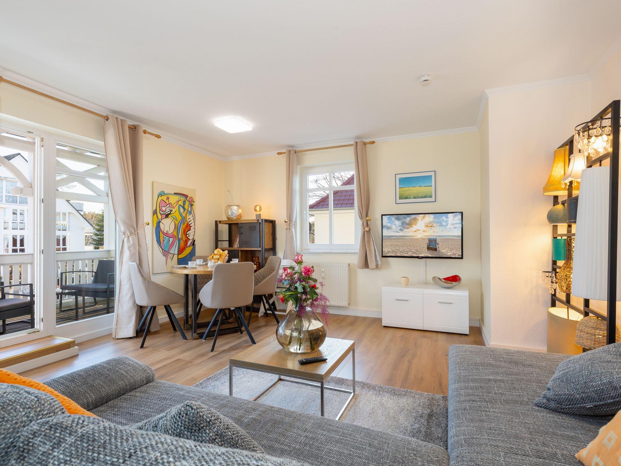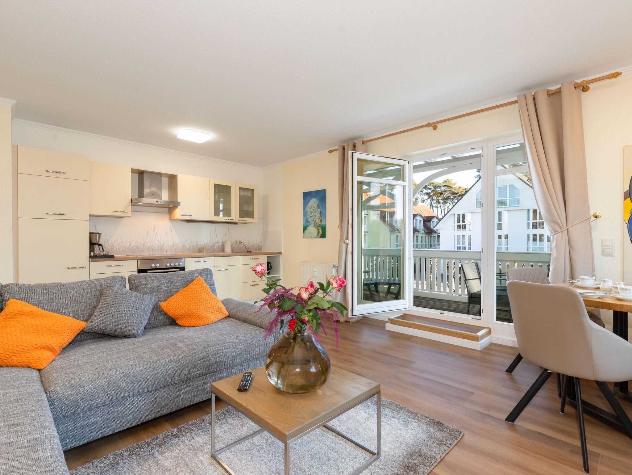Unsere sehr schöne und großzügig angelegte Ferienwohnung (ca. 64 qm, 1 Wohnzimmer, 1 Schlafzimmer, Küchenzeile, Bad mit Dusche, sehr großer Sonnenbalkon, Parkplatz, WLAN-Internet, max. 4 Erw.) liegt unmittelbar an der Baaber Promenade und nur ca. 400 m vom kilometerlangen, feinsandigen Badestrand an der Ostsee entfernt.