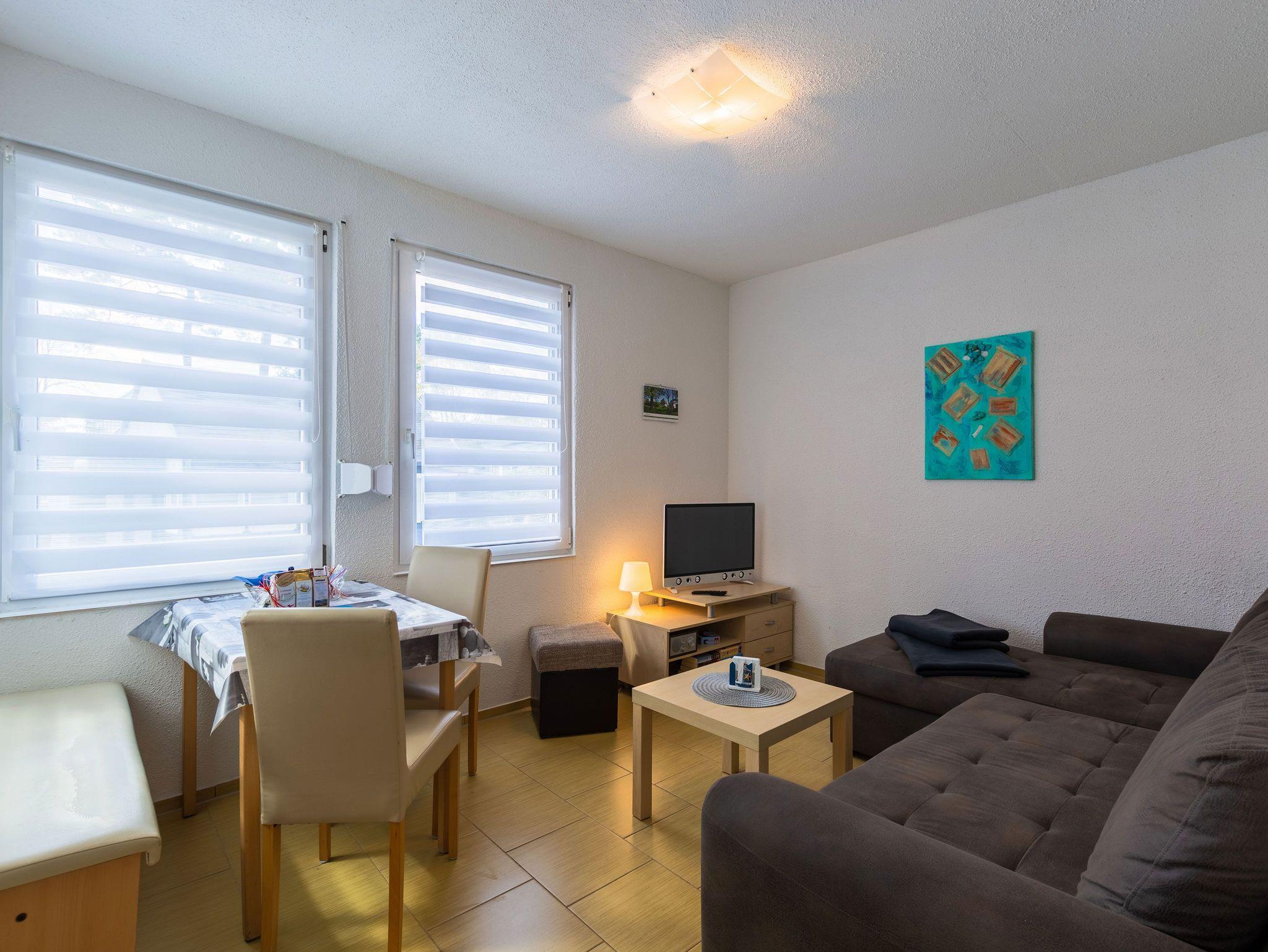 Der gemütliche Wohnbereich überzeugt mit einer Couchgarnitur, einem Fernseher und einem Radio. Zudem können hier 2 weitere Personen auf dem Schlafsofa die Nächte verbringen.