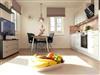 Im Wohn-/Esszimmer befindet sich ein hochwertiges Schlafsofa von Messina (140x200 cm). Die Wohnküche ist mit Backofen, Kühlschrank mit Gefrierfach, Mikrowelle und Spülmaschine ausgestattet.