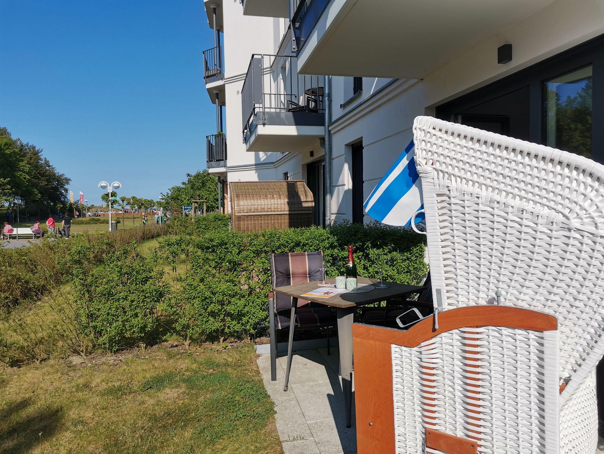Moderne 2-Zimmer-Ferienwohnung für 2 Personen mit hochwertiger Designerausstattung direkt am Baaber Strand. Die exklusive Anlage ist mit einem Fahrstuhl, einer Tiefgarage, einem Fahrradabstellplatz, einer Sauna (gegen Gebühr) und einem Waschraum mit Trockner und Waschmaschine (gegen Gebühr) ausgestattet.