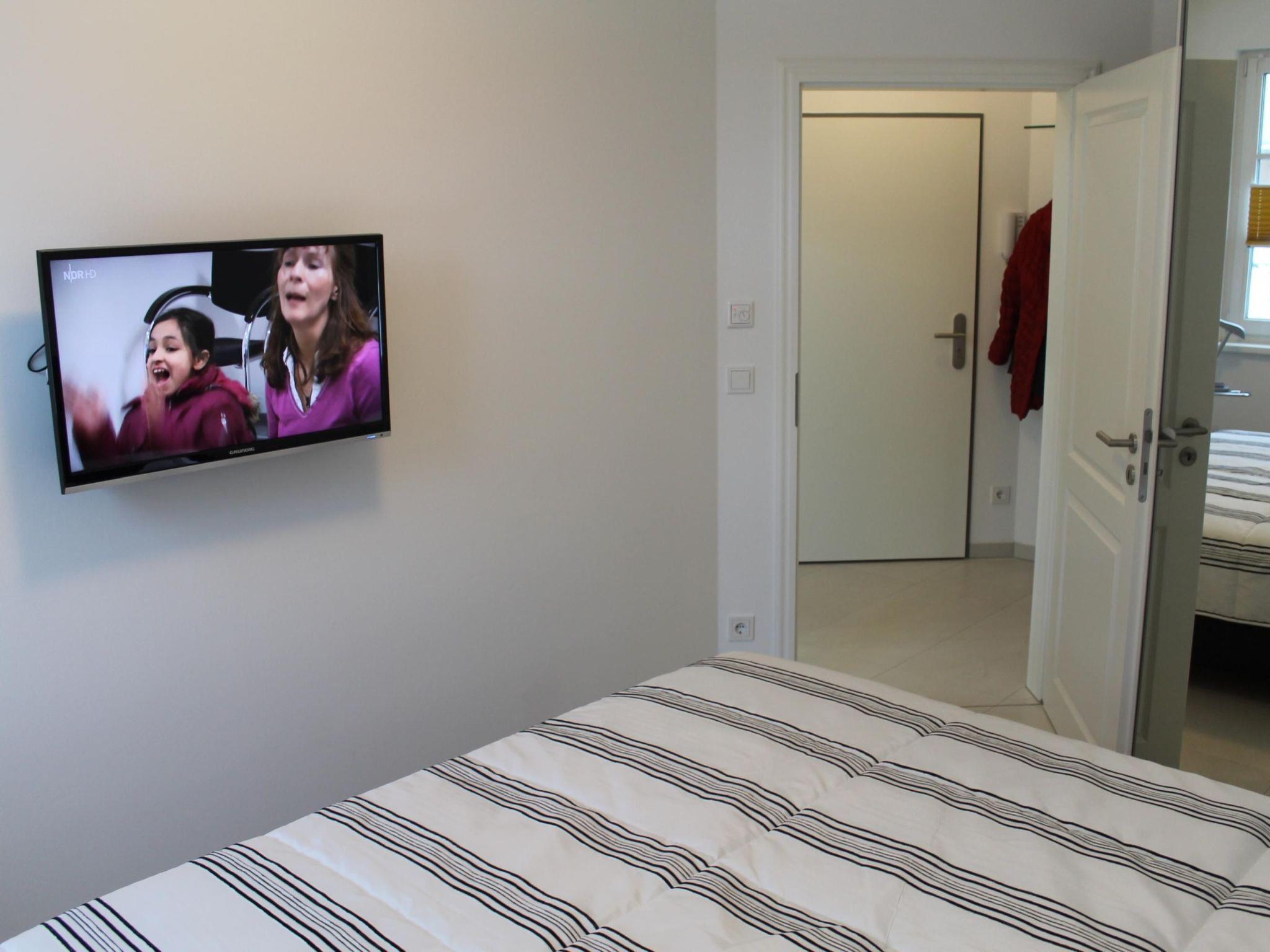 The two-room holiday apartment with charming and high-quality furnishing is on the ground floor and provides around 50m² of living space. The apartment has a living room with a sofa bed (210 x 200cm) and a separate bedroom with a double bed (180 x 200cm), with darkening blinds ensuring a good night’s sleep. The kitchen is fully-equipped, with a dishwasher, a stove, an oven, a fridge with a freezer compartment, a microwave, coffee machine, toaster, kettle and plenty of crockery, glasses and cutlery. The bathroom has a glass shower cubicle, a hairdryer and a mirror. This apartment is tiled throughout and is fitted with under-floor heating. The non-smoking apartment has an antiallergenic interior and is ideal for two to three people. Pets are not allowed.